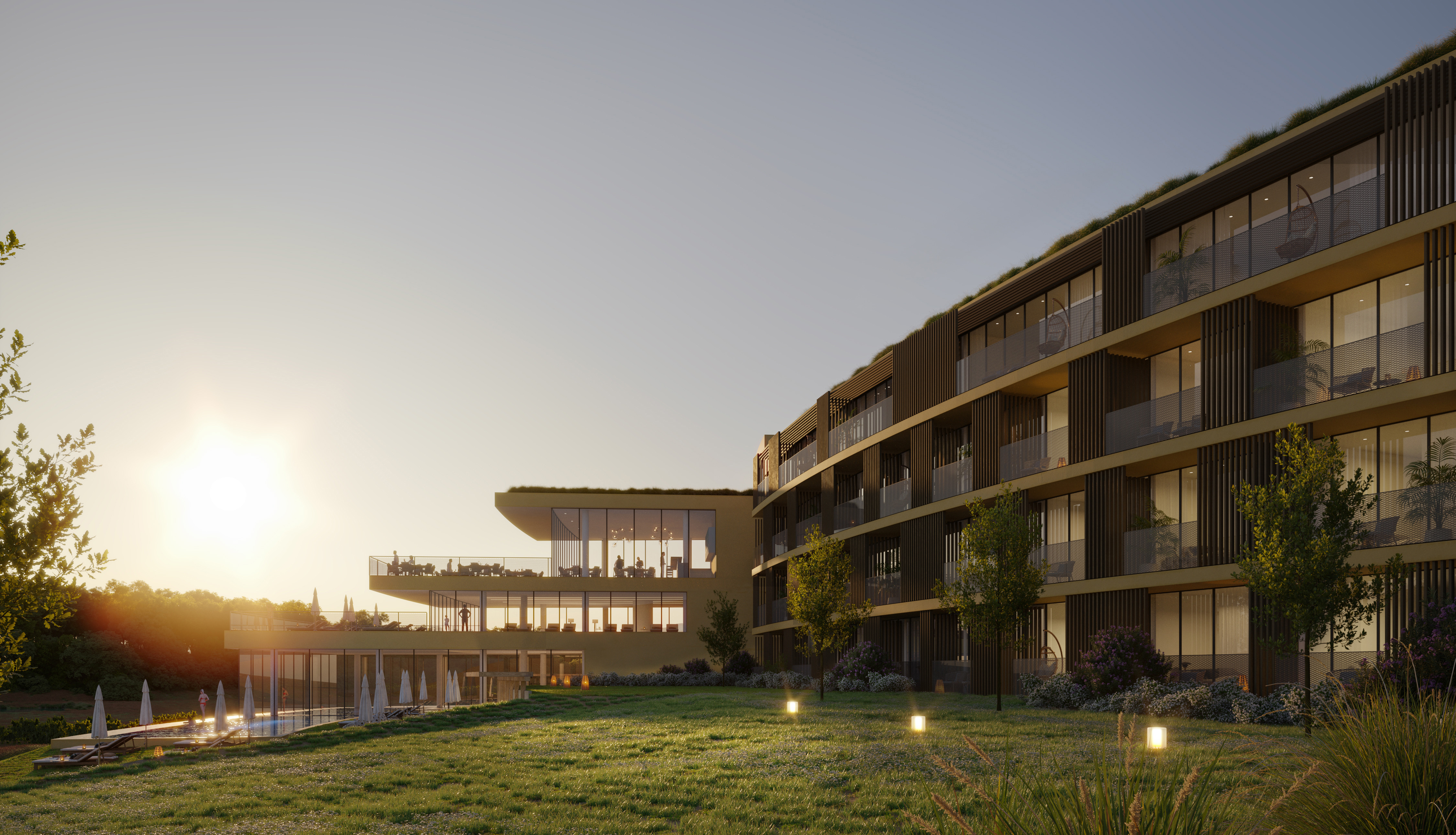 A fejlesztés helyszíne egy közel 22 hektáros, kivételes természeti adottságokkal ellátott terület, melyhez tökéletesen igazodik a völgybe igazított wellness hotel. Az épület tömege a völgyfalra simuló ív, melyekhez merőlegesen kapcsolódnak a dombra ültetett lépcsőző teraszok.