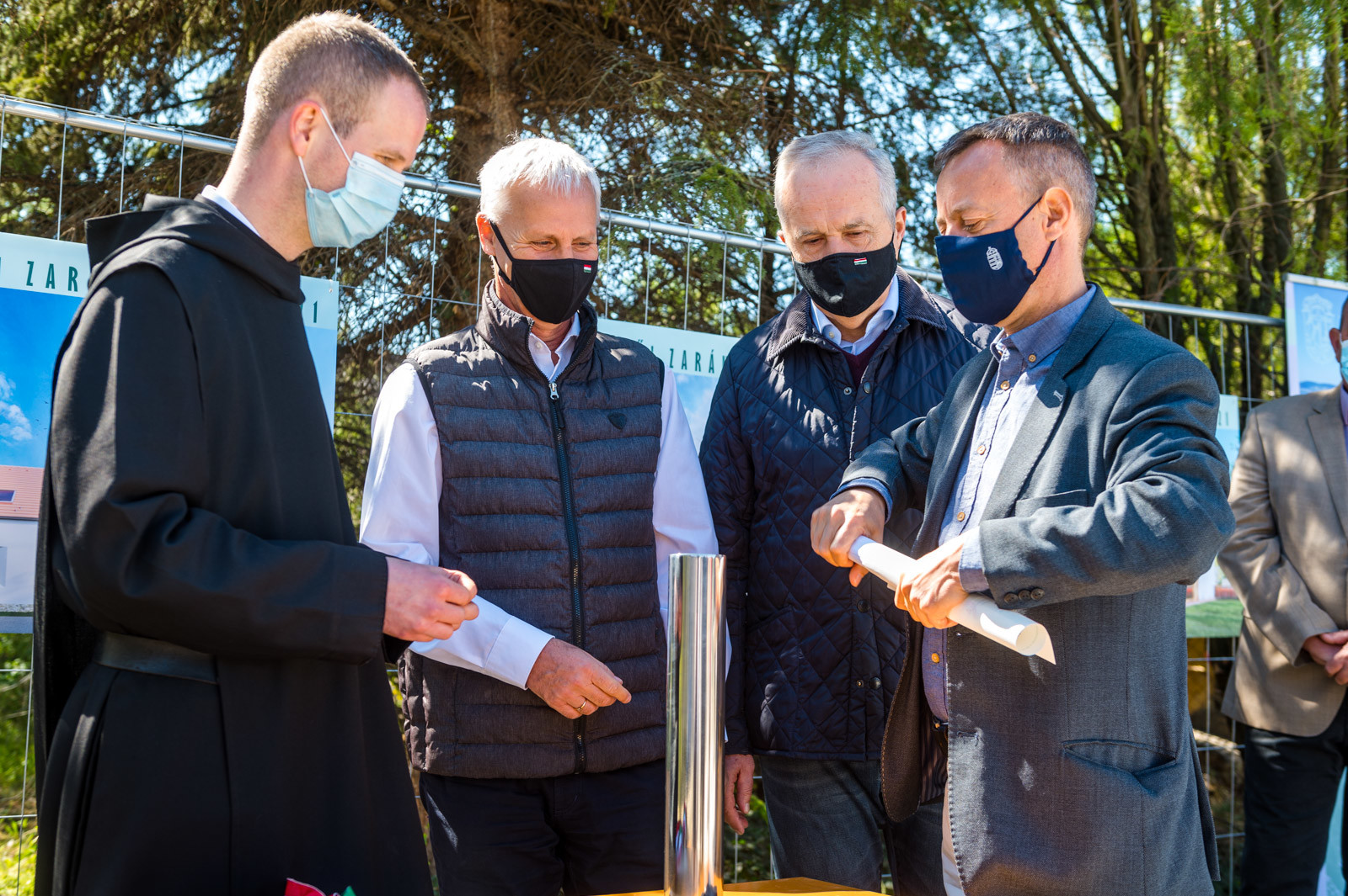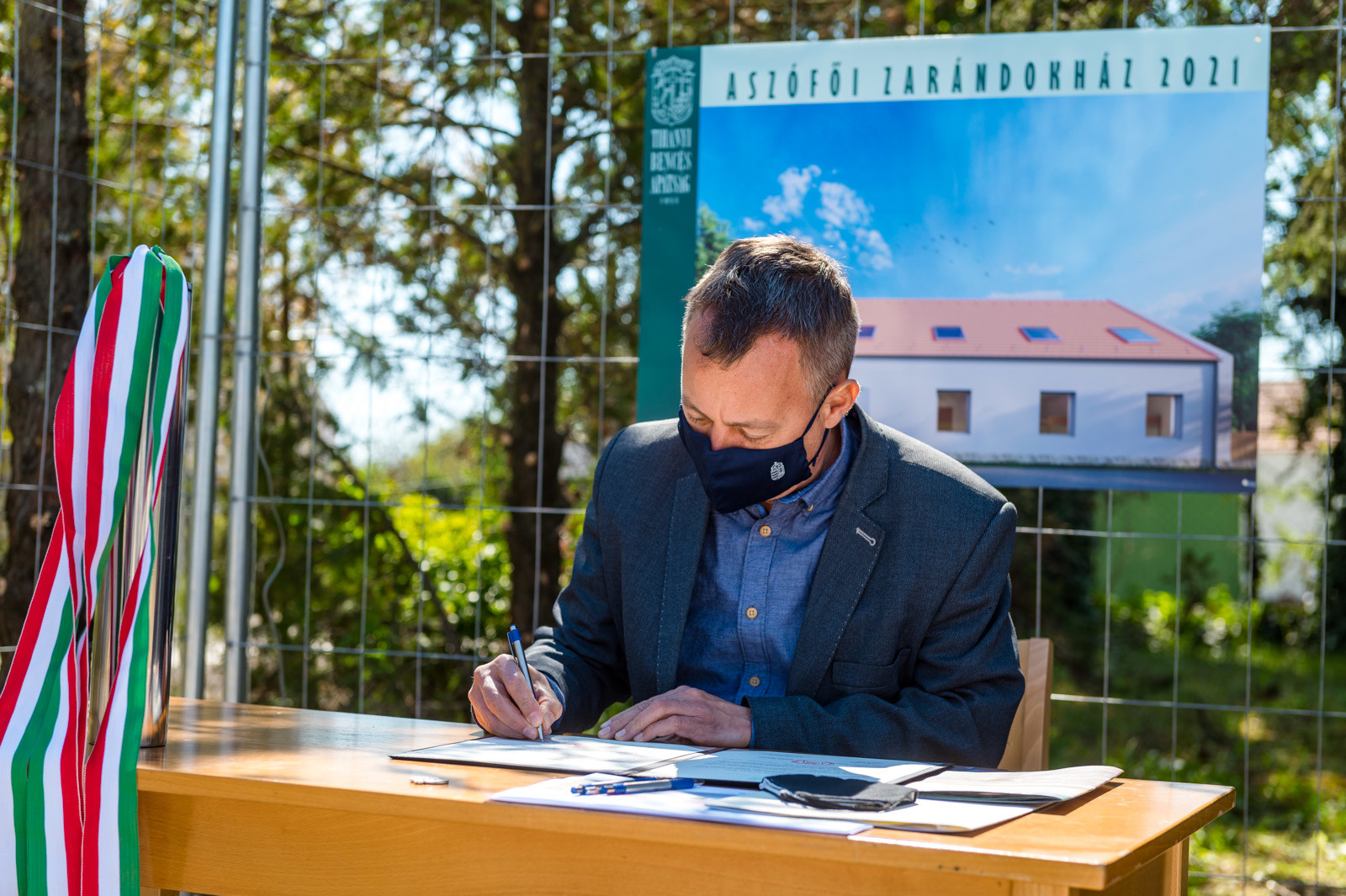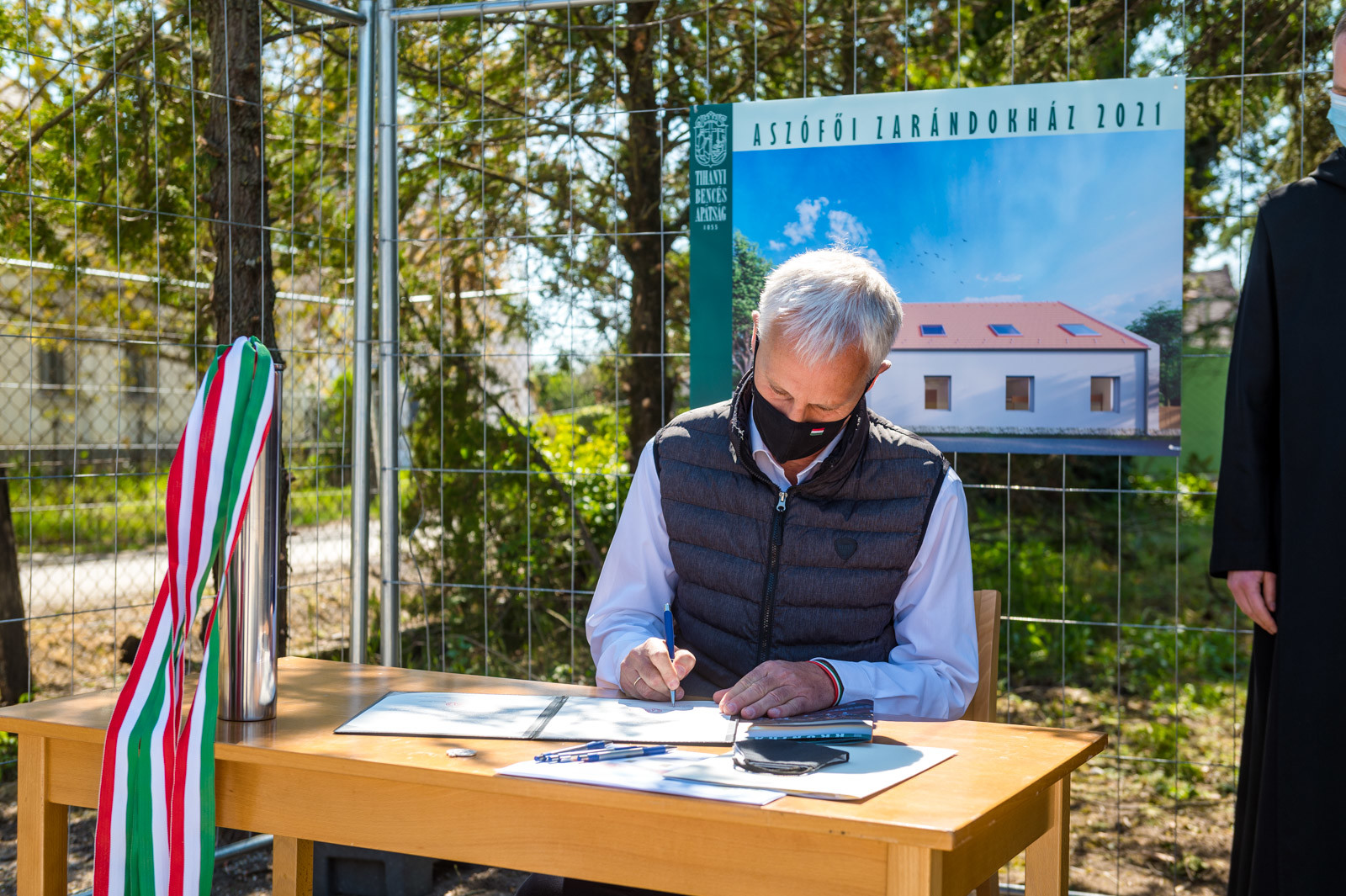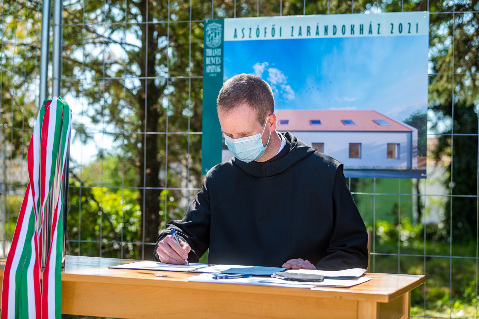 Elhelyezték az aszófői zarándokszállás alapkövét: a bontási munkálatokat követően most elkezdődhet a szerkezetépítés a Possibuild Kft. és a B&G Építő és Üzemeltető Kft. kivitelezésében épülő kétszintes épületen.