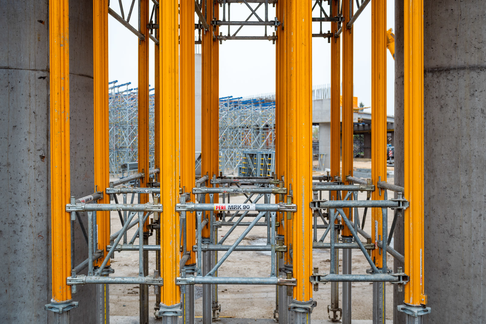 Az Y-híd leendő központi része alatti nehézállványozást is jórészt felállították, ez a rendkívül sűrűn elhelyezett „állványerdő” a hídszerkezet betonozása során kerül teherviselő szerepbe, mert az Y alak közepén nem előregyártott gerendák, hanem helyben készülő vasbetonfelszerkezet épül.