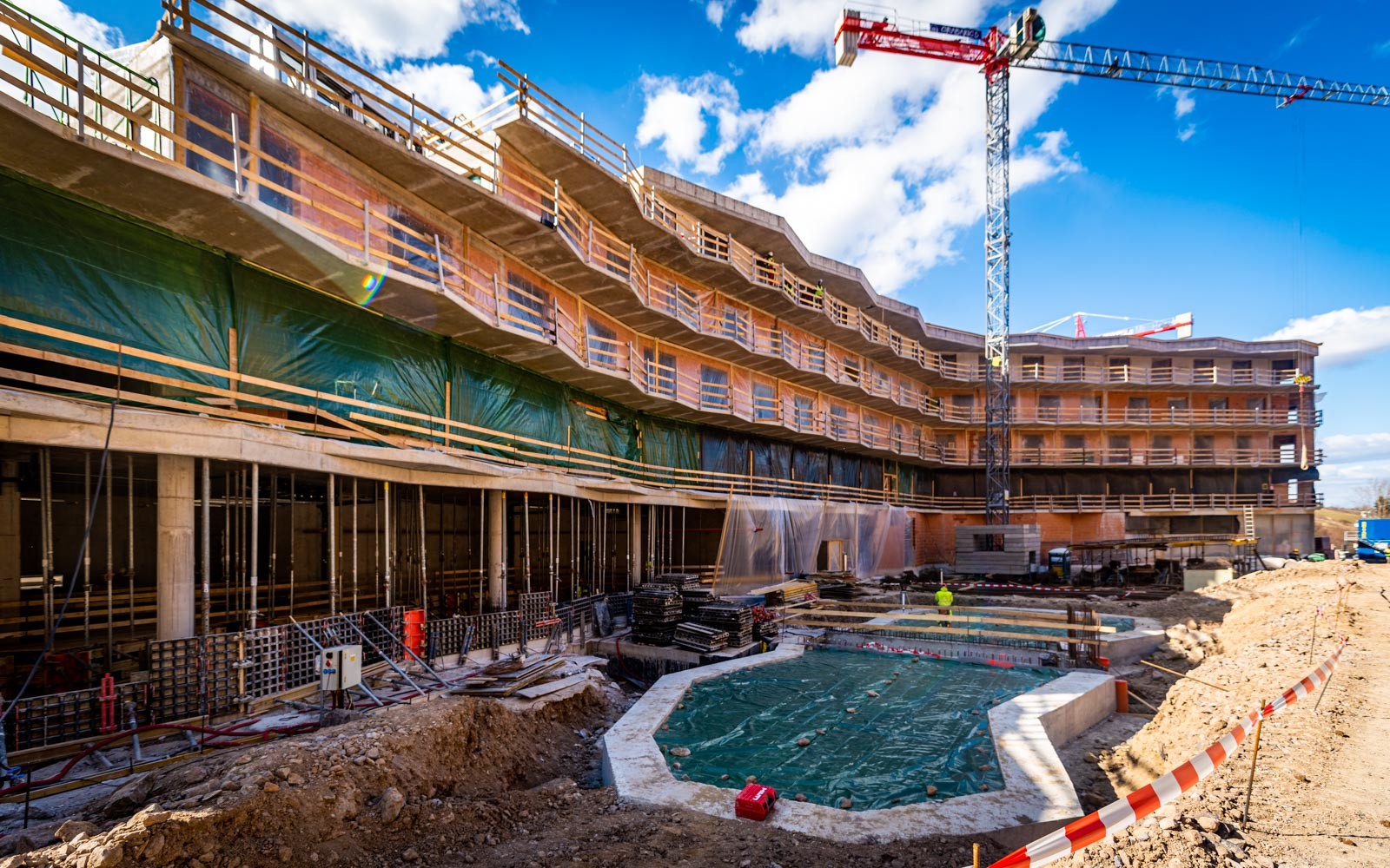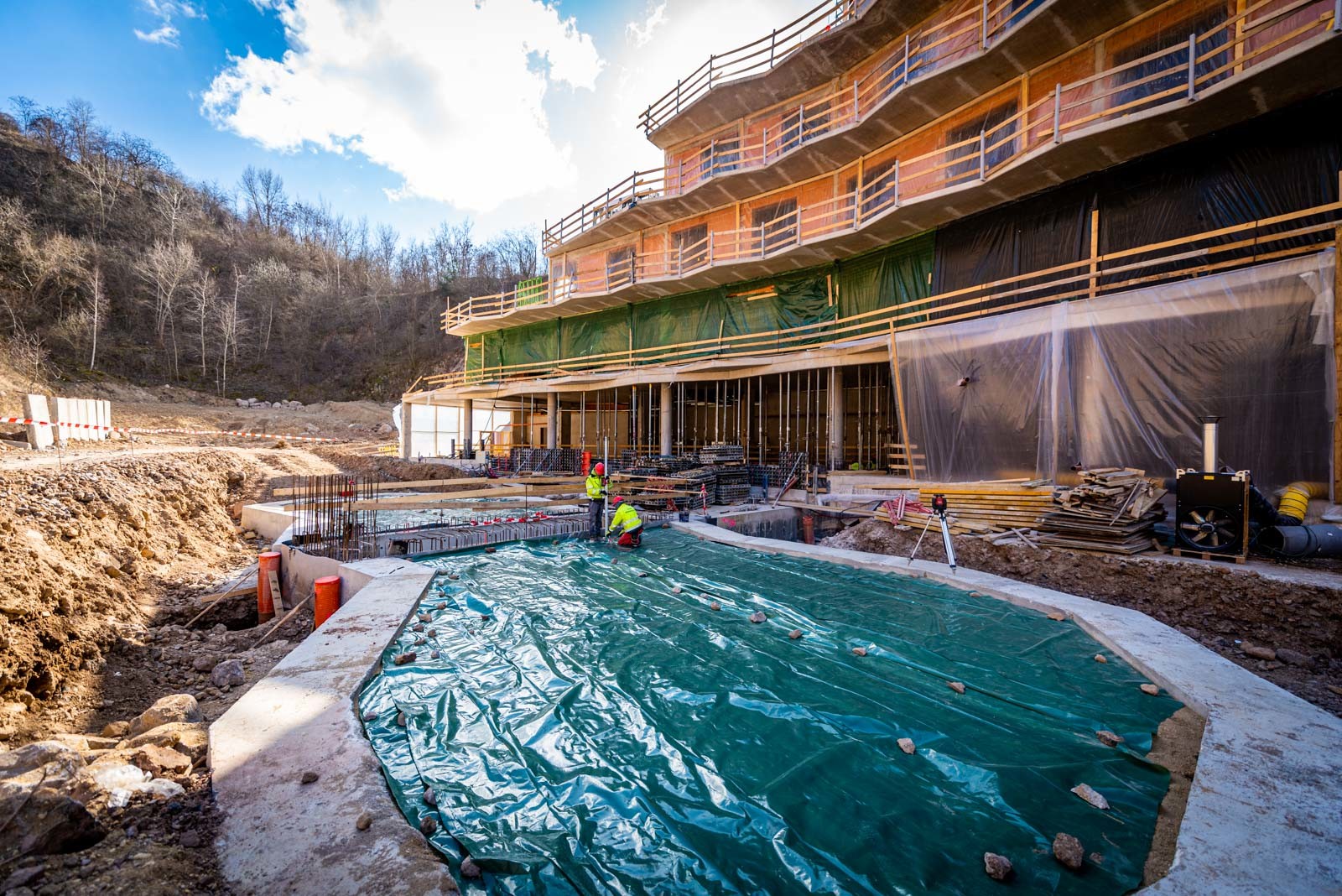 jól haladnak a wellness részleg kivitelezésével is: jelenleg folyamatban van a medence építése és a technológia szerelése,