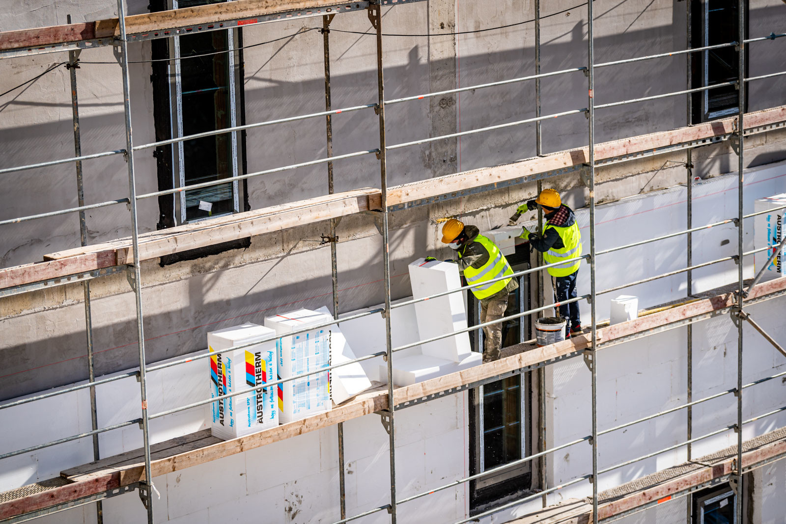 illetve a burkolási, a homlokzati hőszigetelési, a tetőszigetelési és a külső közmű építési feladatok is a terv szerint haladnak.