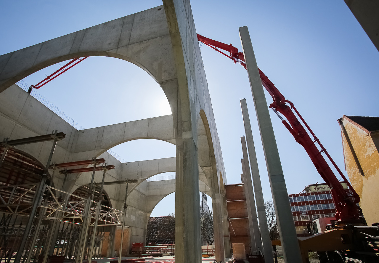 Legutóbb múlt hónapban számolt be lapunk az új pécsi vásárcsarnok építéséről. A jelenlegi vásárcsarnoktól délre épülő komplexum Pécs Megyei Jogú Város Önkormányzatának megrendelésére a B. Build & Trade Kft. generálkivitelezésében valósul meg. A monolit vasbeton szerkezetet a Tura Kft., mint alvállalkozó építi, a kivitelezéshez szükséges zsalutechnológiát pedig a MEVA Zsalurendszerek Zrt. biztosítja.