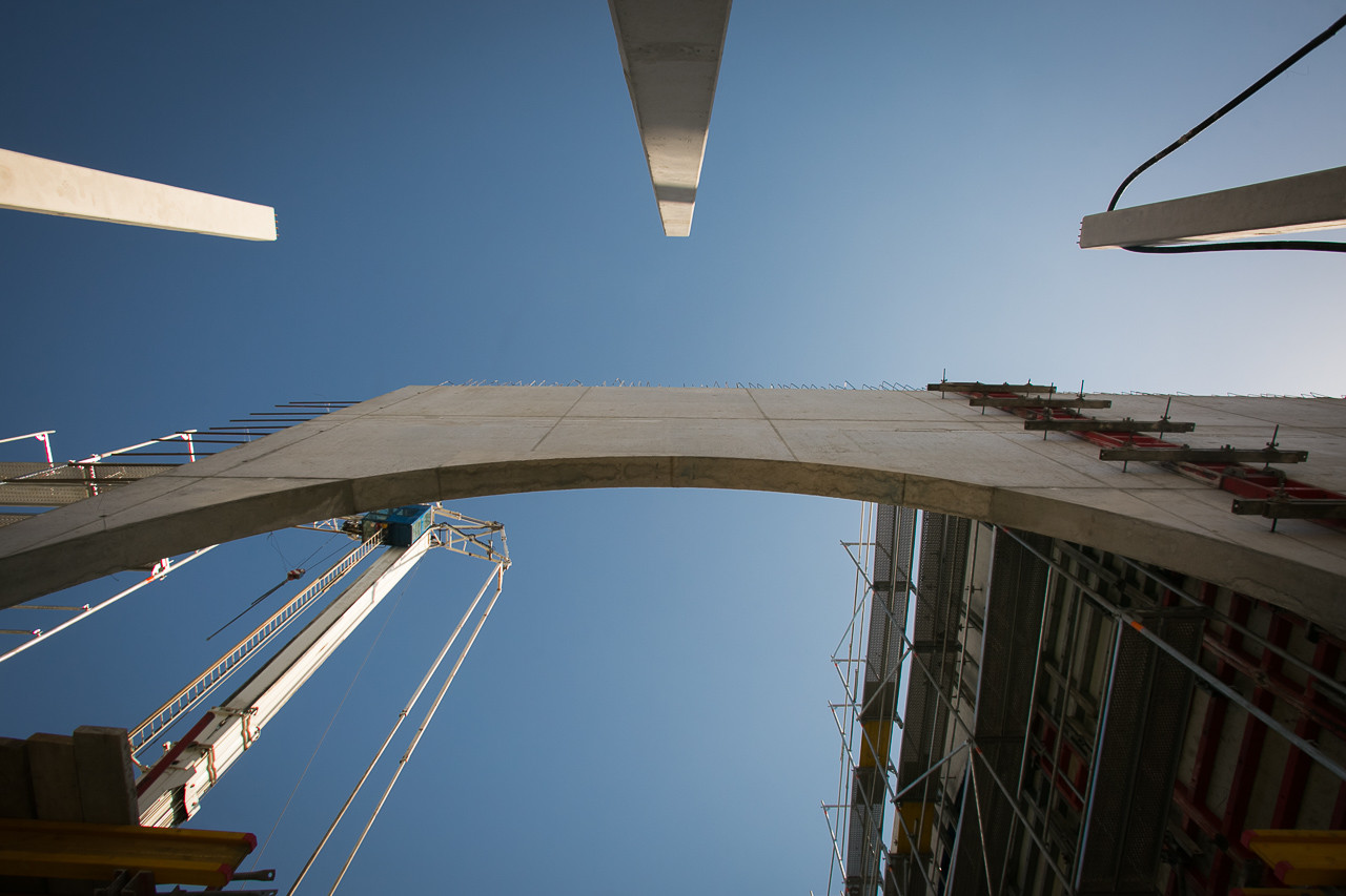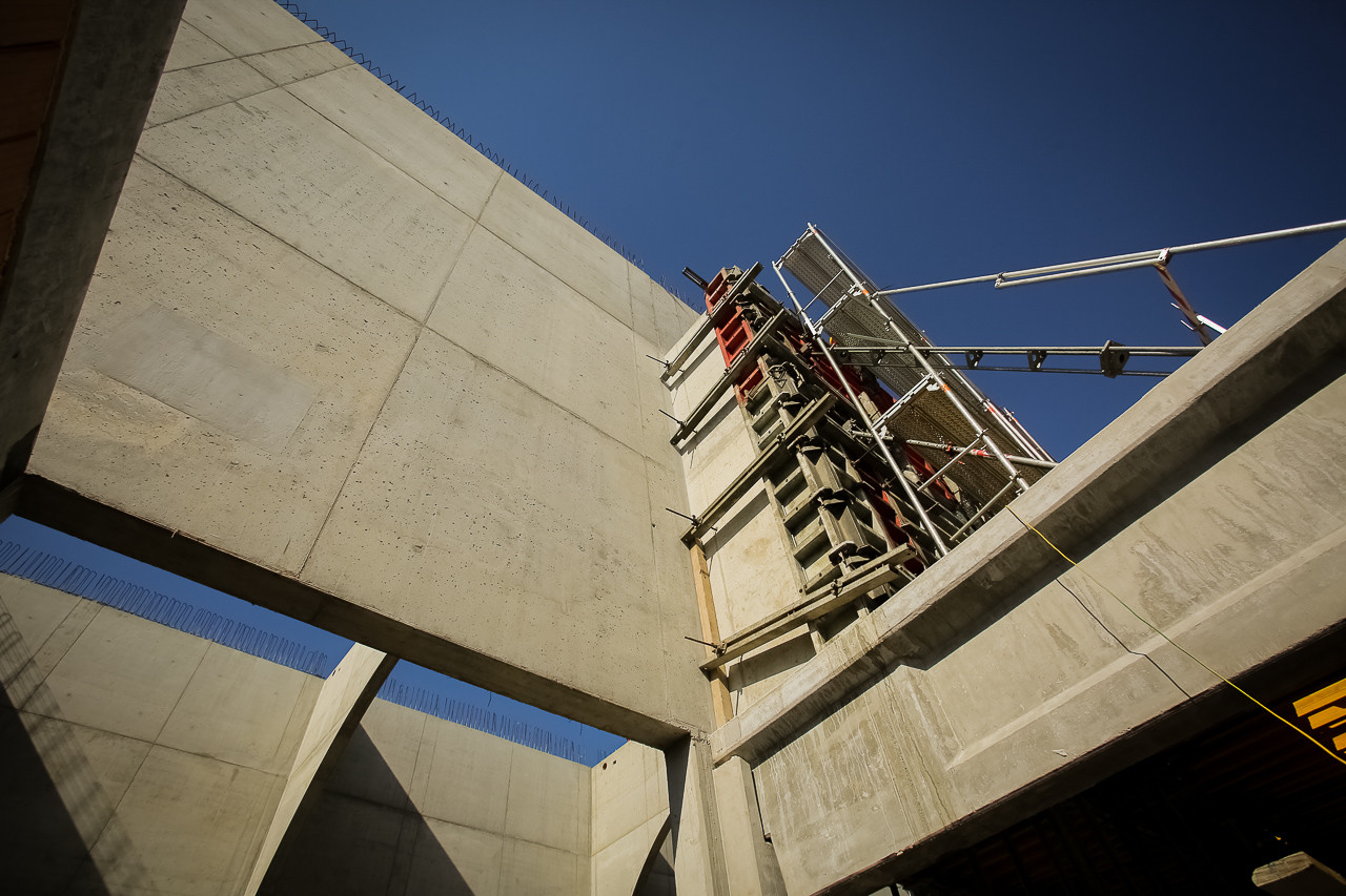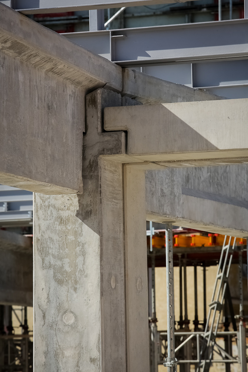A MEVA feladata volt, hogy olyan stabil állványzatot tervezzen, amely a nagy magasságú vasbeton falakat, a zsaluzatot és az acél rácsos tartó súlyát is elbírja.