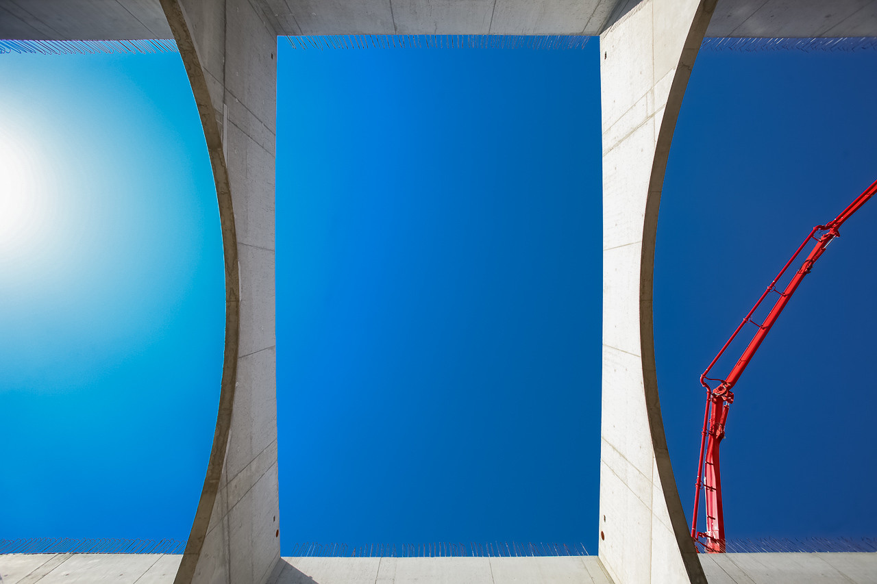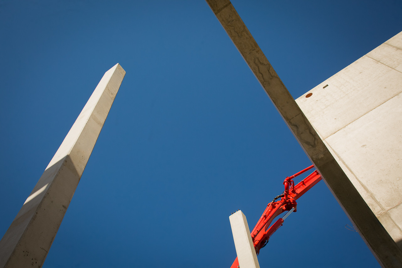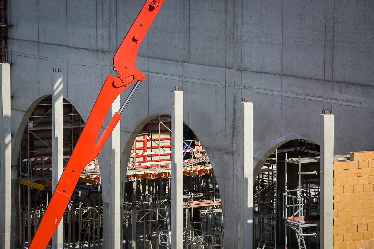 A MEVA feladata volt, hogy olyan stabil állványzatot tervezzen, amely a nagy magasságú vasbeton falakat, a zsaluzatot és az acél rácsos tartó súlyát is elbírja.