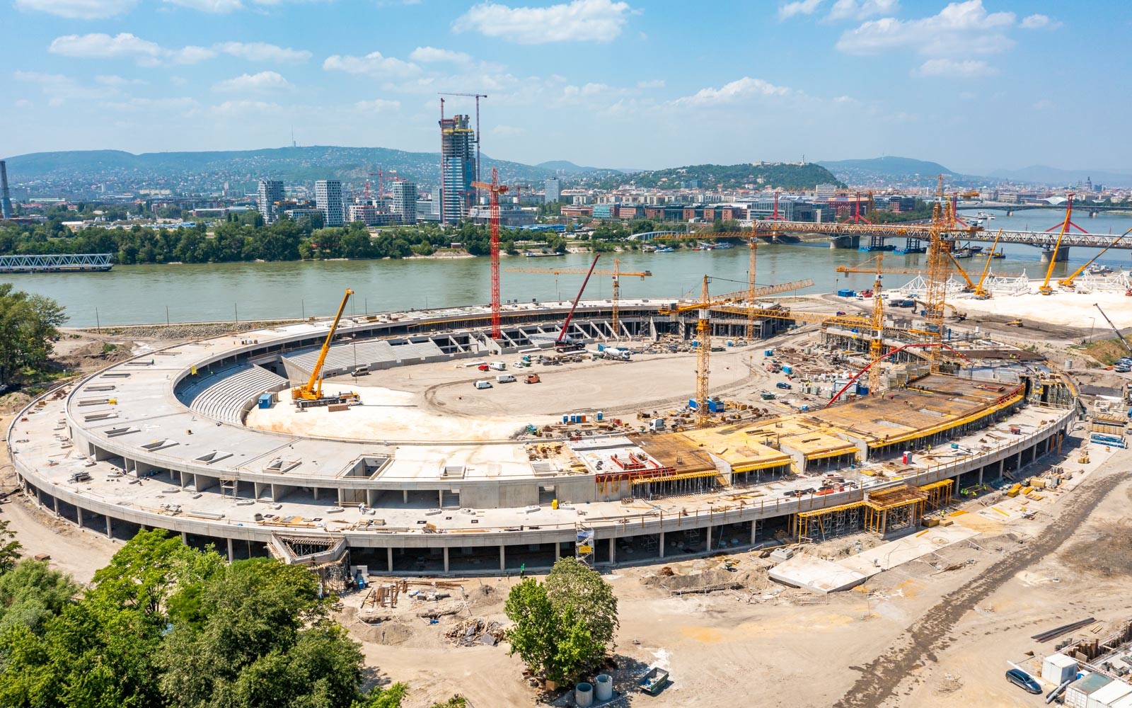 Az indító acélszerelvény, valamint a vele összeépülő indító zöm pontossága és elképesztően bonyolult betonacél-szerelése kihívást jelent a szerkezetépítő szakembereknek. A zárófödémek június 18-ával bezárólag elkészültek, ezenkívül hátra vannak még az attikák, valamint a zömök építése – tette hozzá Hidvégi Róbert.