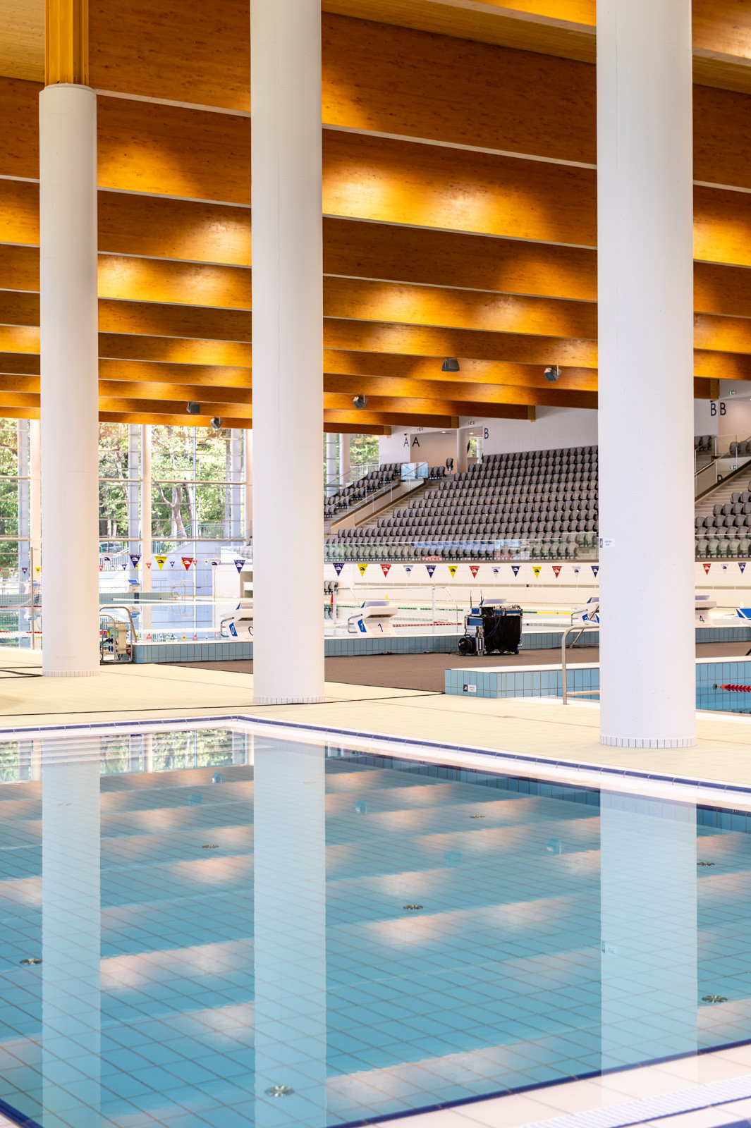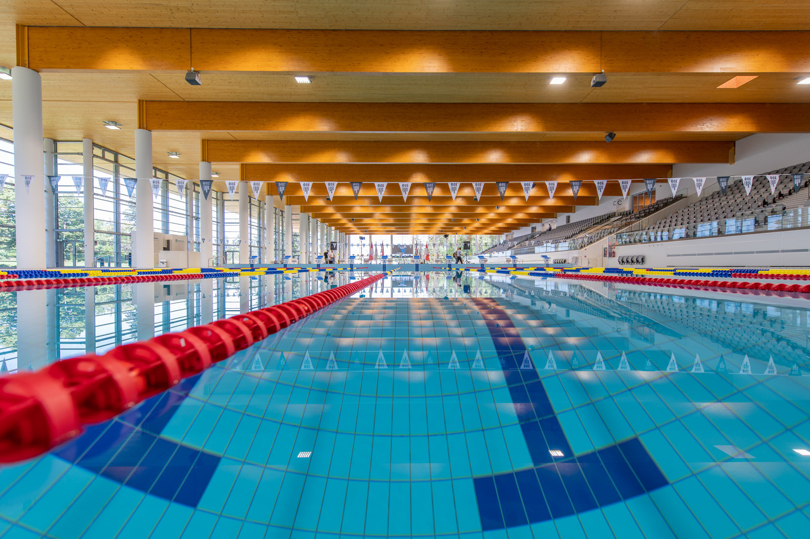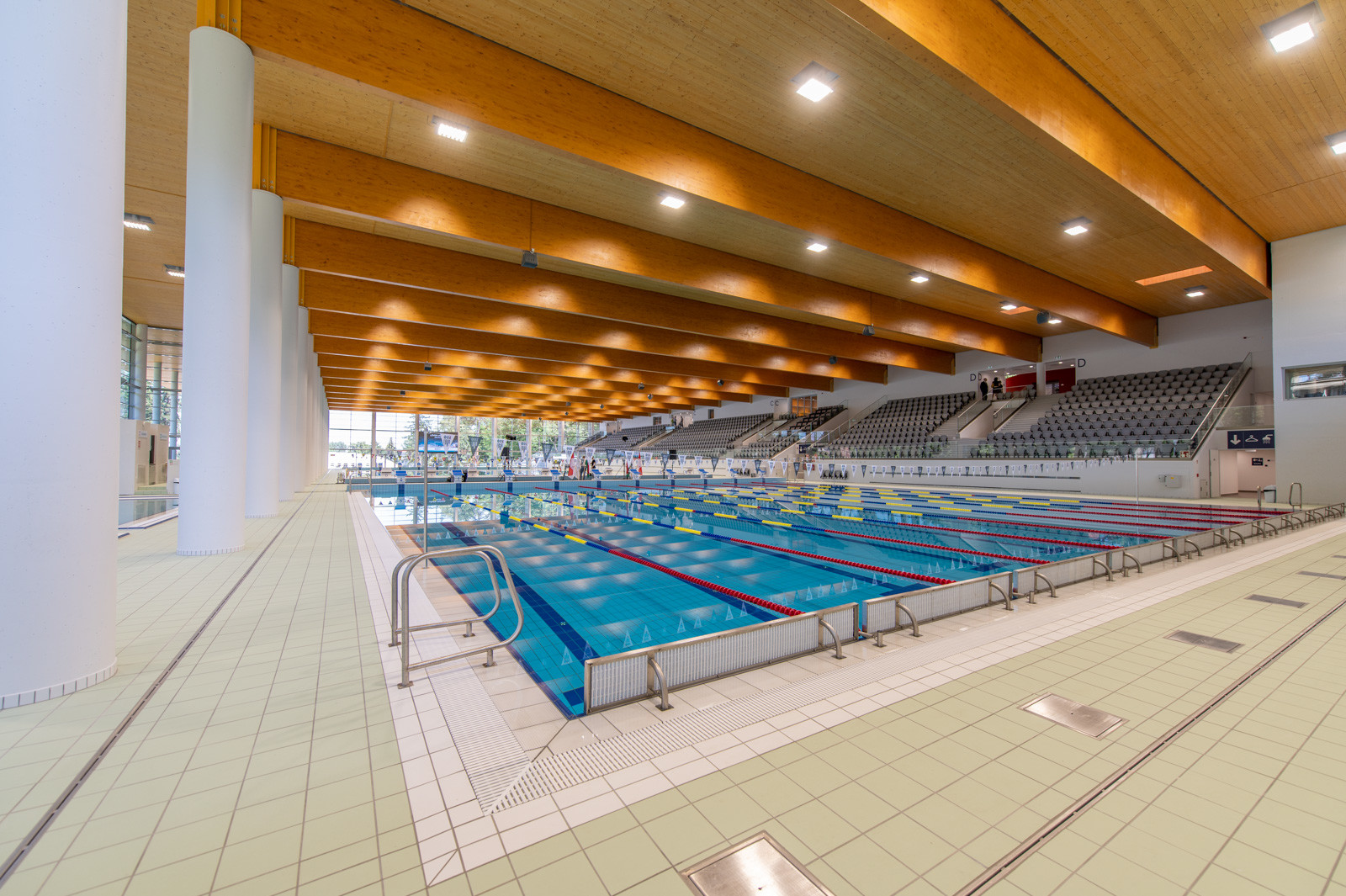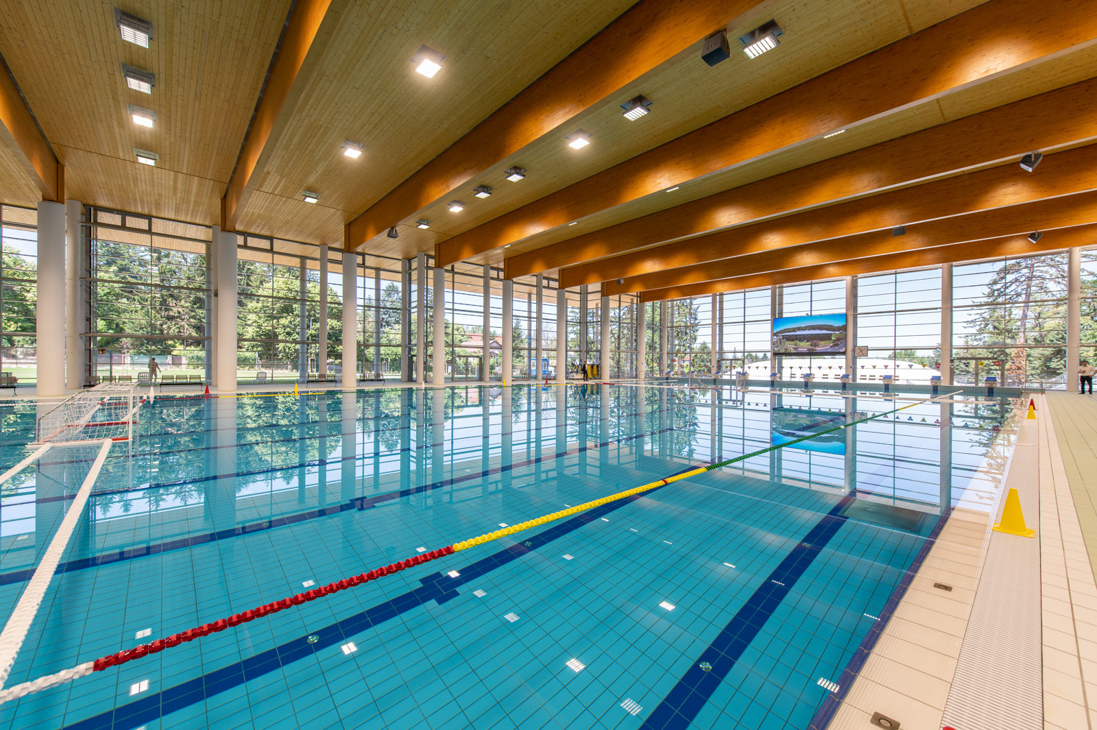 Az új uszodában egy 25 méter széles és 50 méter hosszú, nemzetközi versenyek lebonyolítására is alkalmas medencét, egy 25 méter széles és 25 méter hosszú kismedencét, valamint egy melegítő- és egy tanmedencét alakítottak ki a kiszolgáló helyiségek mellett.