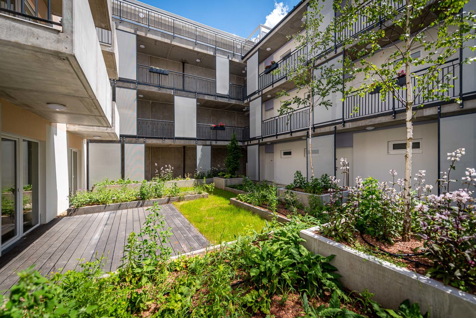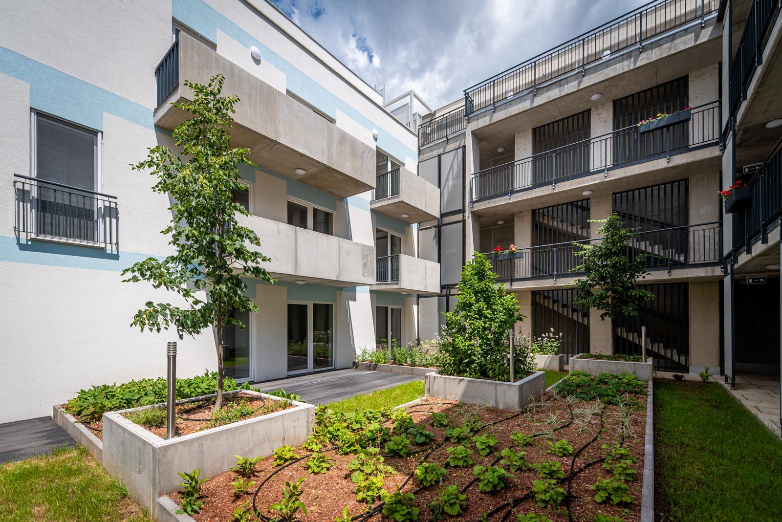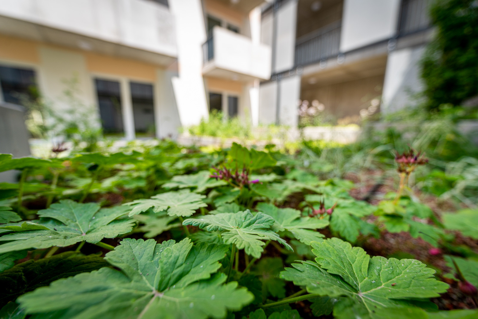Az egész területet oldalkert, illetve a tömbök között kiépített kis, belső kertek övezik, melyek közös tulajdonú részek. Az egyes kertek között lévő teraszok és növényládák azonban kijelölik azok használatát az ott lakók számára.