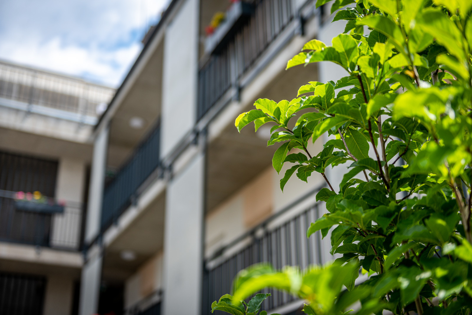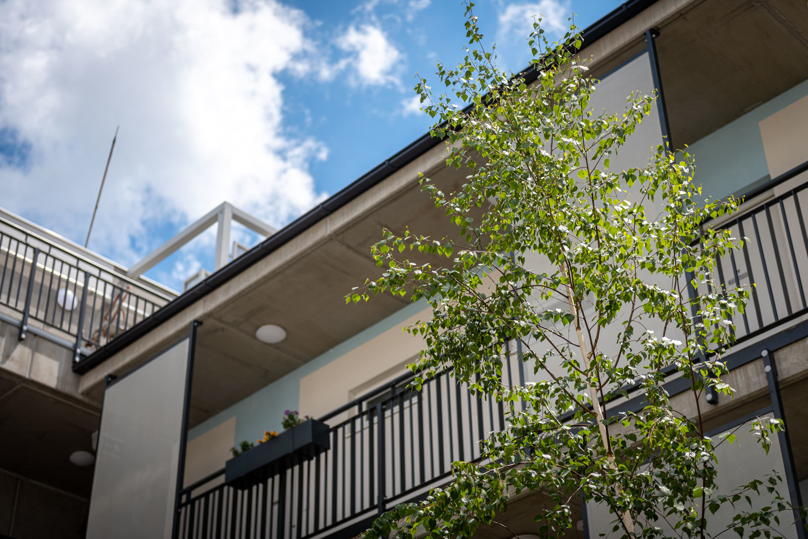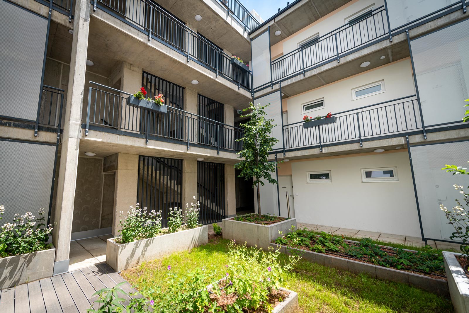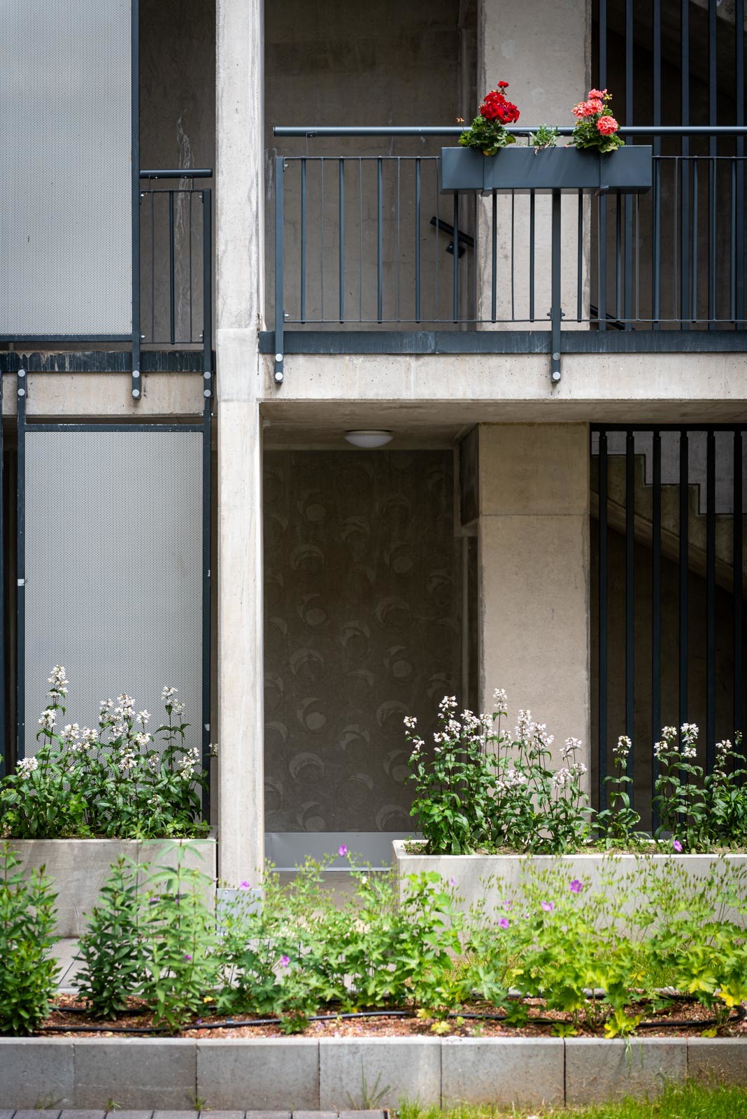 Az egész területet oldalkert, illetve a tömbök között kiépített kis, belső kertek övezik, melyek közös tulajdonú részek. Az egyes kertek között lévő teraszok és növényládák azonban kijelölik azok használatát az ott lakók számára.