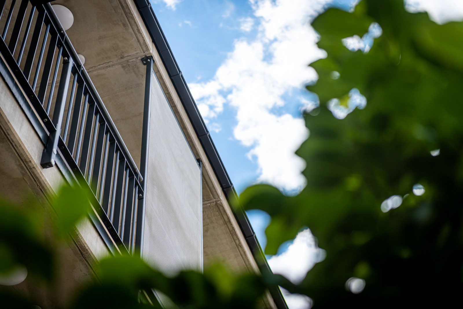 Az épületben sok látszóbeton felület kapott helyet, melyek jelentős része a közlekedő folyósokon található. A kivitelező a különböző szinteken különböző mintázatokat rejtett el a zsaluzatban; ezek a lenyomatok hangulatosabbá, ugyanakkor izgalmassá teszik a betonfelületeket.