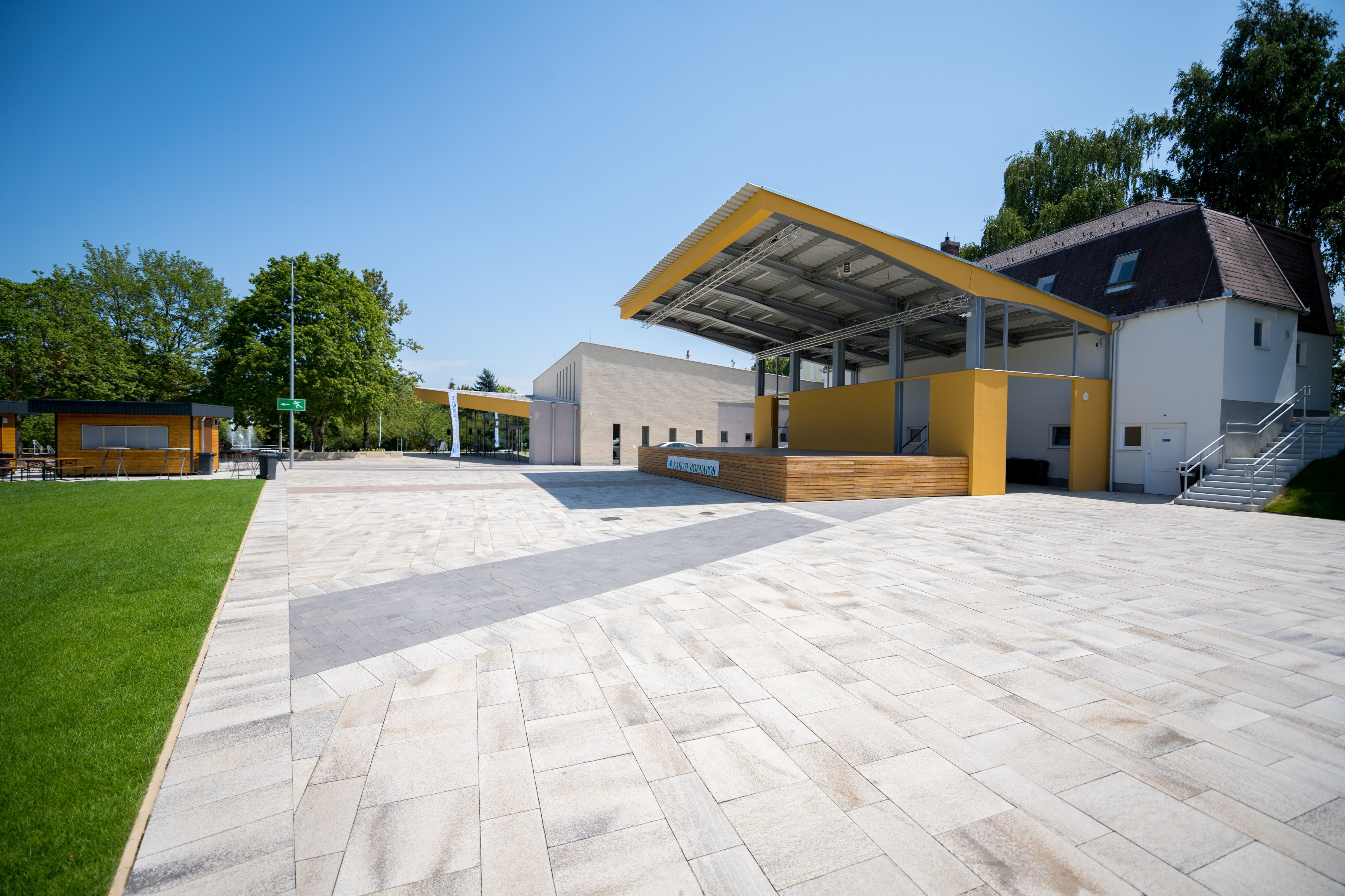 A csaknem 3000 fő befogadására alkalmas rendezvénytéren szökőkutat, térkővel borított sétányt és parkolót építettek.