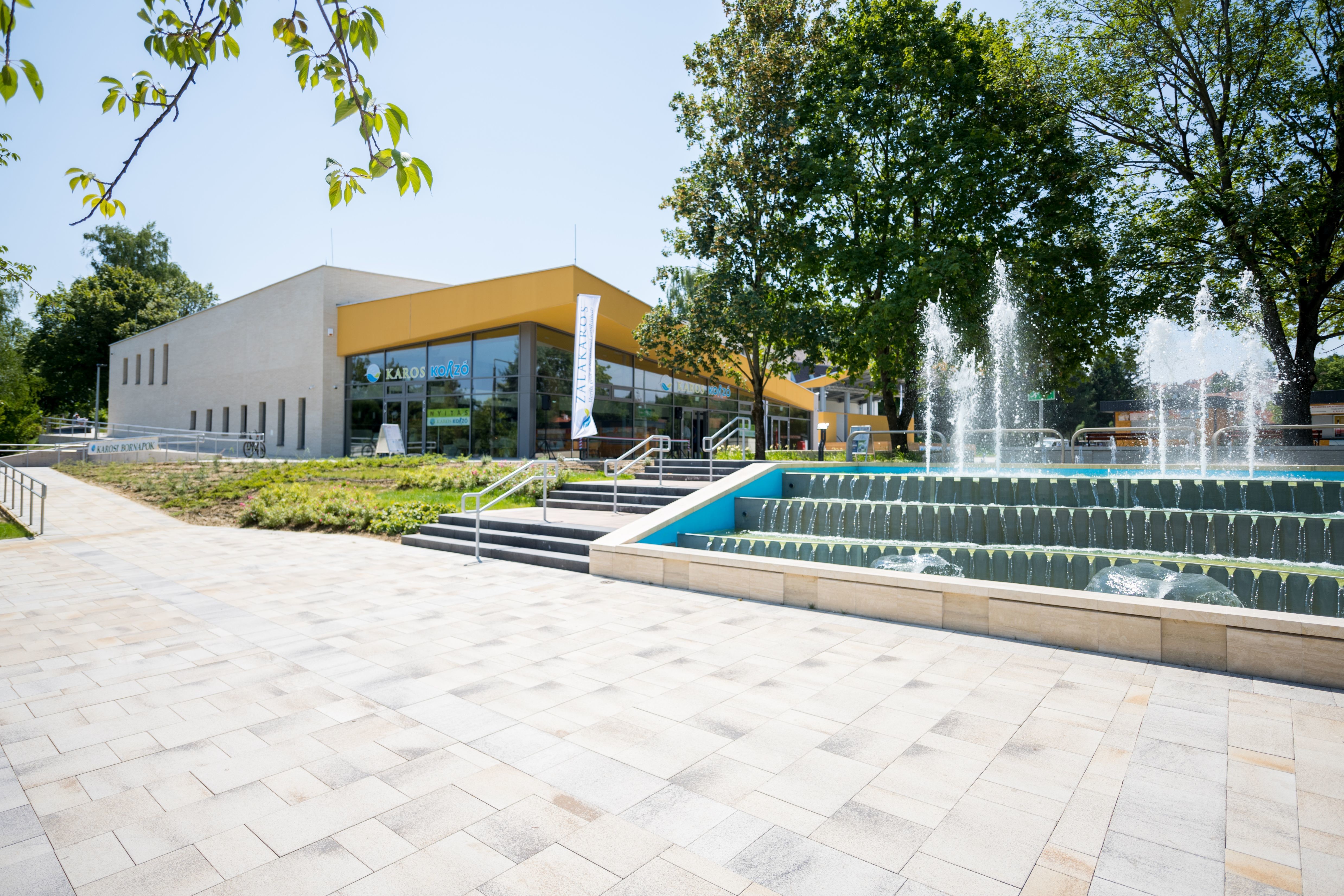 Szerdán lezajlott a Zalakarosi Rendezvény- és Látogatóközpont, a Karos Korzó ünnepélyes megnyitója. Korábban már írtunk róla, hogy a fürdővárosban történő fejlesztés során látogatóközpontot és kiszolgáló épületet, továbbá − külön szerződés keretében − a külső részeken egy rendezvényteret és arborétumot alakítottak ki.