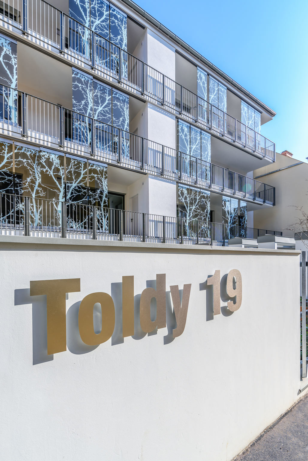A budai Vár alatti, I. kerületi Toldy Ferenc utcai 21 lakásos társasház generálkivitelezését az OTP Ingatlan Zrt. megbízásából az EB HUNGARY INVEST Kft. végezte.