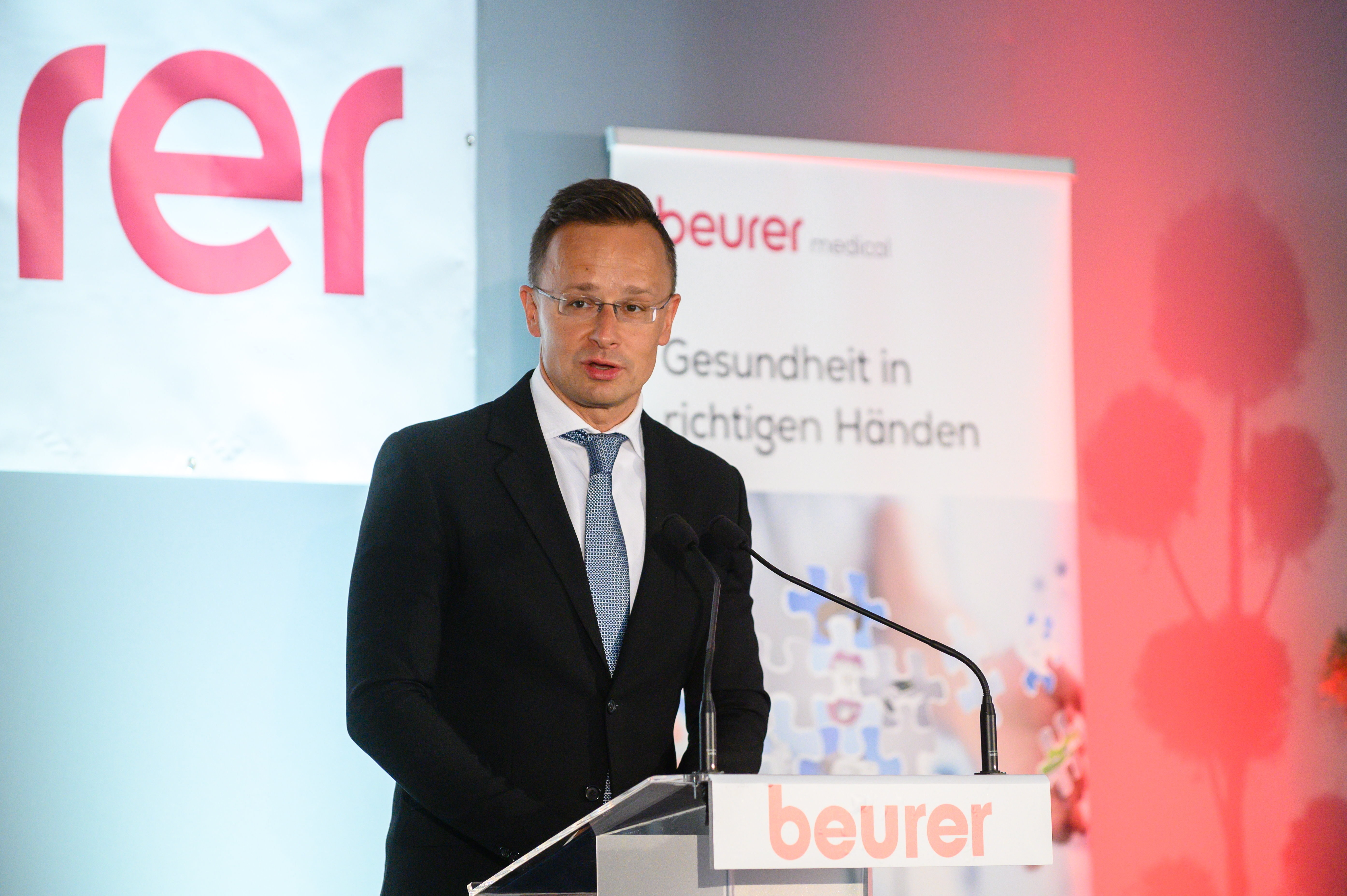 Kedden tartották az orvostechnikai eszközöket gyártó Beurer-Hungaria Kft. csarnokavató ünnepségét Veszprémben. Az eseményen Szijjártó Péter külgazdasági és külügyminiszter azt mondta: a jövőbeli biztonság egyik fontos záloga az, hogy Magyarország önellátóvá váljon az orvostechnikai eszközök gyártása terén.
