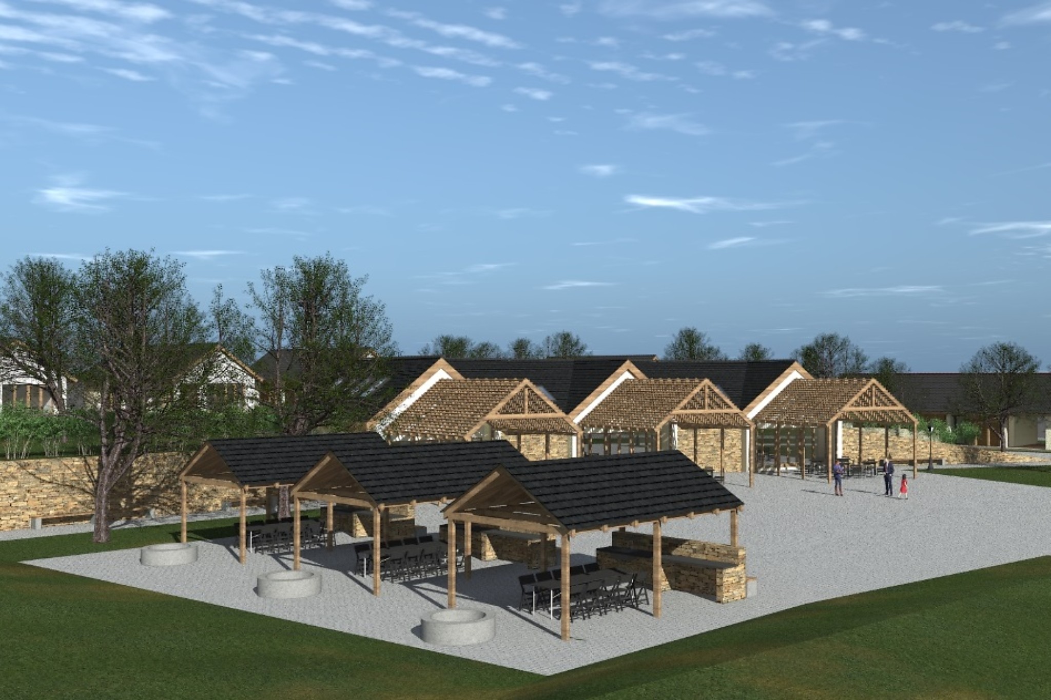 A látogatóközpont mellé rendezvény park és fényerő kialakítását tervezik. A park első szakasza beton térkő burkolatú tér és sétány, zöldfelületekkel kiegészülve.