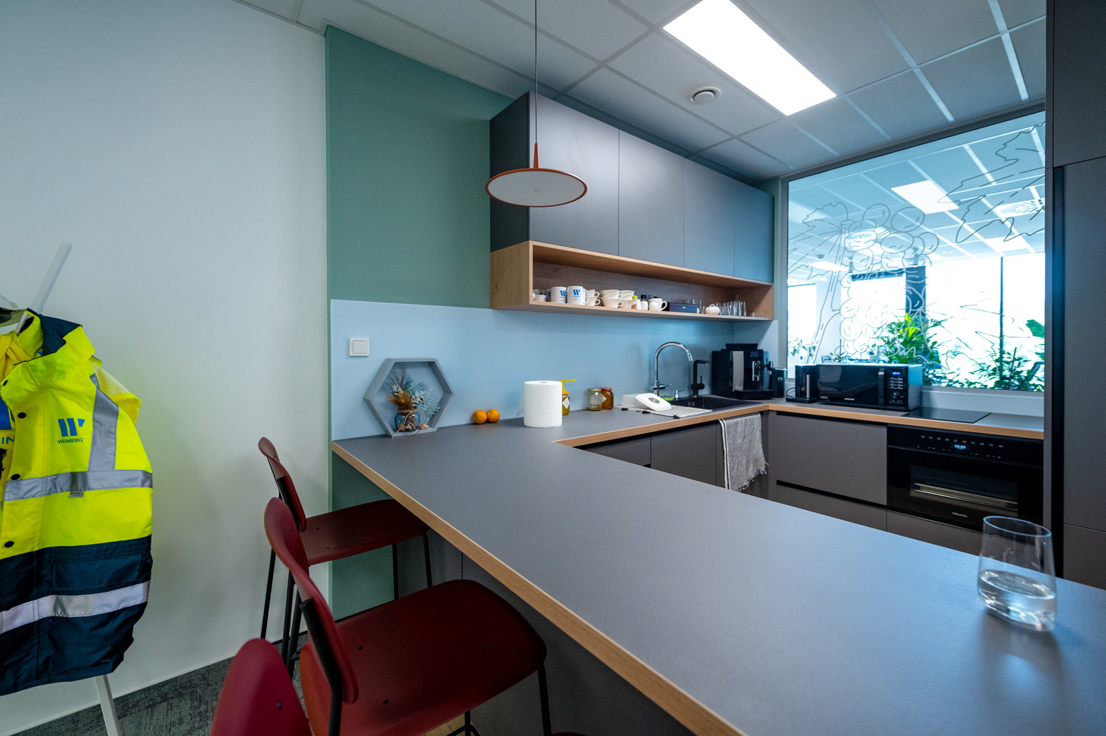 A pandémia sok tekintetben megváltoztatta a gondolkodásmódunkat, ez az iroda tervezésekor is megjelent: a kollégák váltakozva, meghatározott napokon otthonról dolgoznak, illetve járnak be.