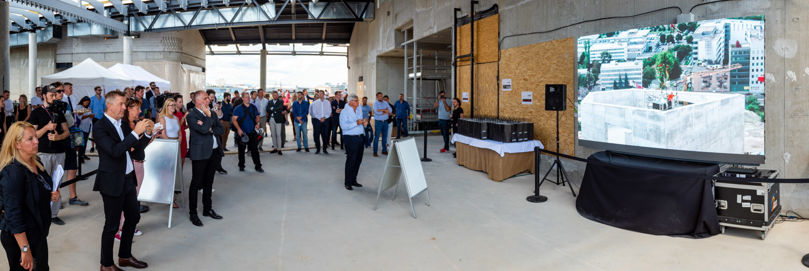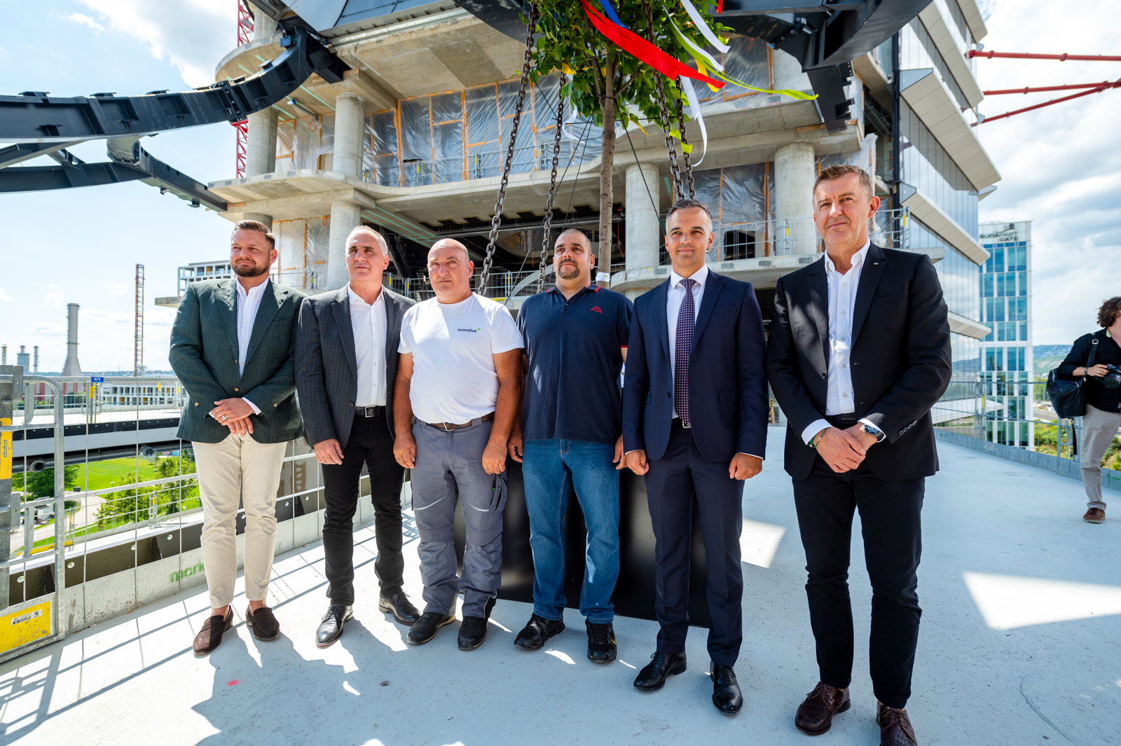 Ezt követően a beruházó, a kivitelezők és vendégeik a bokrétaünnepen hagyományos, egészében sütött ökörből tatottak vendégséget, illetve a sajtó munkatársait a rekordméretű liftekkel felvitték a torony tetejére, ahonnan a főváros délnyugati részét is megtekintehették a tetőszintről. Ide a MOL a kezdetektől kijelentett céljaként majd minden érdeklődő felátogahat majd az irodaház elkészültével és megtekinteti ugyanazt a panorámát, amit képeinken is bemutatunk.