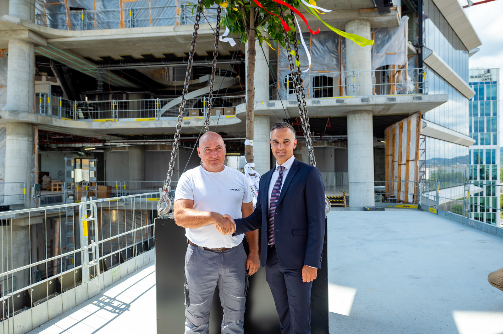 Ritter Ádám, a Moratus ügyvezető helyettes műszaki igazgatója egy gimnáziumi érettségijekor hallott idézettel kezdte felszólalását: „mindig legyenek beteljesületlen álmaink.” Kifejtette: a moratusosok most ennek az idézetnek tükrében egyszerre büszkén, de nehéz szívvel nézhetnek fel a toronyra. Büszkén, mert felépítették, de nehéz szívvel, mert új álmot kell keresni. Hangsúlyozta, hogy Magyarországon eddig nem látott technológiákat használtak a munkában számos más példa mellett elmondta: