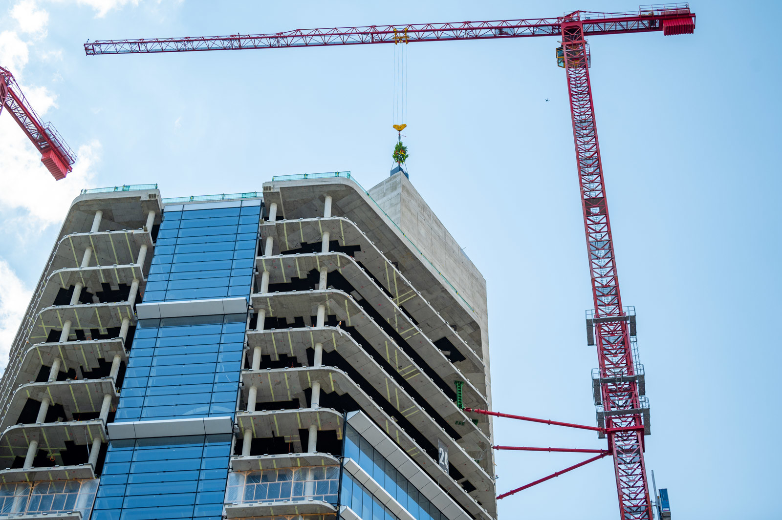 A 28 emeletes épület a 120 méteres magasságot már júniusban elérte, a felszín alatt található alaplemez alsó síkjától idáig mérve mérve 136 méter magas, tehát 16 méternyi pince és alapozás is található alatta, mely több föld alatti szintet tesz ki. A tartószerkezet 18 hónap alatt készült el.