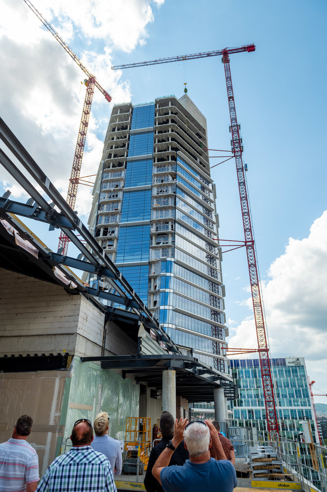 Az igazgató azokra a szakmai részletekre is kitért melyet a már korábban is idézett sajtóközleményben is leírnak, kifejtve: a toronyépület szerkezetépítésében több szakmai újítást is bevezetett a Market-csoport. Az épület magassága miatt a toronydarukat több ütemben magasították és kötötték ki az elkészült szerkezethez. A legmagasabb toronydaru 165 méter magas, melynek fülkéjét már lifttel közelíti meg a darukezelő.