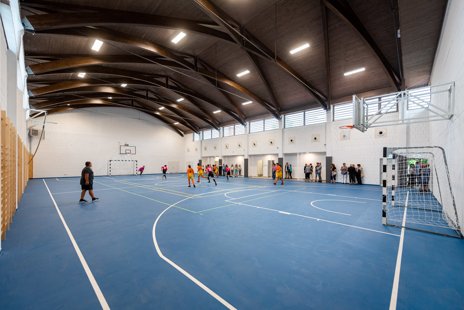 A kivitelező cég munkájával egy 7,1 méter szabad belmagasságú küzdőtérből és hozzá tartozó földszintes kiszolgáló helyiségekből álló tornaterem készült el, melynek nettó hasznos alapterülete 764,08 négyzetméter.