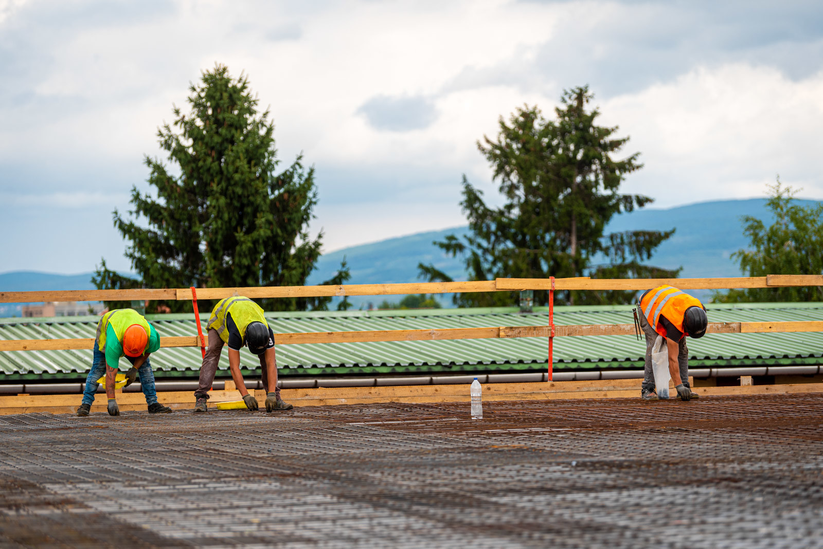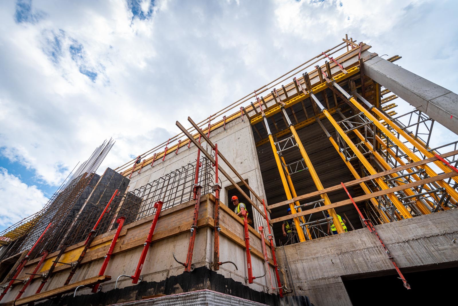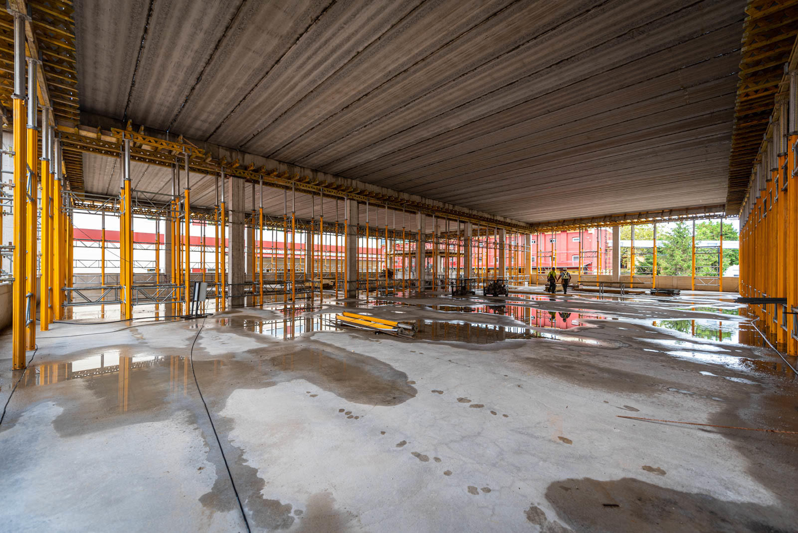 Szeptember elejére az épület teljes vasbeton váza elkészül, és elkezdődhet az acélszerkezet szerelése, valamint a tető- és a homlokzatburkolási munkák is.