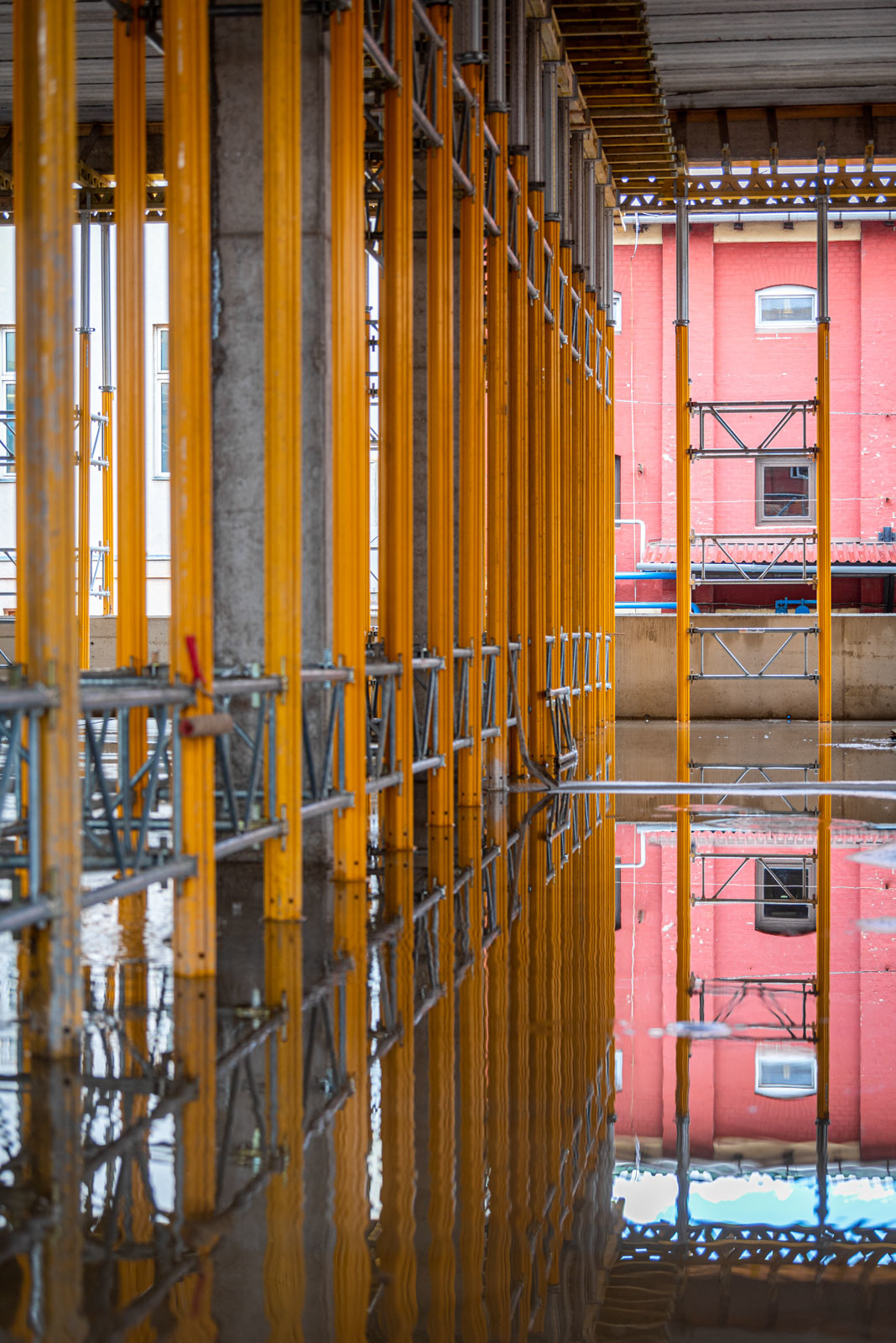 Emellett az időjárás viszontagságai is külön terhet rónak a szakemberekre. Szintén nehezítő körülmény, hogy az egész projekt a folyamatosan működő üzem kellős közepén valósul meg, különös tekintettel arra, hogy az építkezés nem akadályozhatja a gyártási és logisztikai folyamatokat. A kivitelezésre ráadásul szokatlanul szűkös hely áll rendelkezésre - főleg a felvonulási területet illetően -, így az anyagtárolás és a mozgatás is igazi próbatételt jelent a szakemberek számára.