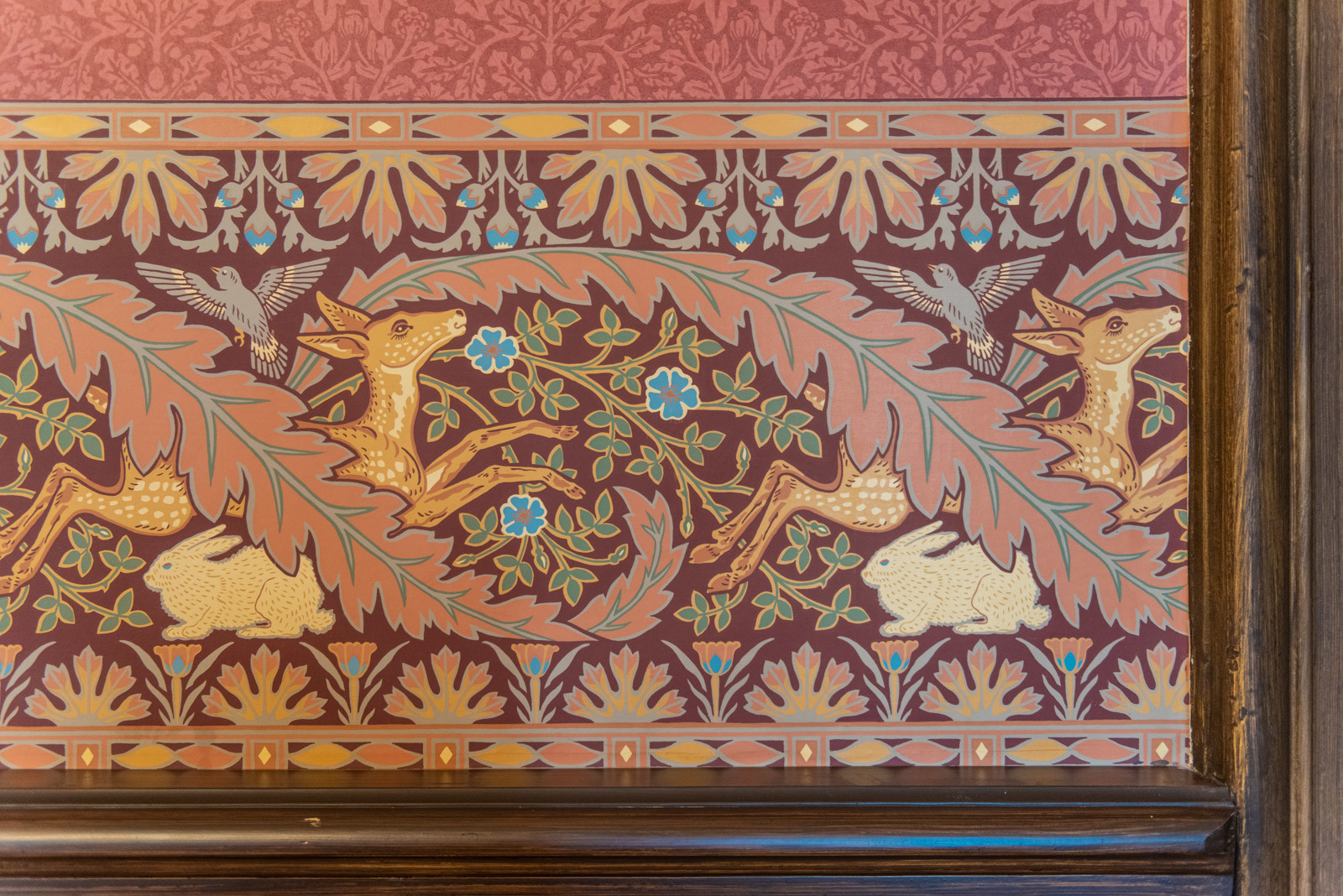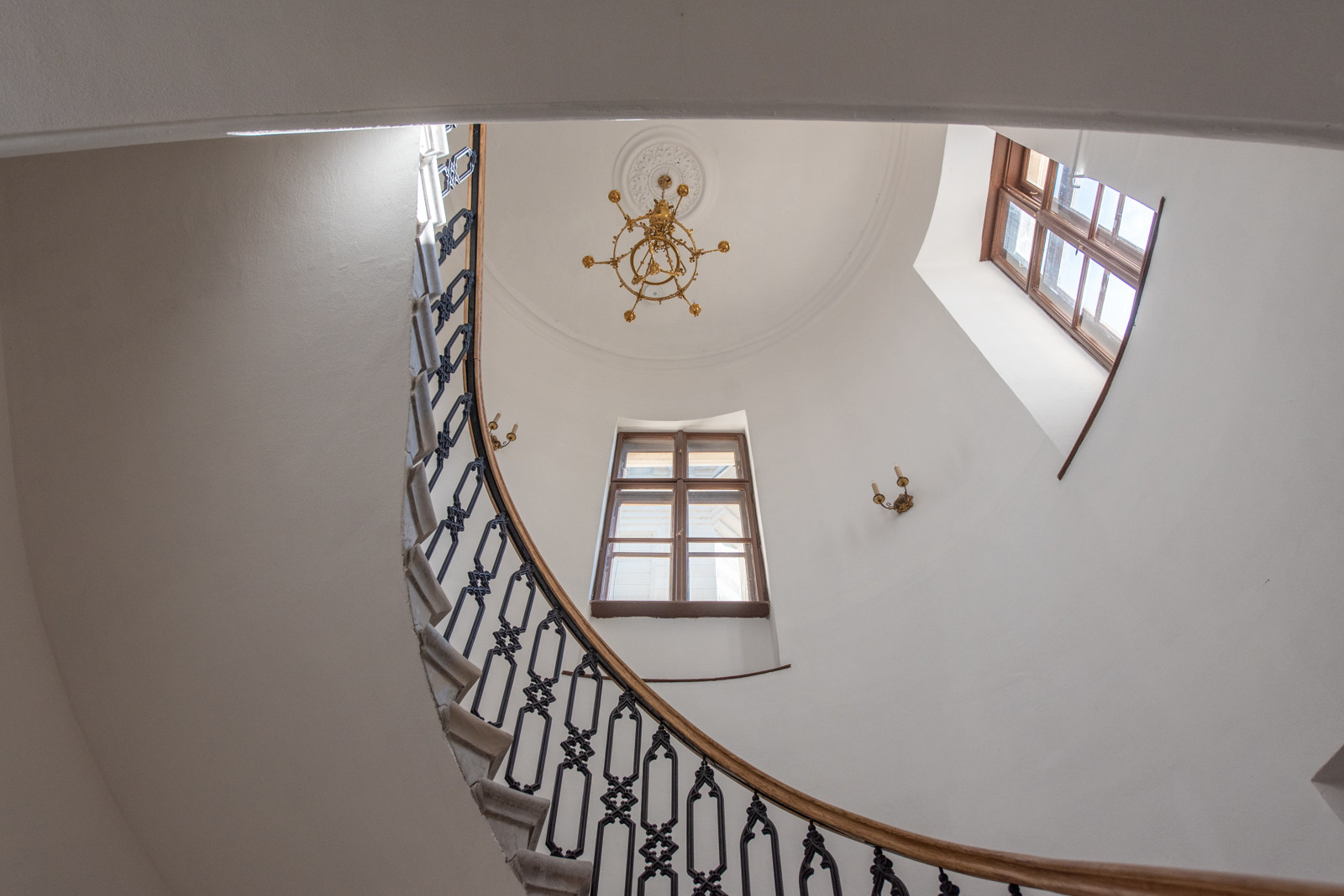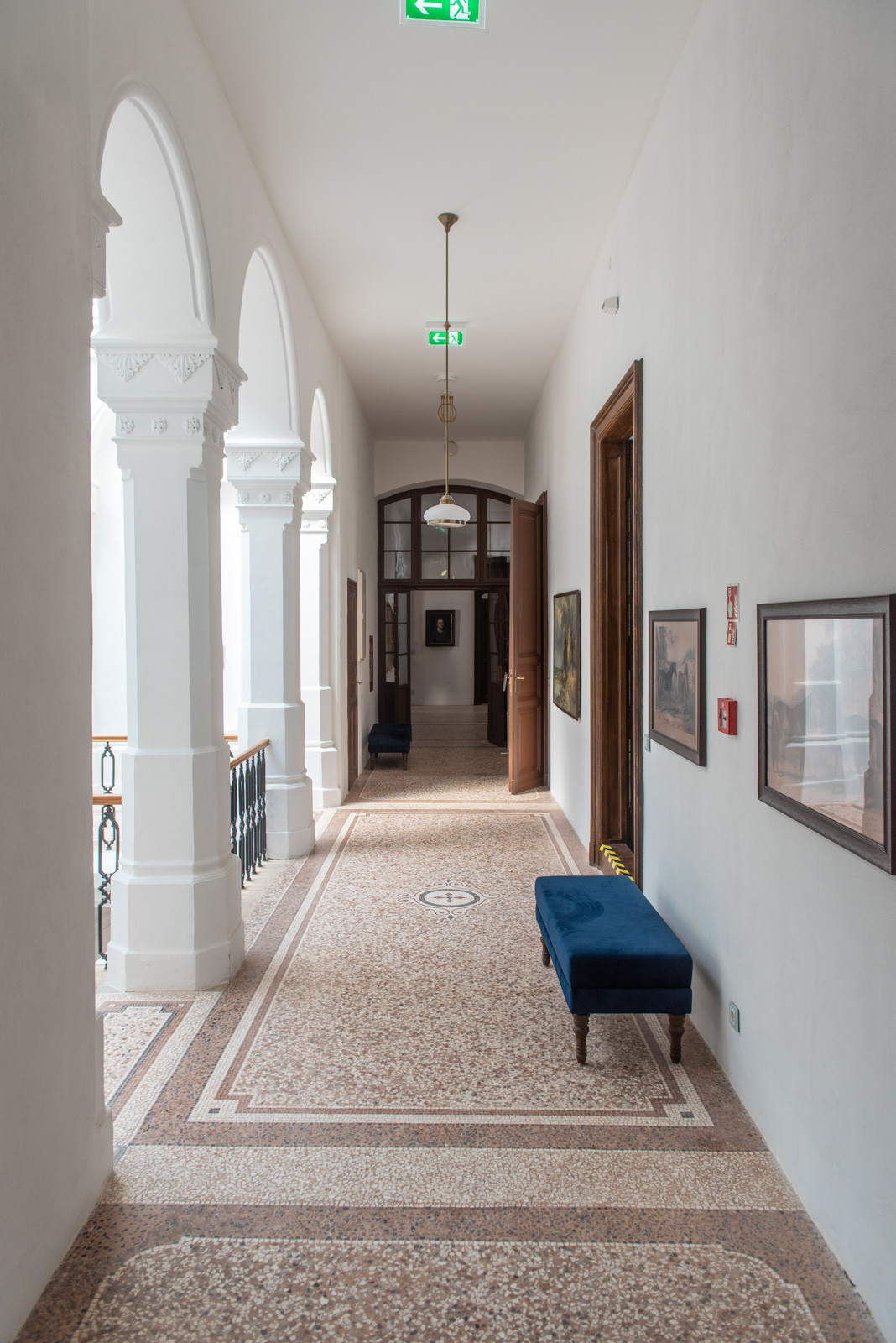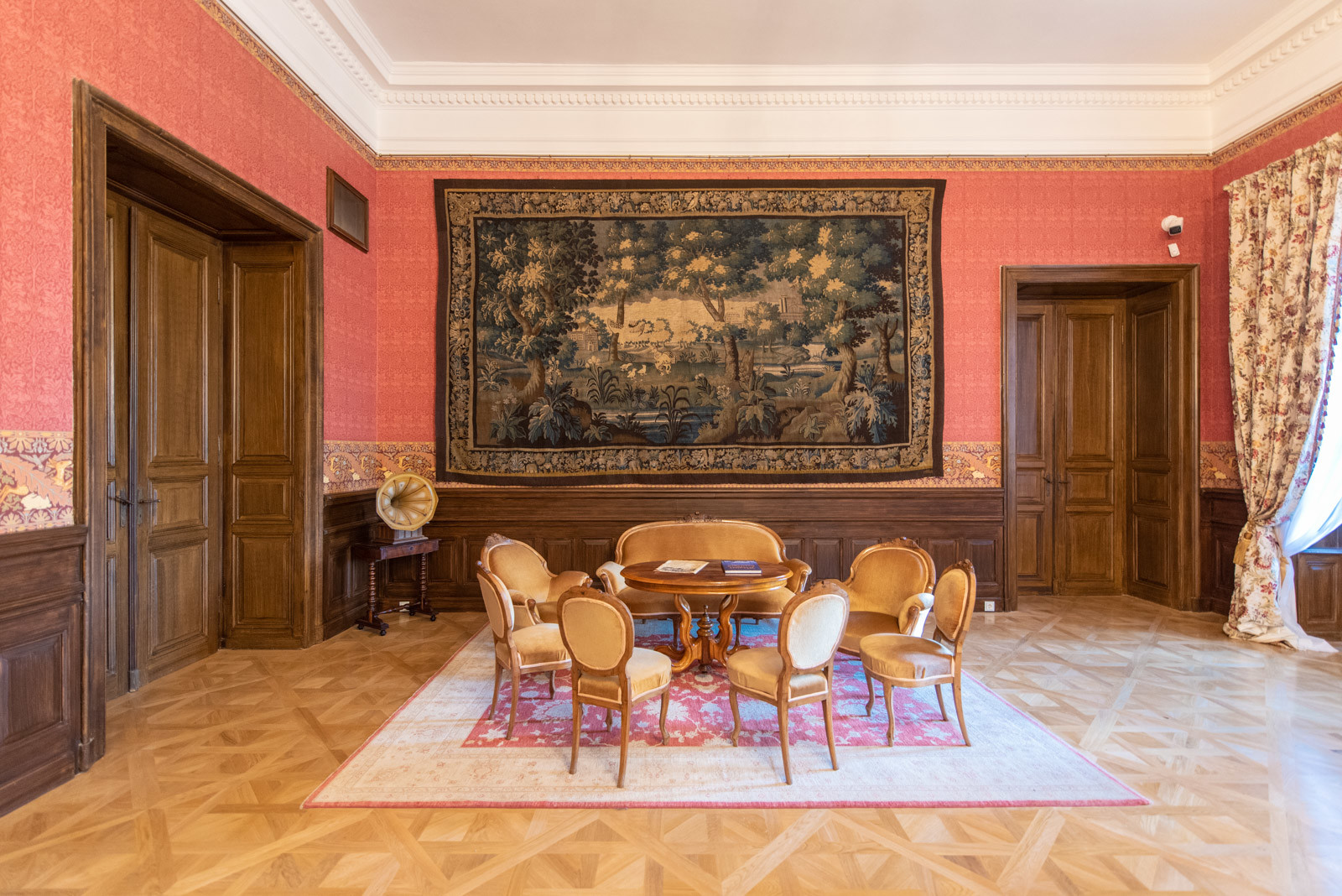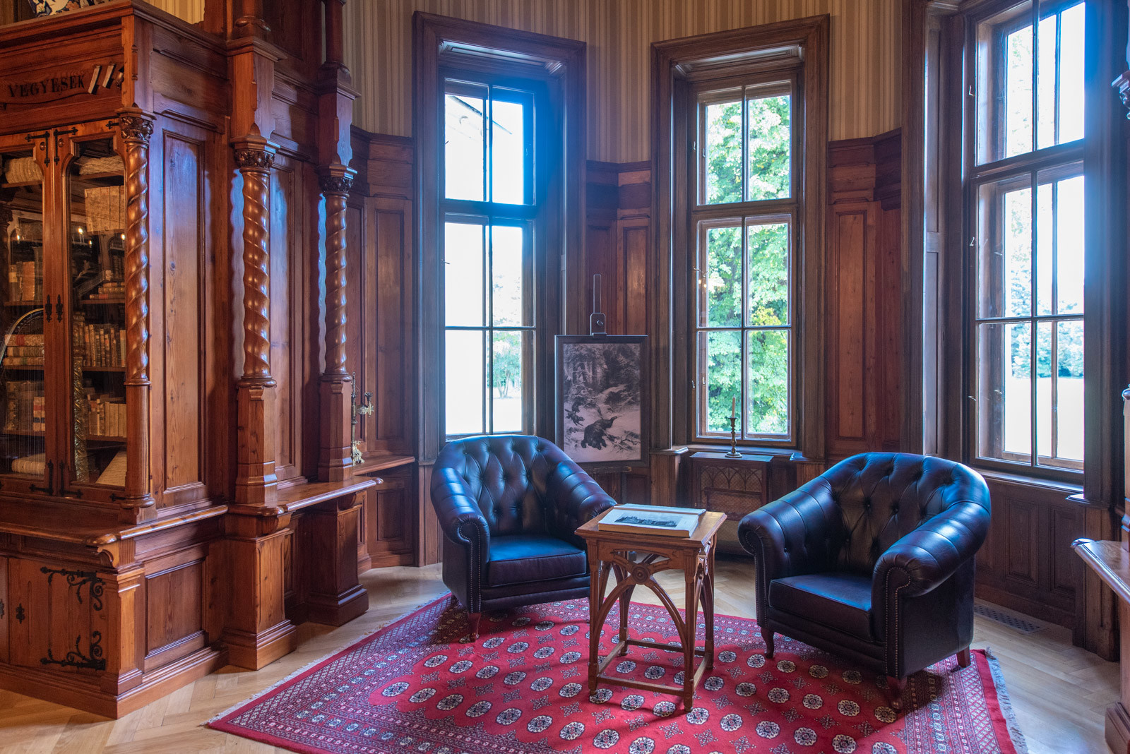 „Amikor már azt hittük, hogy végeztünk a gombamentesítéssel, kiderült, hogy a földszinti könyvtárban is jelen van, amely az egyik eredeti állapotában megmaradt faszekrényes, illetve faburkolatos helyiség. A mennyezeti lapok bontását restaurátorok bevonásával végeztük úgy, hogy a mentesítést követően azokat a régi állapotában vissza lehessen tenni.”