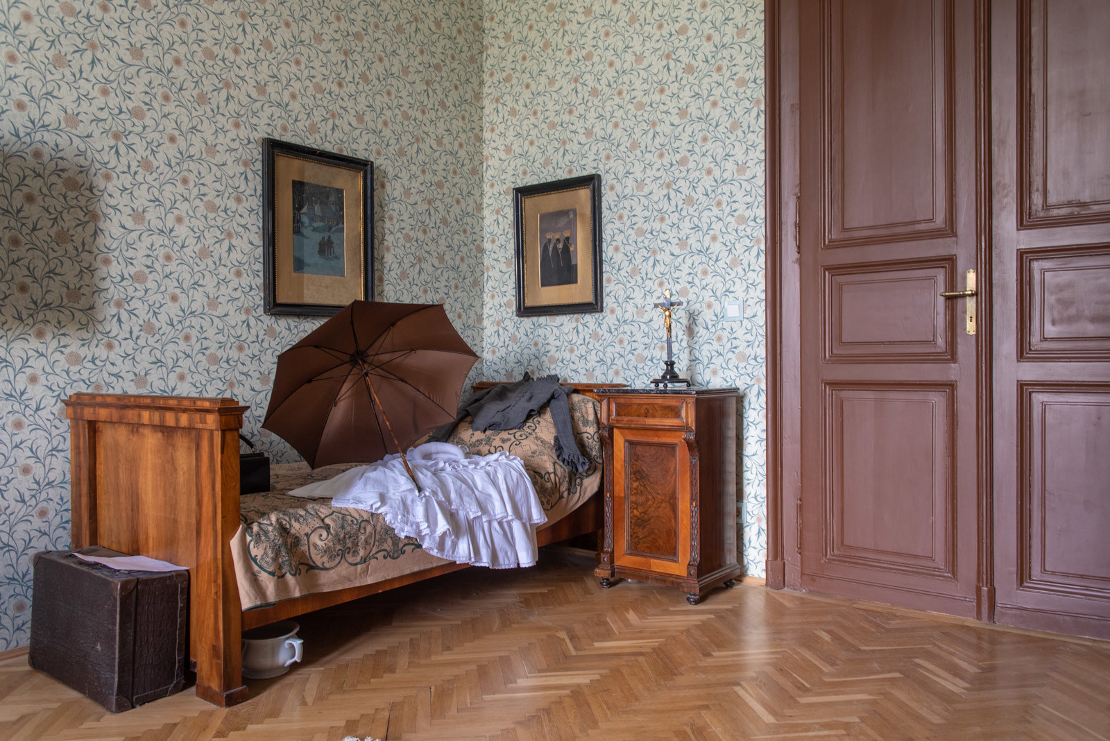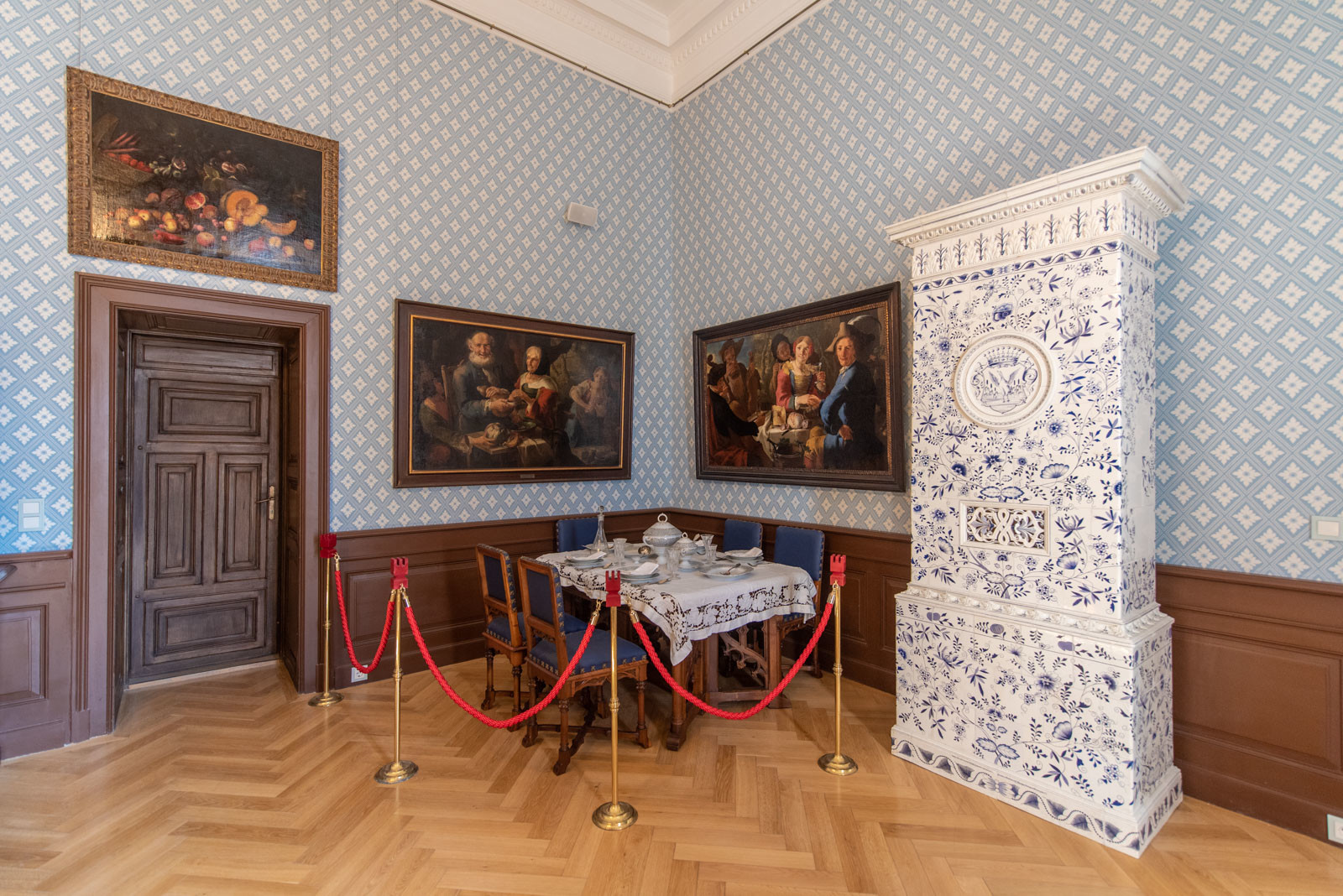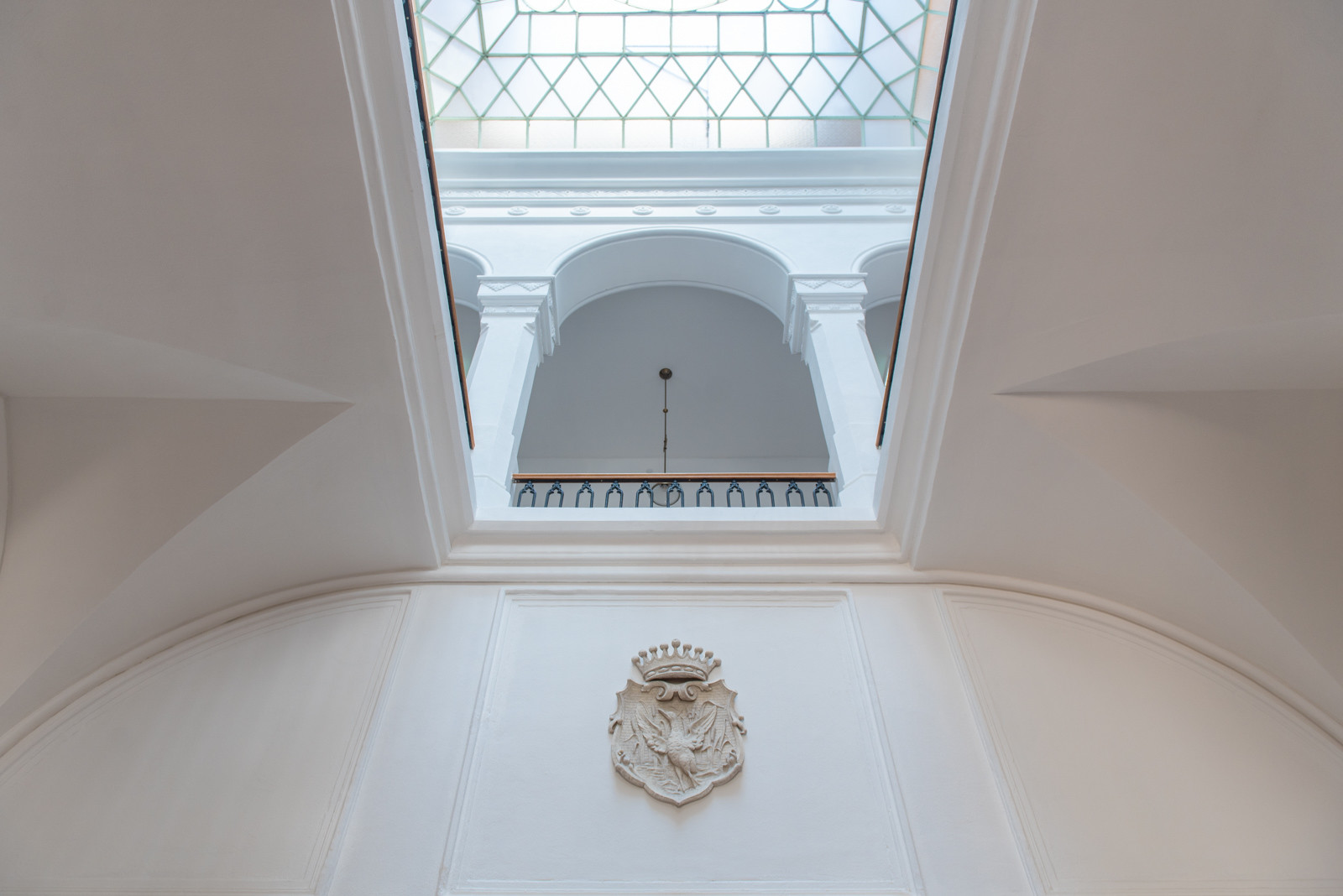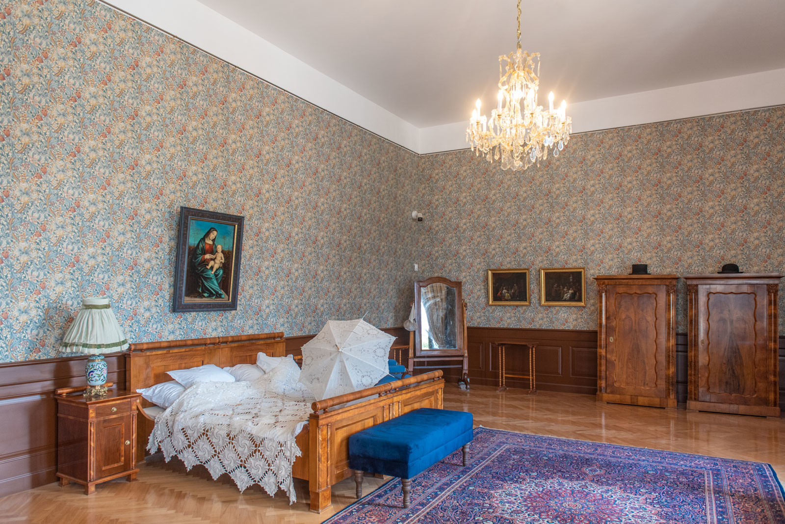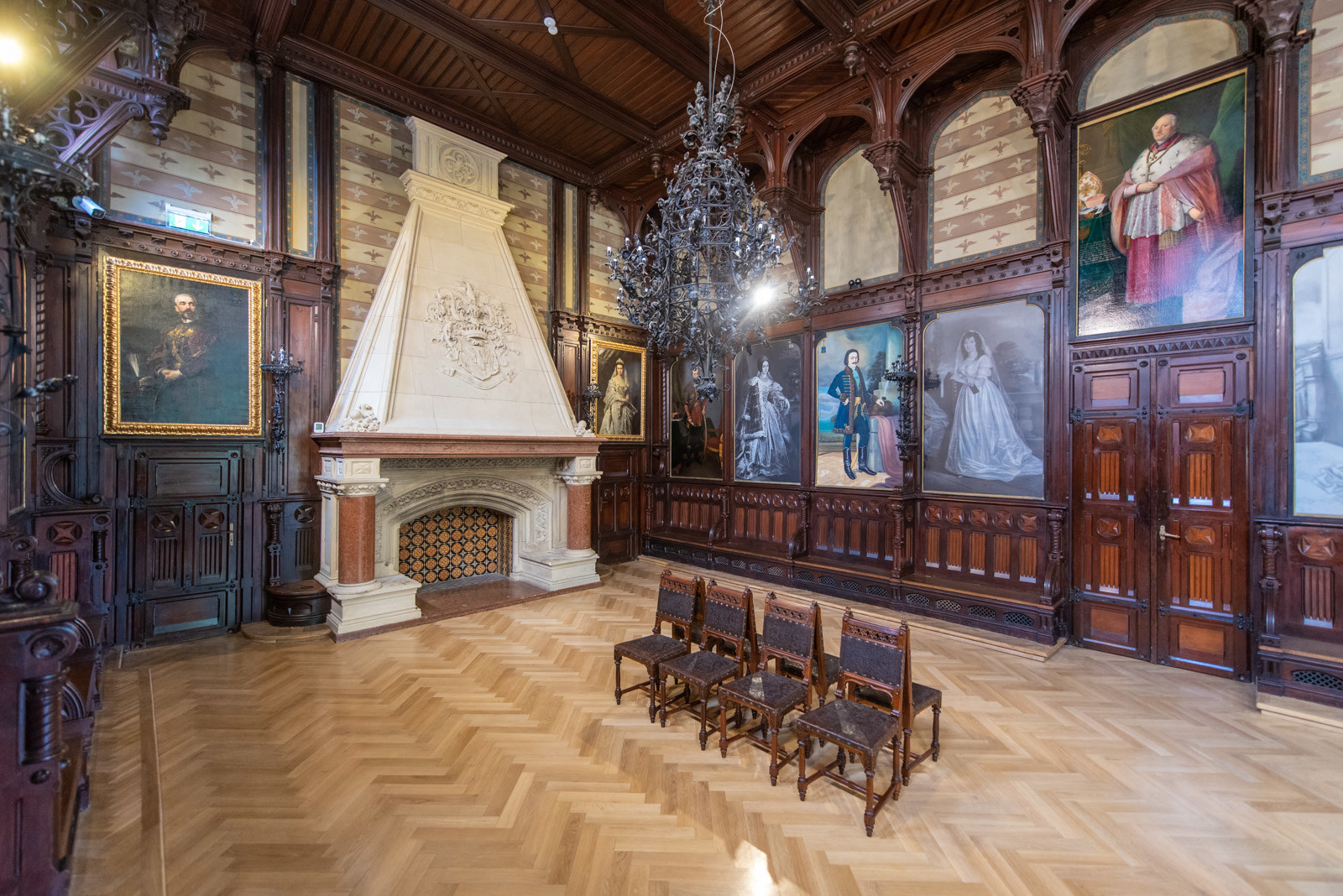 „Amikor már azt hittük, hogy végeztünk a gombamentesítéssel, kiderült, hogy a földszinti könyvtárban is jelen van, amely az egyik eredeti állapotában megmaradt faszekrényes, illetve faburkolatos helyiség. A mennyezeti lapok bontását restaurátorok bevonásával végeztük úgy, hogy a mentesítést követően azokat a régi állapotában vissza lehessen tenni.”