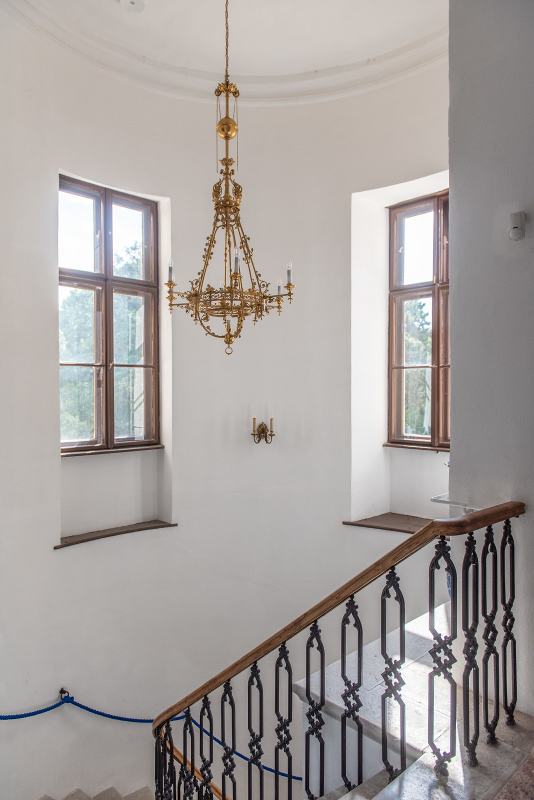 A kastélyszárny főépülete több helyszínen is jelentős átalakuláson esett át. A földszinten egy addig üzemelő kiállítóterem helyezkedett el, de az épület többi részét nem látogathatták, ugyanis azok a ’80-as évekbeli leromlott állapotban voltak. A felszíni munkálatokat számos szerkezetbontási feladattal kezdték, elsősorban fel kellett tárni és megszüntetni a gombafertőzéseket. A vizsgálatokhoz a régi mennyezetet deszkázatig bontották, majd a mentesítés után gipszkartonból új réteget hoztak létre annak érdekében, hogy a tűzvédelmi előírásoknak is megfeleljen. Molnár Gábor kifejtette, váratlan helyeken is feltűnt a gomba, ami szintén kihívást jelentett: