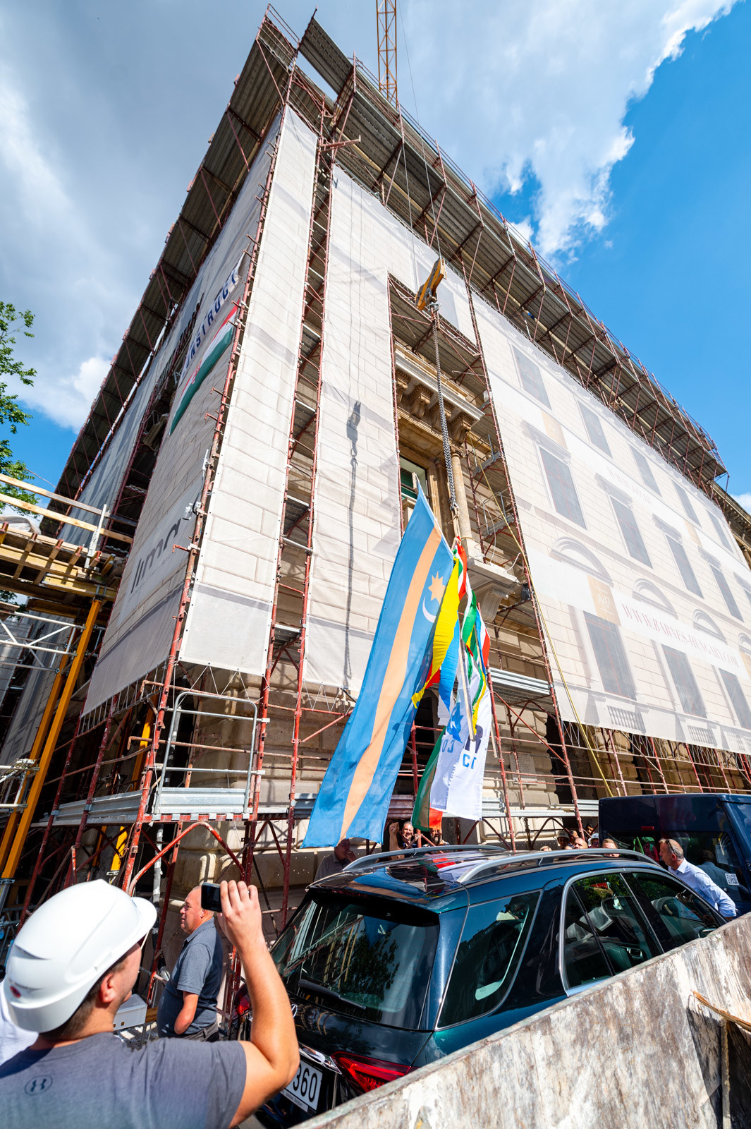 Fontos mérföldkőhöz érkezett az Andrássy út 47. szám alatti eklektikus, neoreneszánsz stílusú épület felújítása. A munkálatok tavaly februárban kezdődtek és pénteken tartották a bokrétaavató ünnepséget.