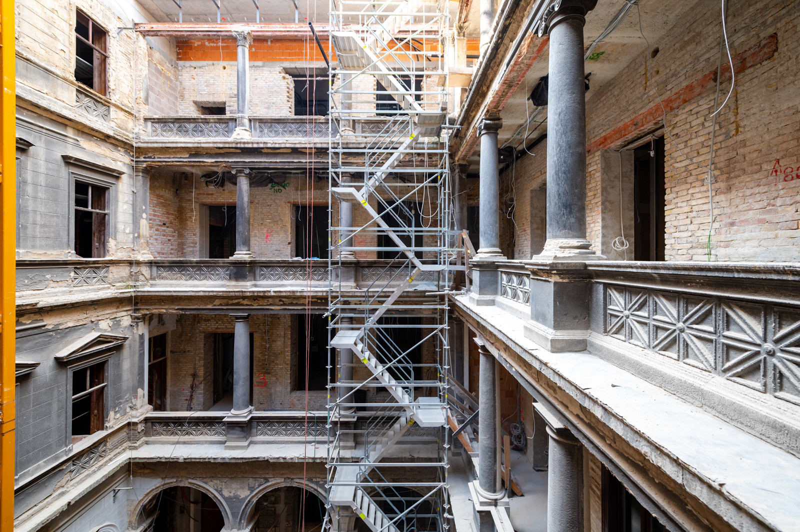 A kivitelező Bayer Construct Zrt. nagy hangsúlyt fektet a műemléki épületrészek és terek védelmére, a szomszédos épületek állagmegóvására, valamint a kiváló minőségű restaurátori munkálatokra.
