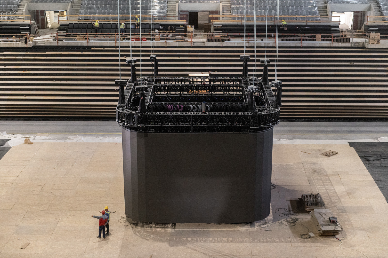 A Market Építő közleményéből kiderült, a 22 ezer férőhelyes aréna belső terében már helyére került az óriási eredményjelző tábla, hamarosan fel is emelik a magasba a végső rendeltetési helyére. A minden oldalról látható kijelző összetett technikai részletekkel rendelkezik: