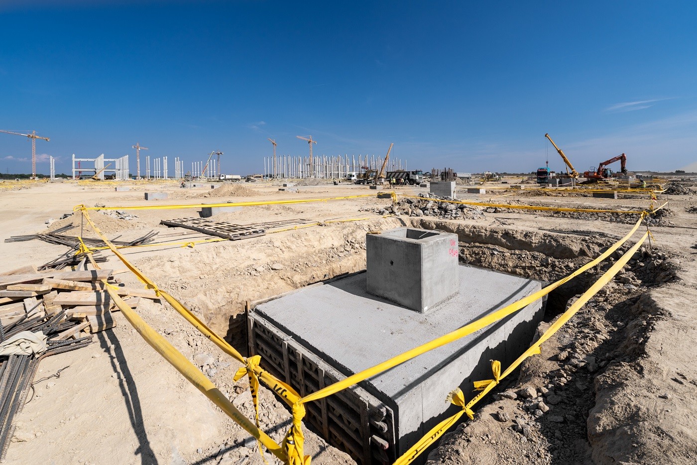 A közlemény szerint a nagytömegű földmunkák már véget értek, augusztusban pedig befejeződött a cölöpözés is, amit Magyarországon rekordszámba menően 14 géplánccal fúrtak. "Nem csak a cölöpöző gépek száma igazi csúcsteljesítmény, de az általuk lefúrt cölöpök száma is: a területen összesen 136 kilométernyi cölöppel, három hónap alatt biztosították az épületek kivitelezését" - áll a beszámolóban.