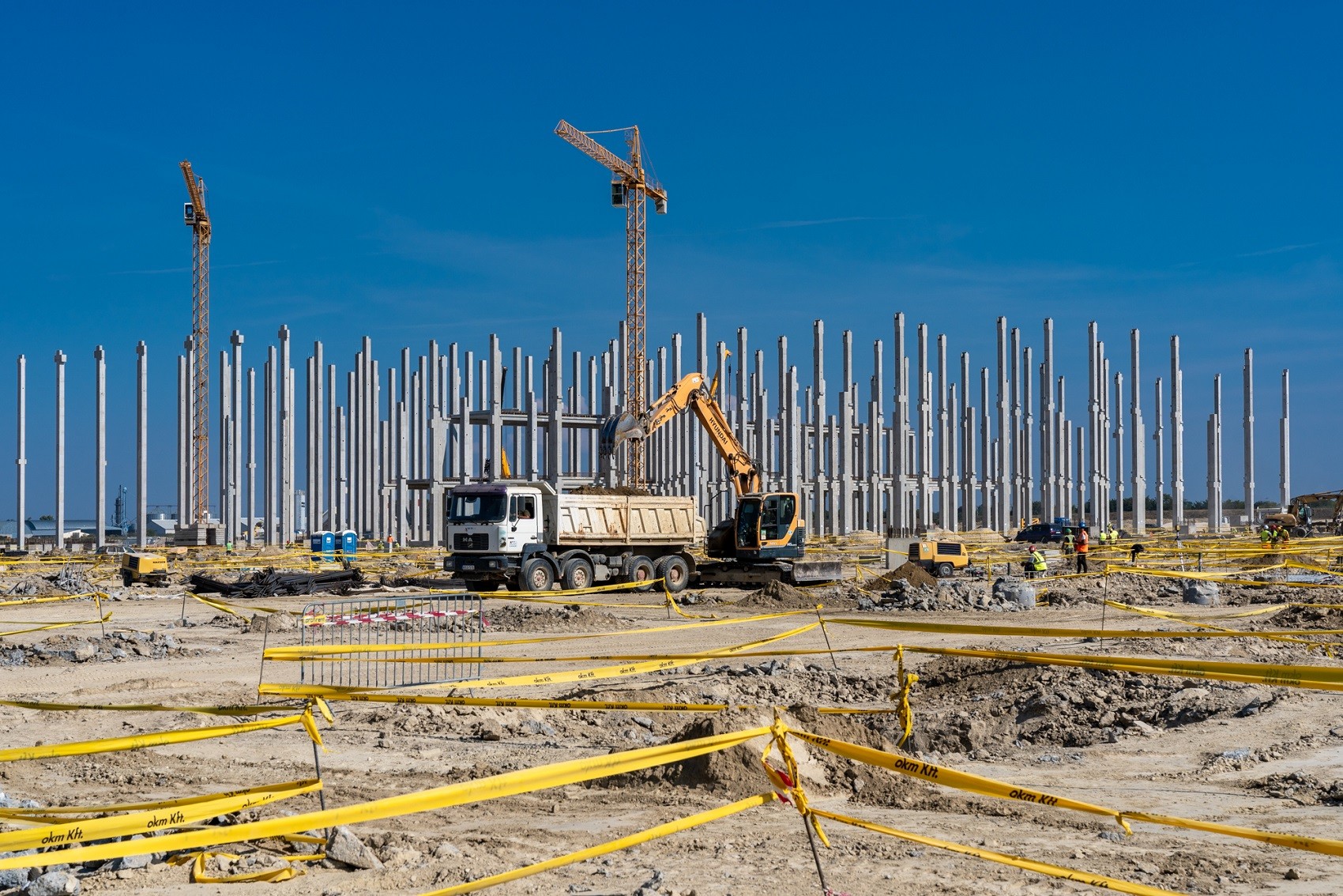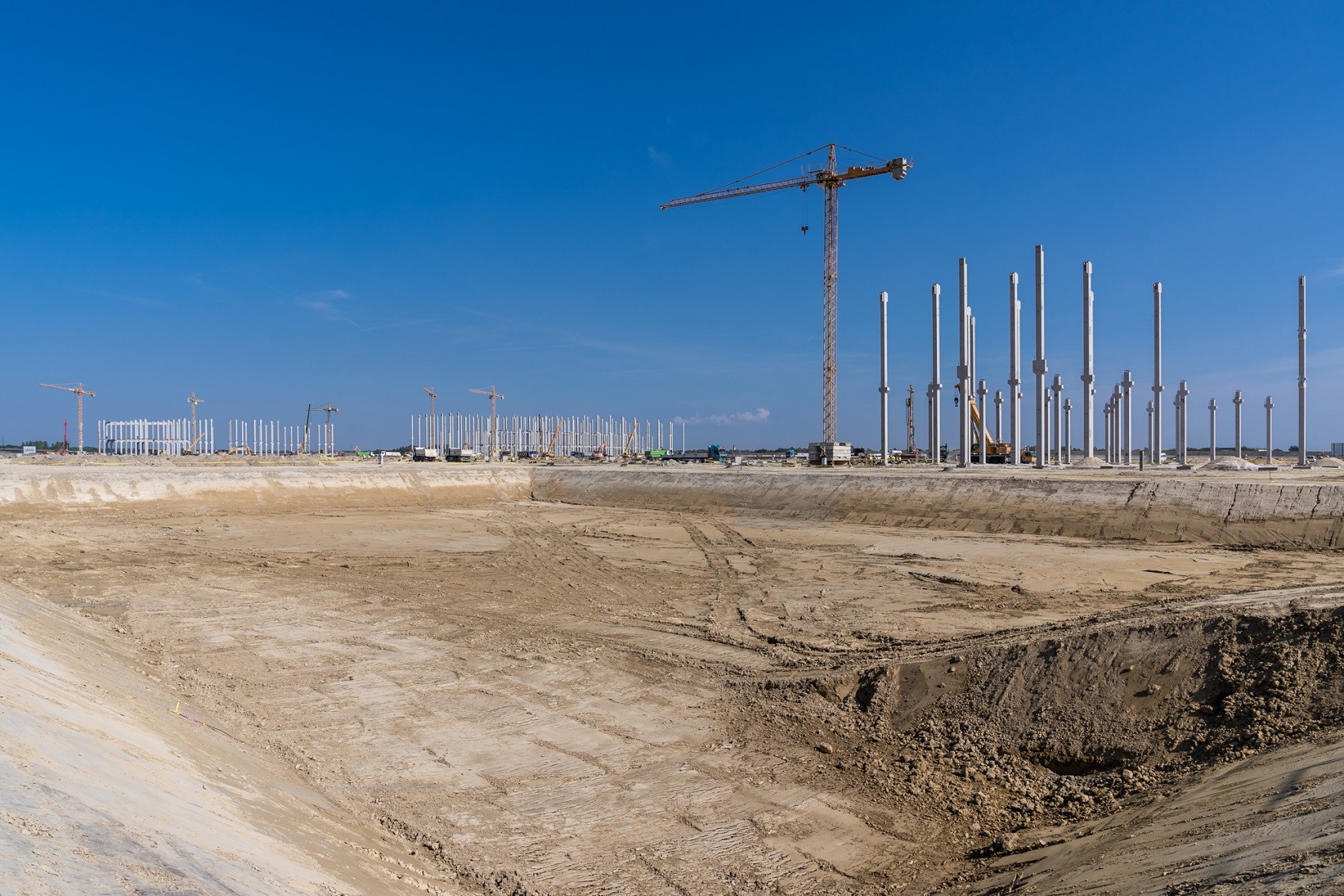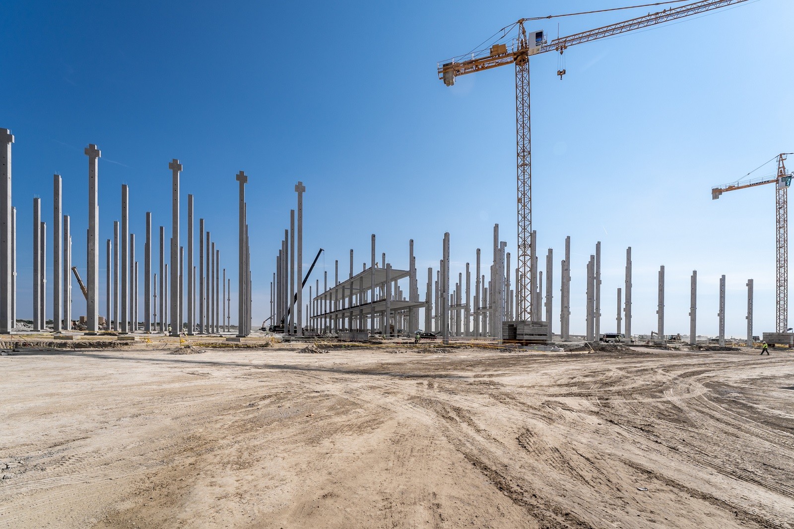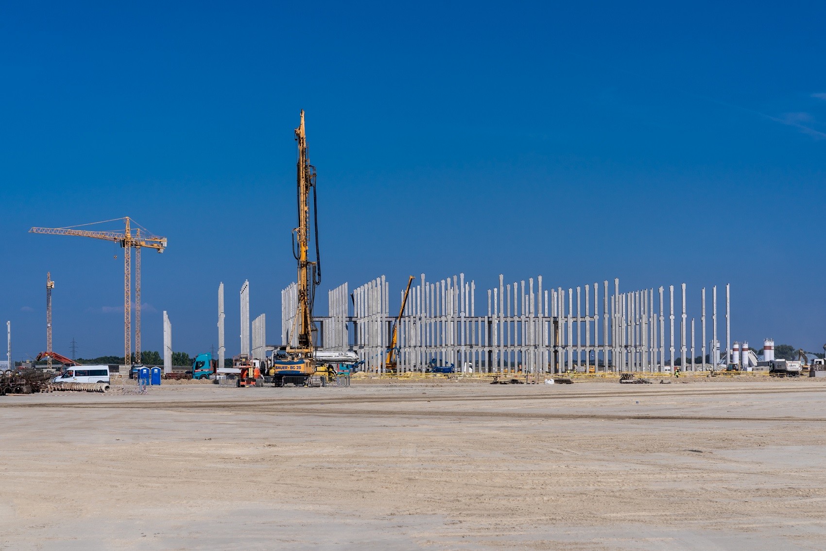 A munkálatok során 28 toronydaru látja el a magasépítési feladatokat, a cölöpözést rekordszámba menően 14 géplánccal végezték. A projekt megfelelő haladásáról és a kellő mennyiségű beton biztosításáról az ország legnagyobb mobil betonkeverője gondoskodik, amellyel óránként akár 17 betomixer is megtölthető.