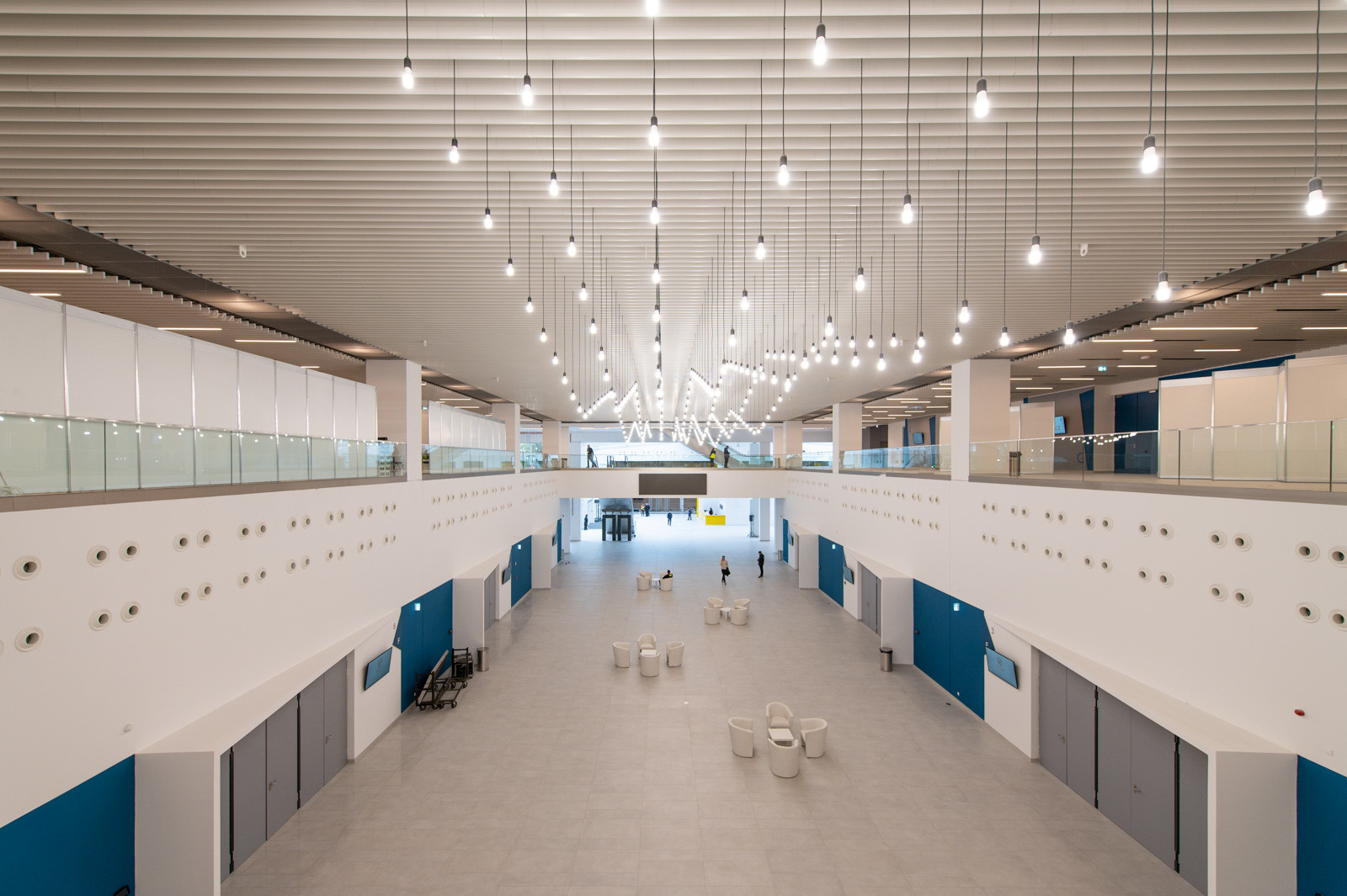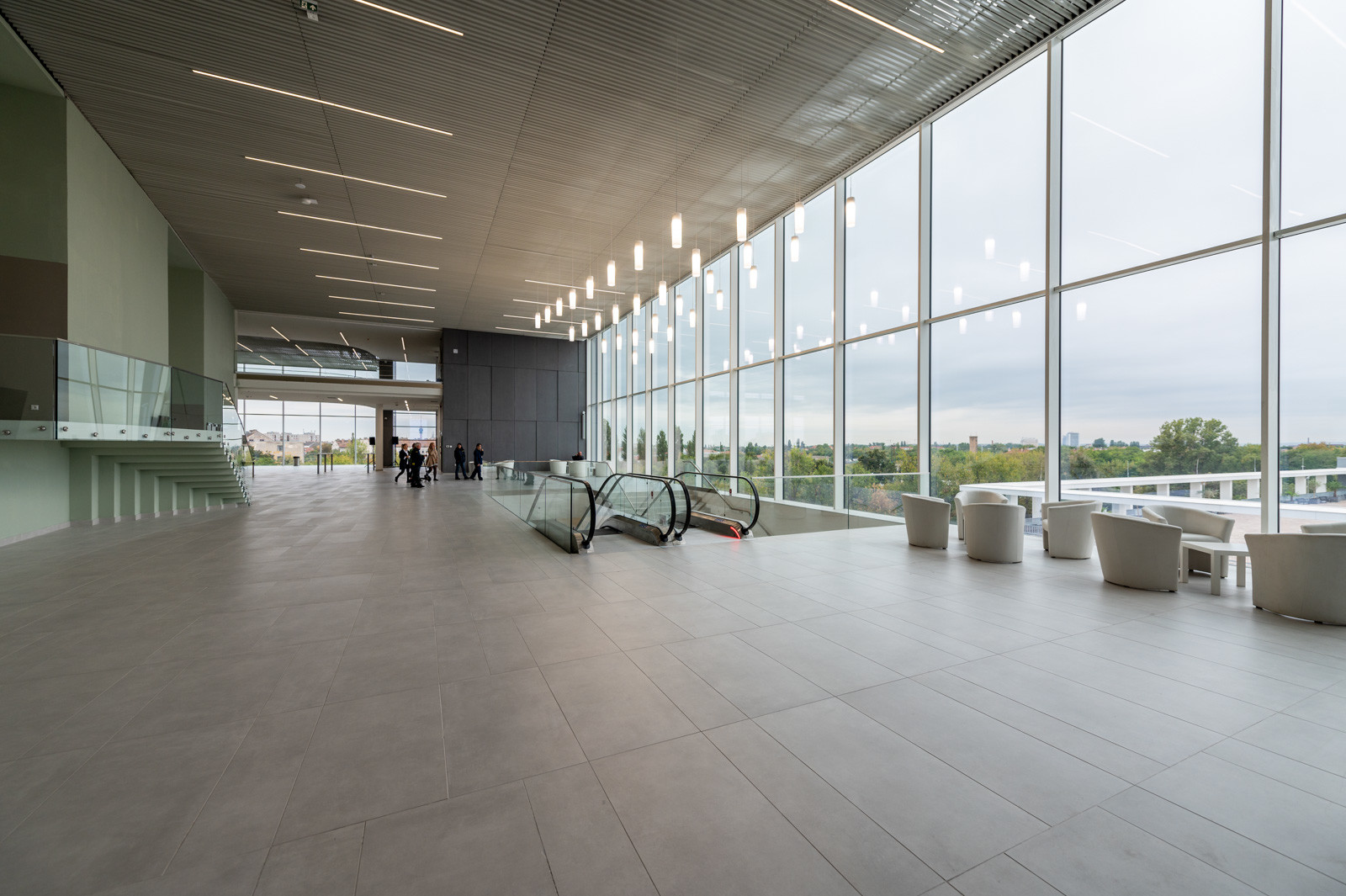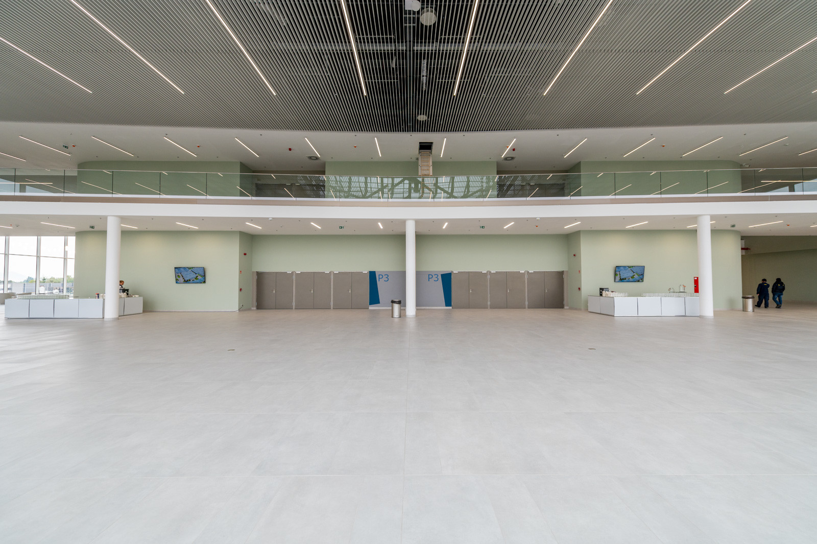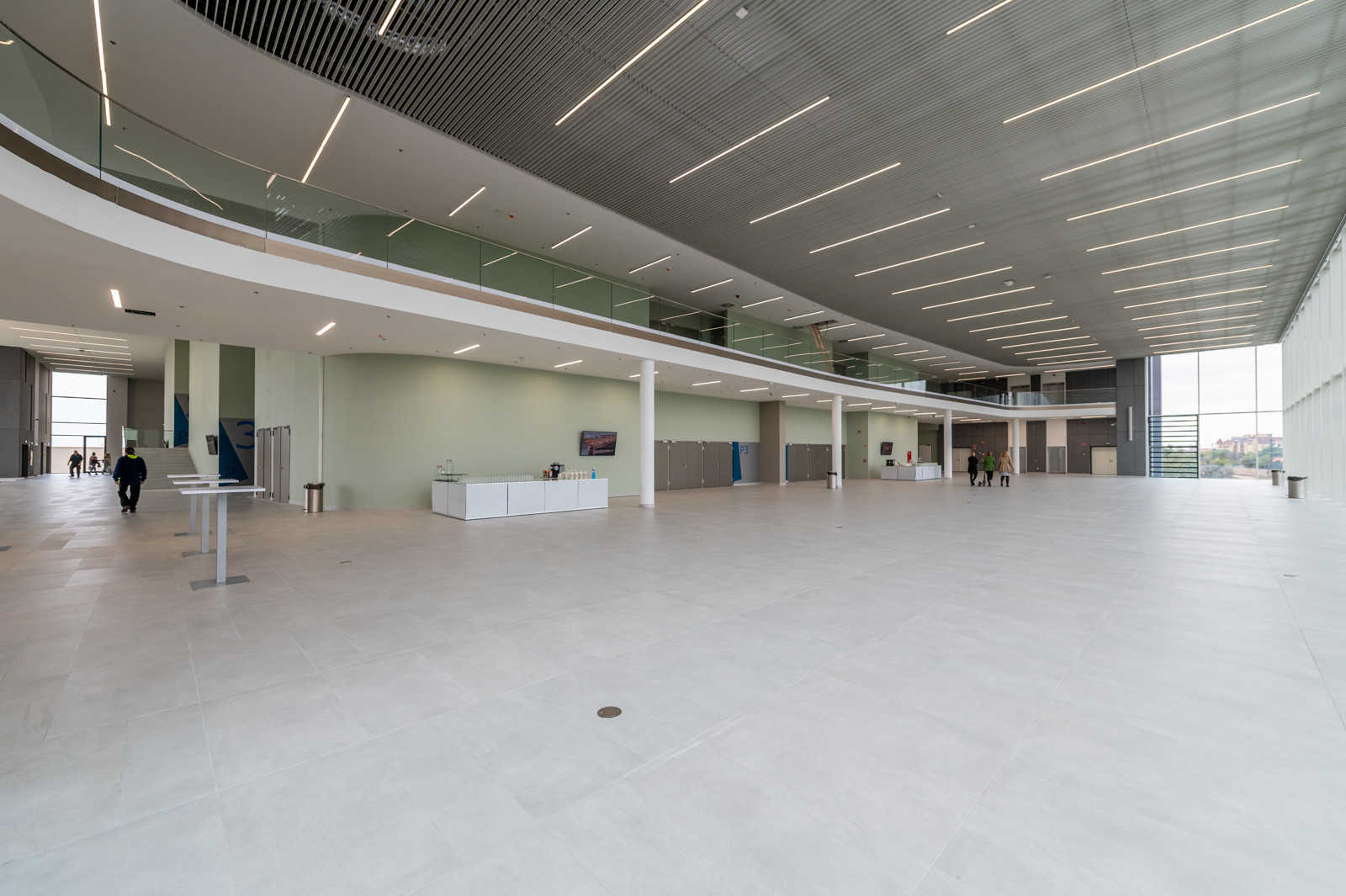 A konferenciaközponthoz csatlakozik egy vele teljesen egybenyitható vagy tőle teljesen elválasztható 2500 négyzetméteres kiállítási csarnok is a bejárati szinten.