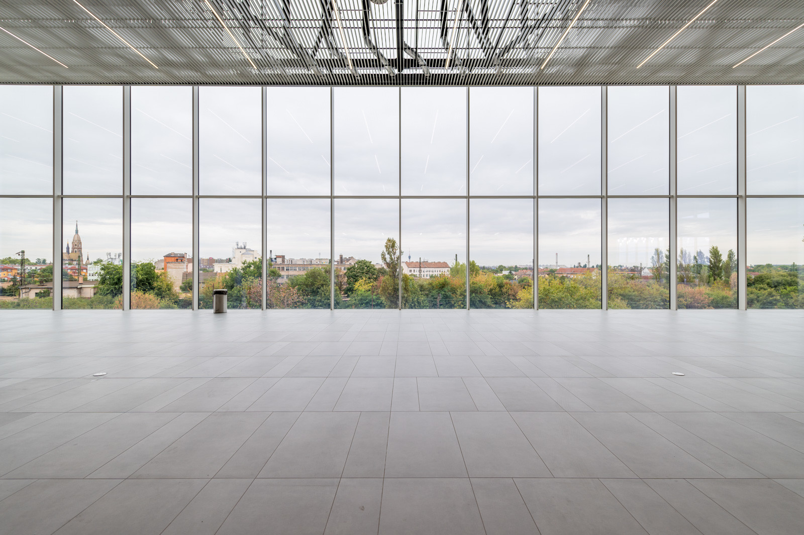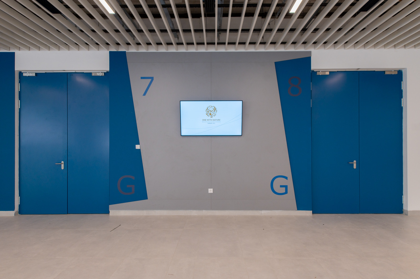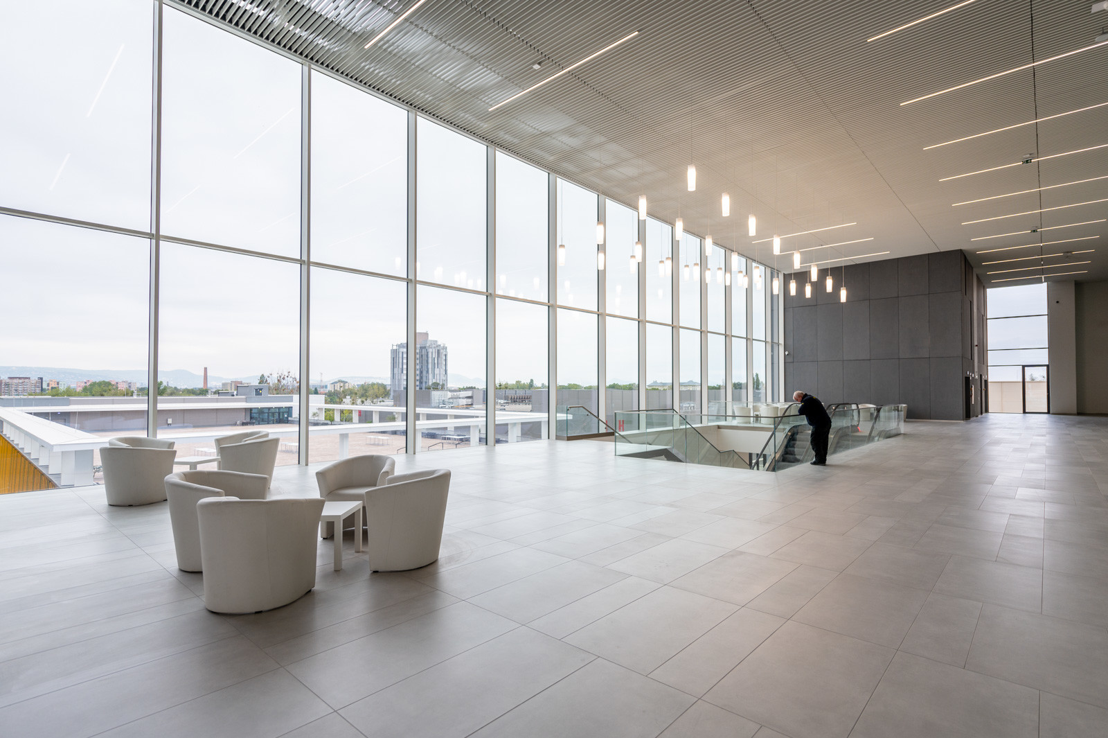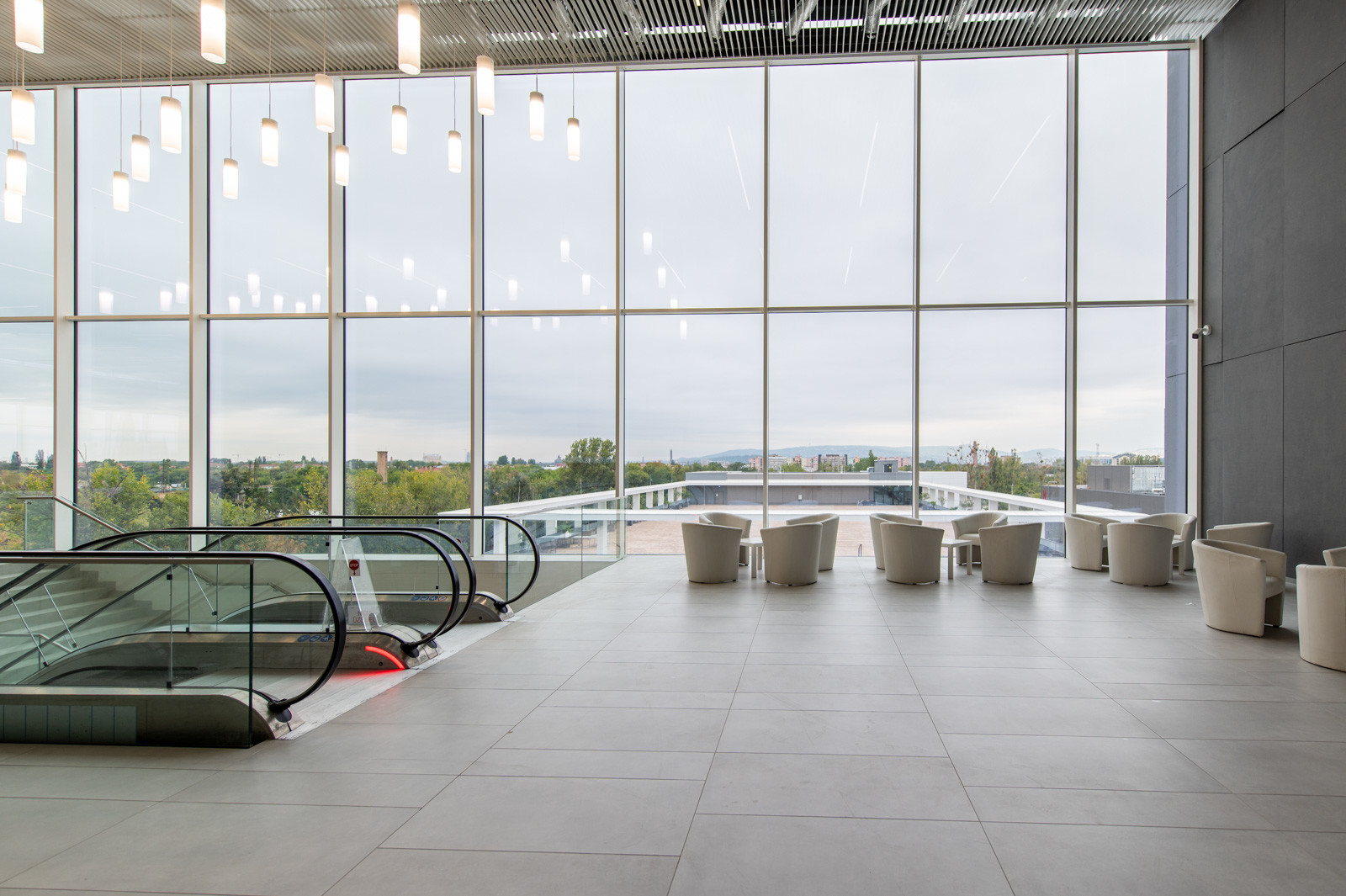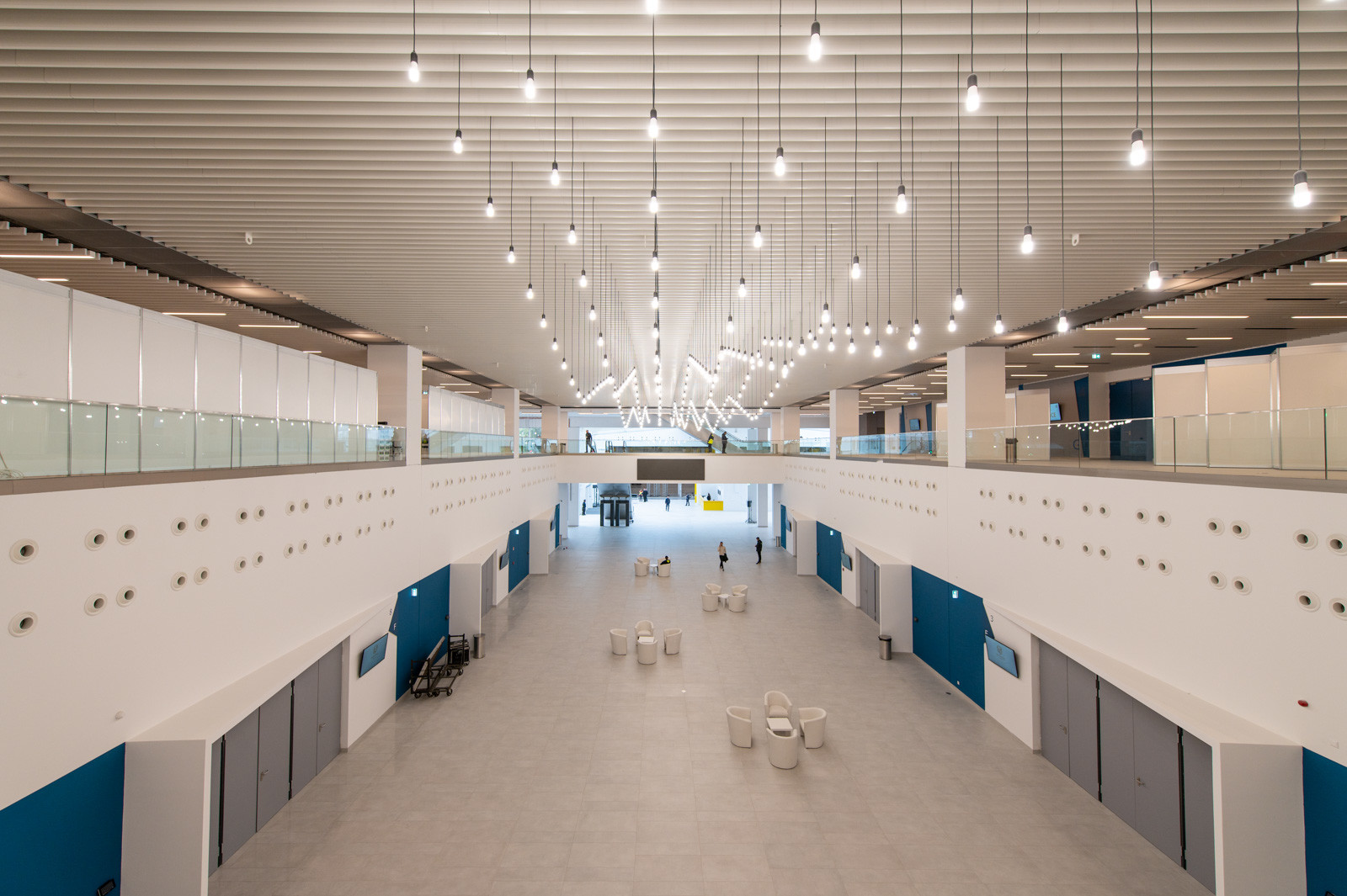 A konferenciaközponthoz csatlakozik egy vele teljesen egybenyitható vagy tőle teljesen elválasztható 2500 négyzetméteres kiállítási csarnok is a bejárati szinten.