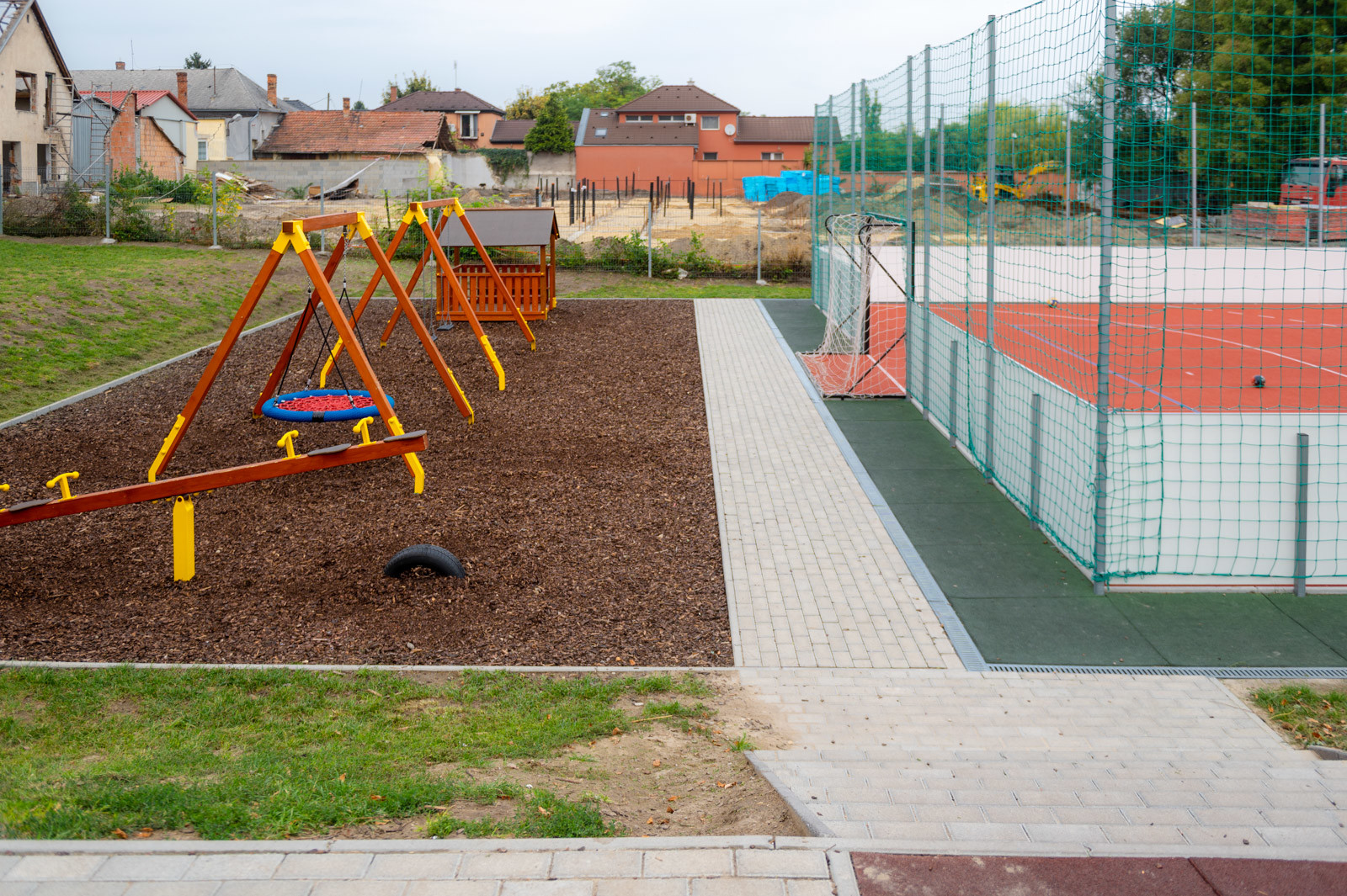Új, palánkkal körbevett sportpályát is kialakítottak, amely mellett játszótér kapott helyet.