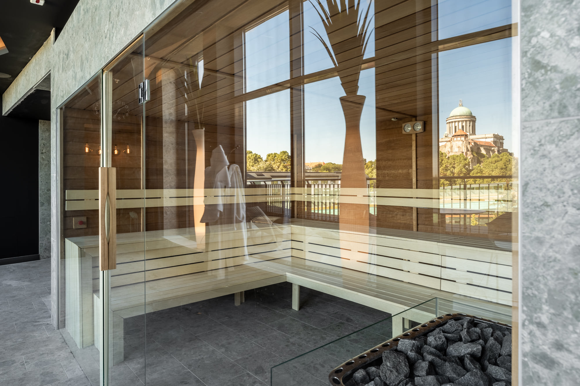 Ahogy azt júliusi cikkünkben is jeleztük, a wellness- és rekreációs részekkel kibővült Grand Hotel Esztergom projektje a Market Építő Zrt. kivitelezésével valósult meg. Ennek során 2019-ben a Market egy félbehagyott építkezést vett át, szerkezetkész állapotban levő épülettel, hogy megtervezze és befejezze a kivitelezést. 2021 júniusában elkészült a nyolcszintes, négycsillagos superior szálloda, amely három szint mélygarázst, egy földszintet és négy emeletet foglal magába.