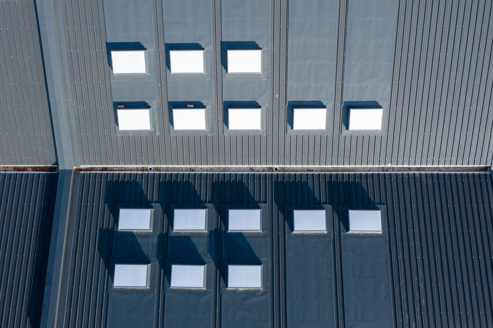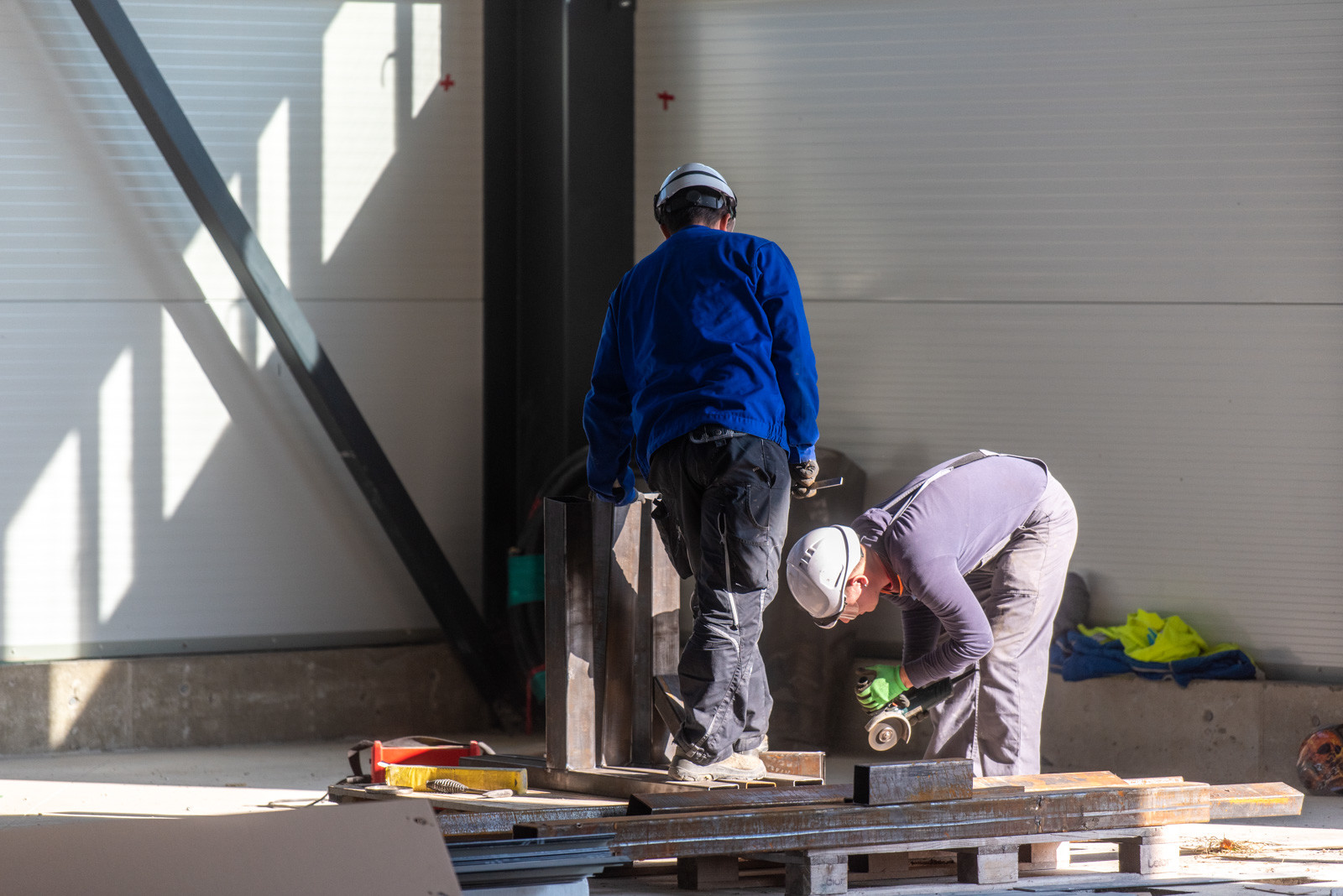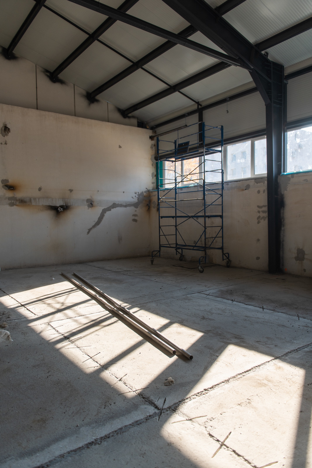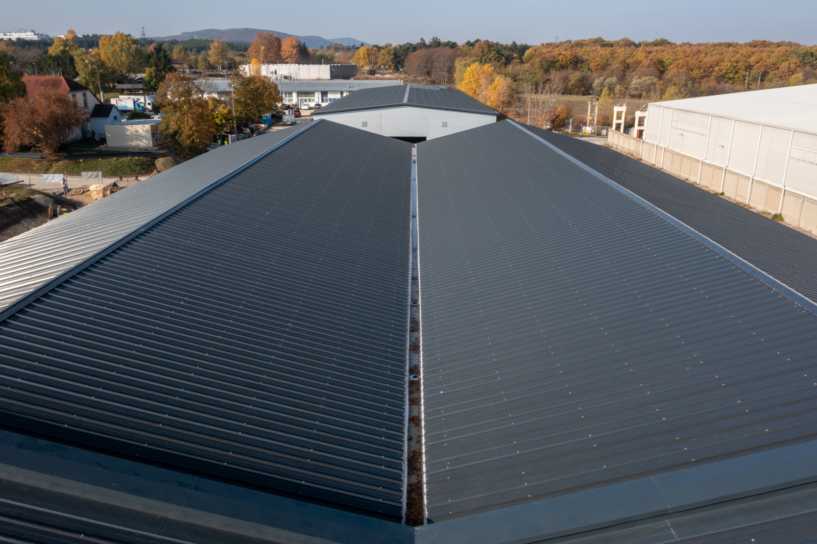 A kivitelezés jelen fázisában már mindkét épületnél elkészültek a fő szerkezeti tartóelemek és ezek héjalásai, valamint beépítették a homlokzati nyílászárókat.