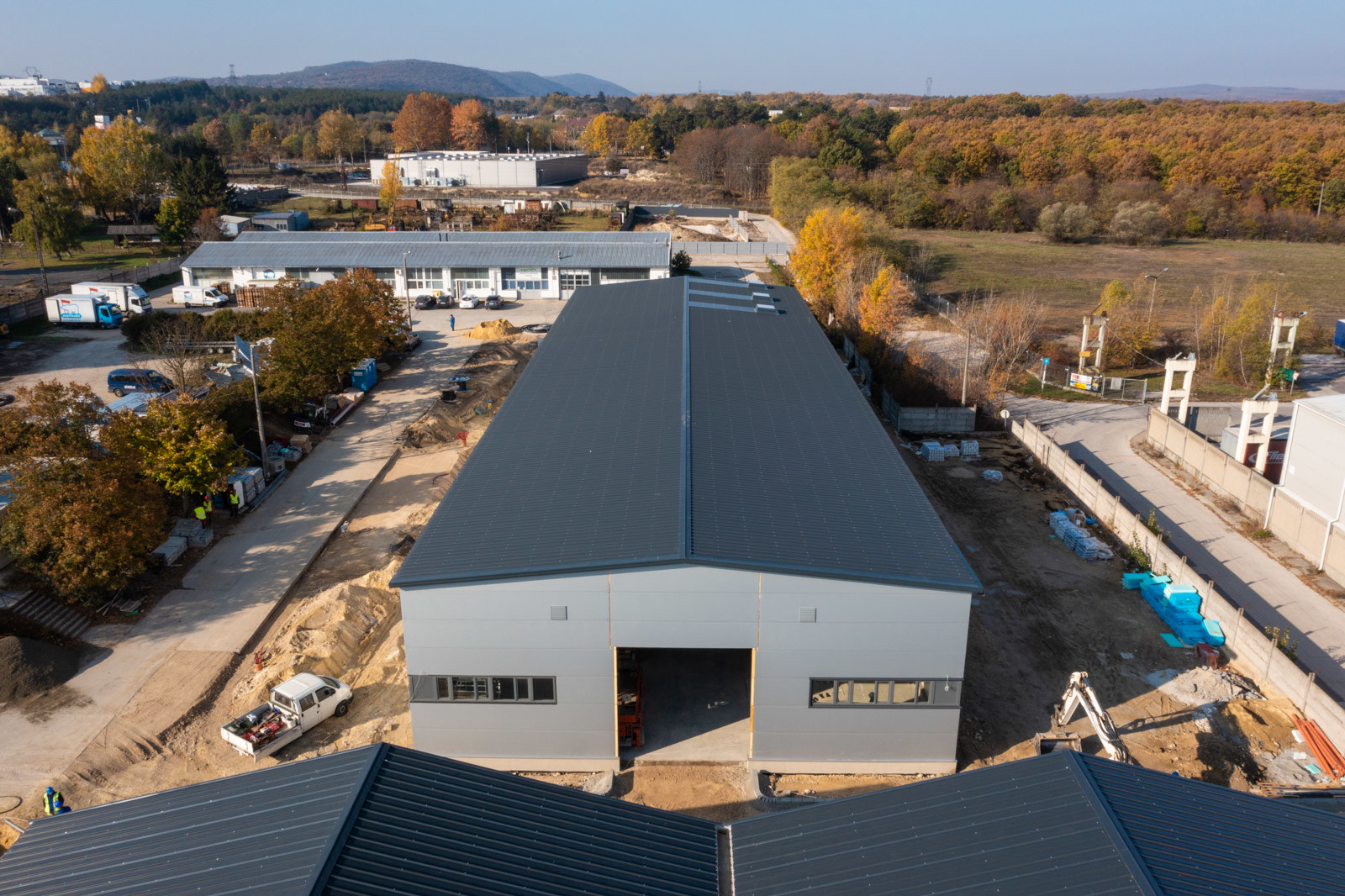 Az épület homlokzatát, illetve alacsony hajlású nyeregtetőjét korszerű kialakítású, fém fegyverzetű hőszigetelő szendvicspanel burkolattal látják el. A villamos energiafogyasztás részbeni kiváltása helyben előállított megújuló energiaforrással tervezett. Az épület tetőfelületére szintén 50kVA méretű napelem rendszert építenek ki.