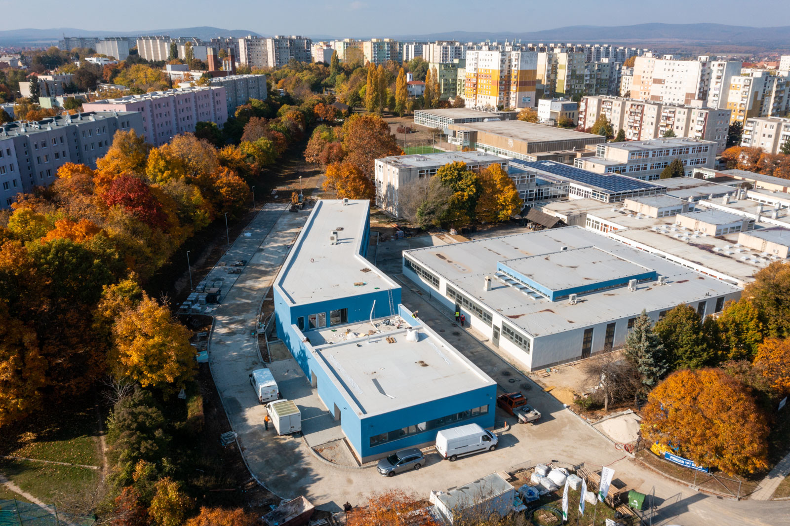 Az épületek kivitelezéséhez szervesen kapcsolódik a teljes közműhálózat felújítása, korszerűsítése, valamint a „C” épület körüli teljes útpálya szerkezet aszfaltozása.