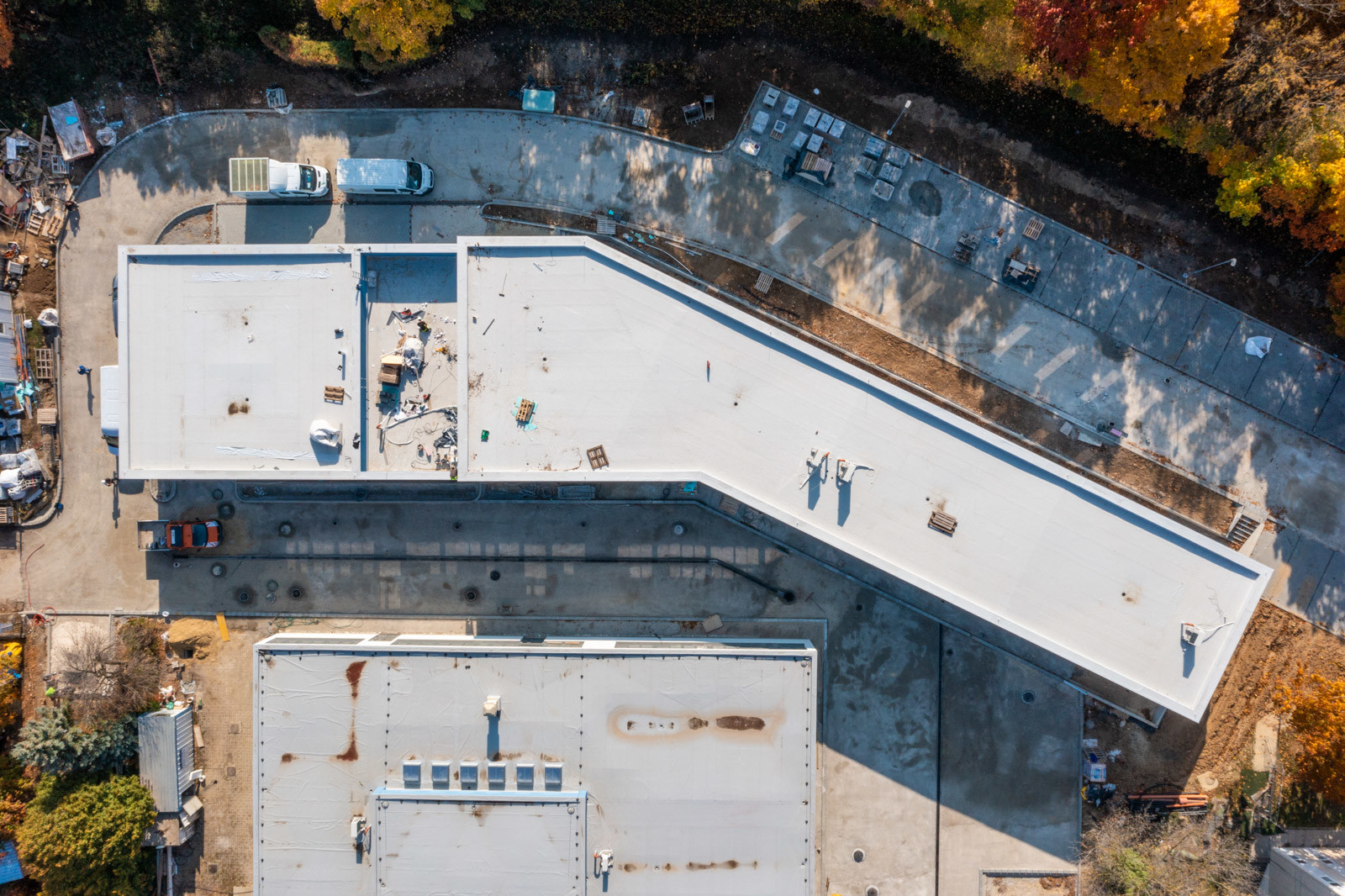A tetőszerkezet régi szigetelését teljesen visszabontották, új PVC- és hőszigetelést kapott, emiatt a meglévő attikafalat is magasították, valamint a tetőbevilágító kupolákat szintén újakra cserélték. Emellett új csapadékvíz elvezető rendszert építettek ki.
