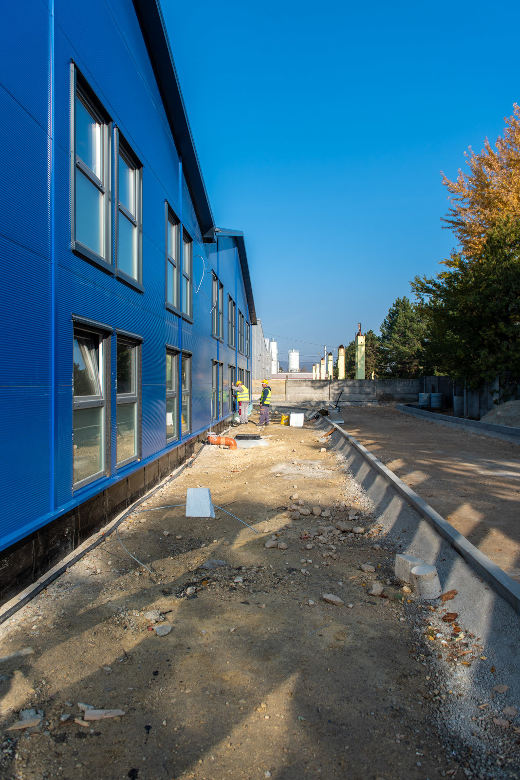 Folyamatban vannak továbbá az épületeken belüli szakági (gépészeti és villamos) alapszerelések és a könnyűszerkezeti munkálatok. Ezt követően a szakipari (befejező) munkák kerülnek sorra a technológiai sorrend betartása mellett.