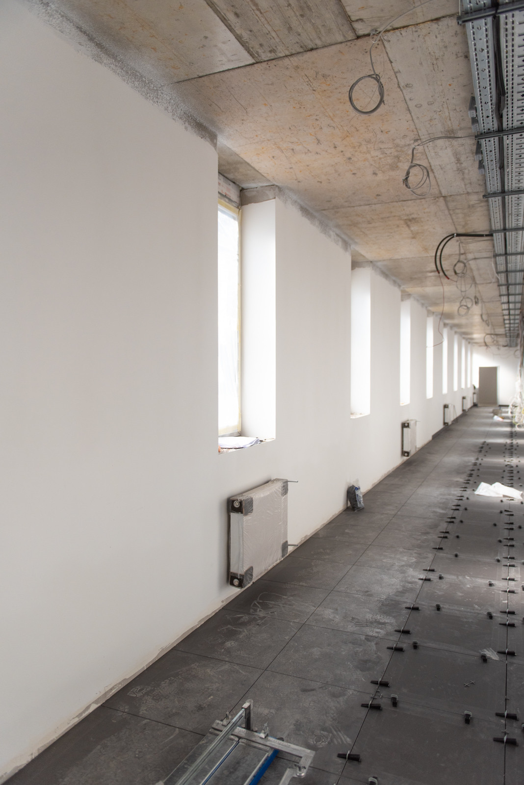 Ezt követi a melegburkolatok (PVC padló) kivitelezése, valamint a lakatos munkák. A külső munkák közül még hátravan az aszfaltozás, a térkövezési munka és az utcabútorok (kerékpártárolók, hulladékgyűjtők, padok) elhelyezése.