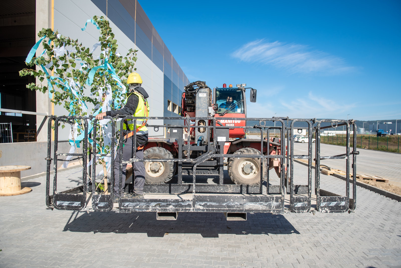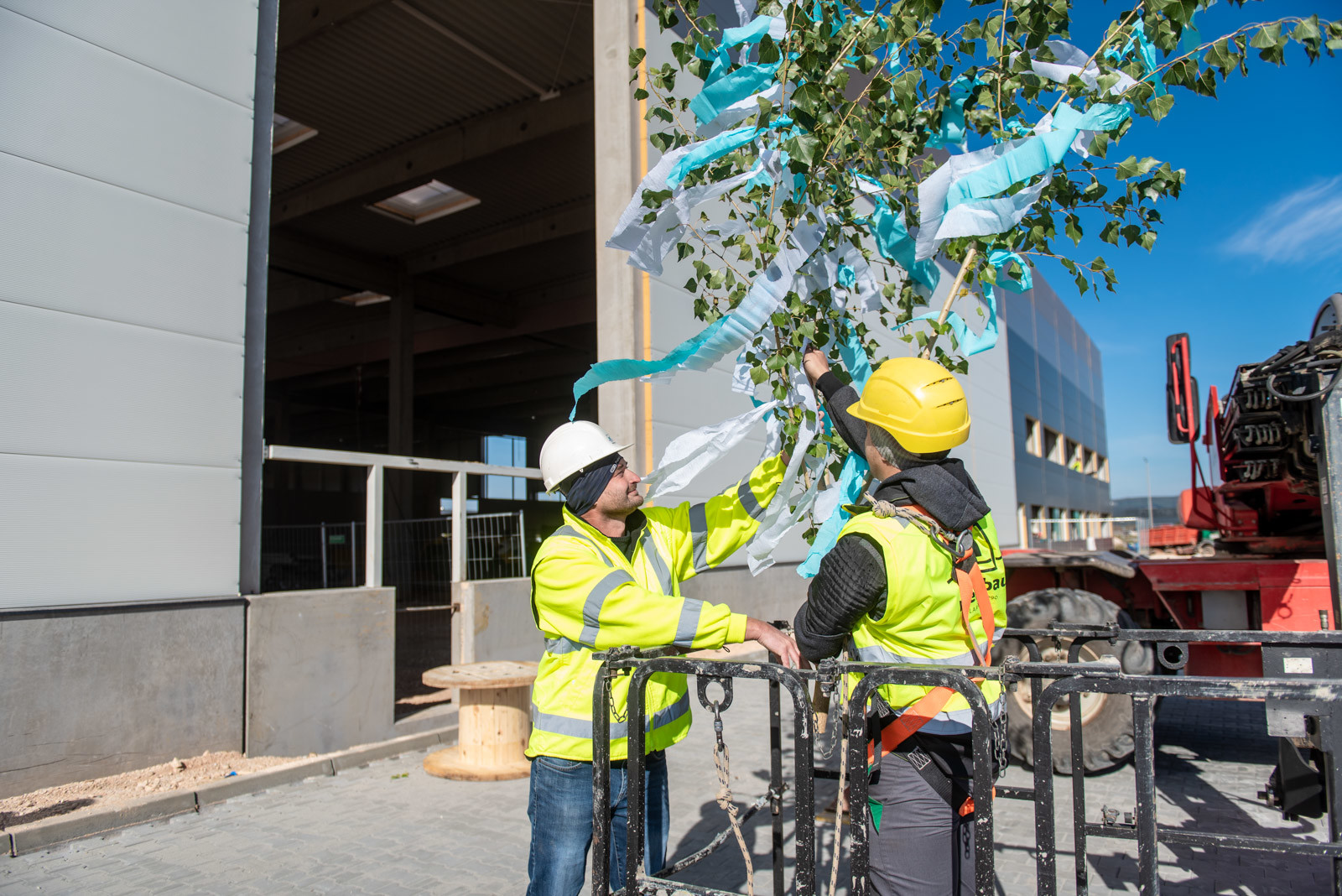 Tatabányán kedden megtartották a Merkbau Zrt. kivitelezésében épülő új logisztikai csarnok bokréta avatóját.