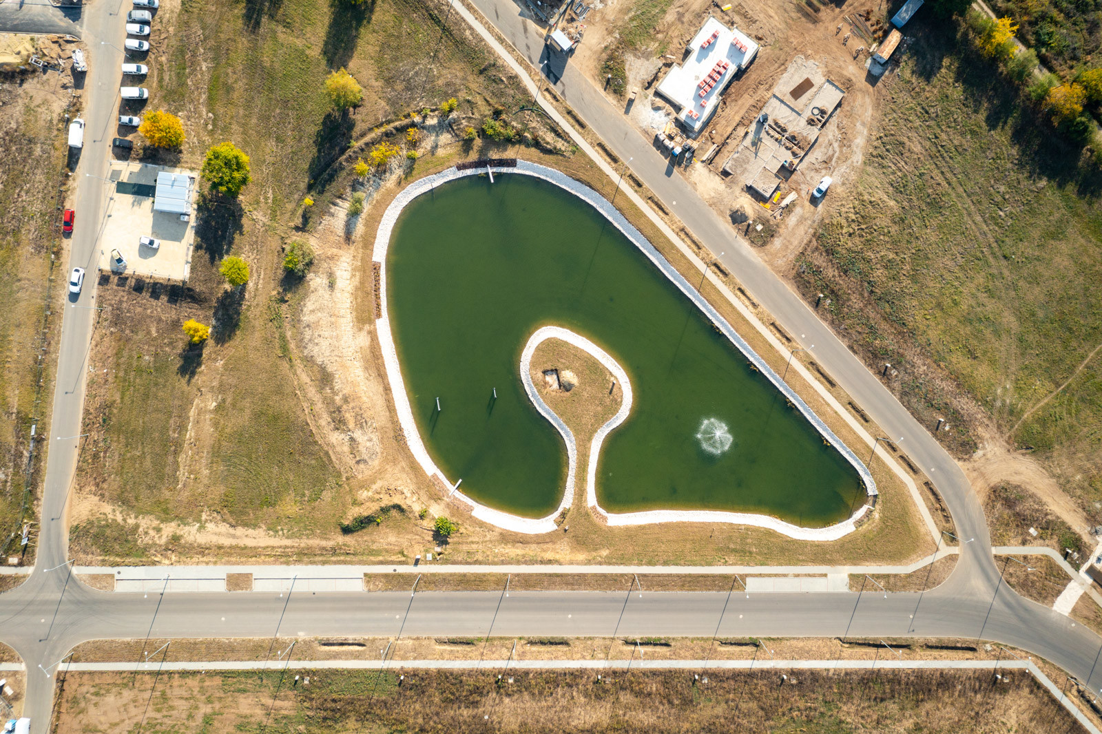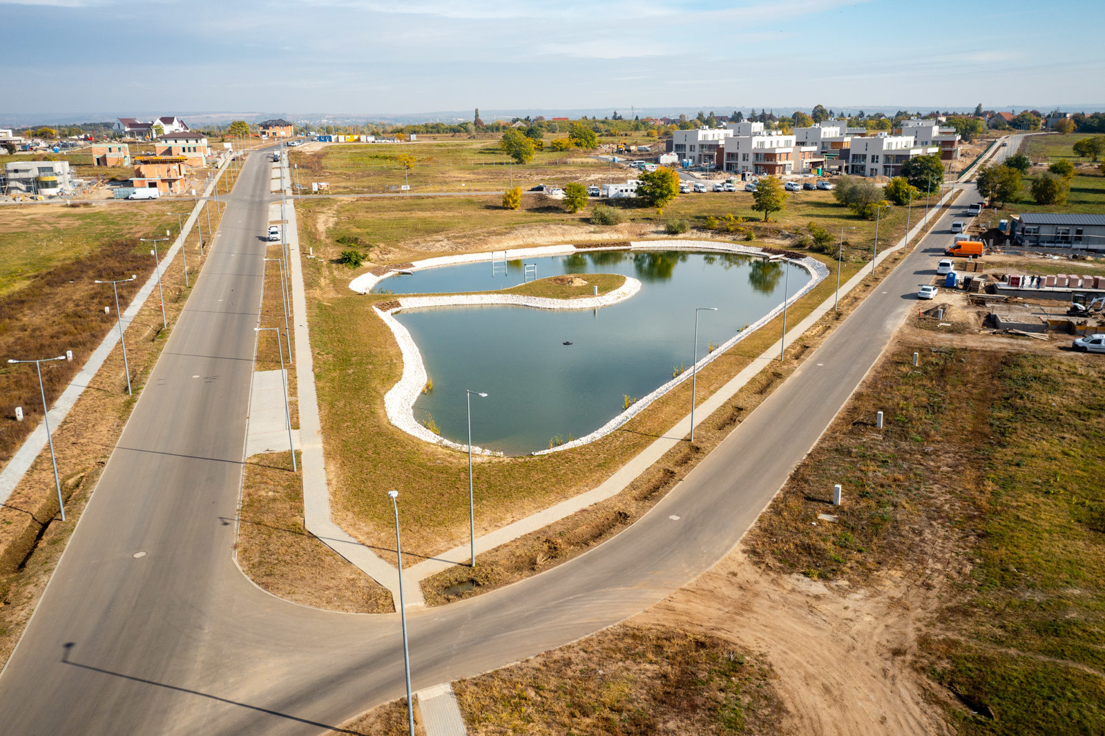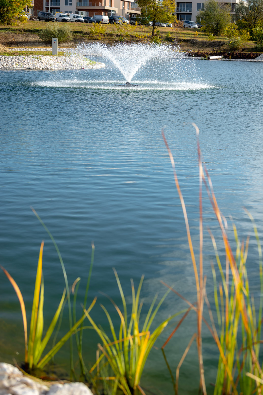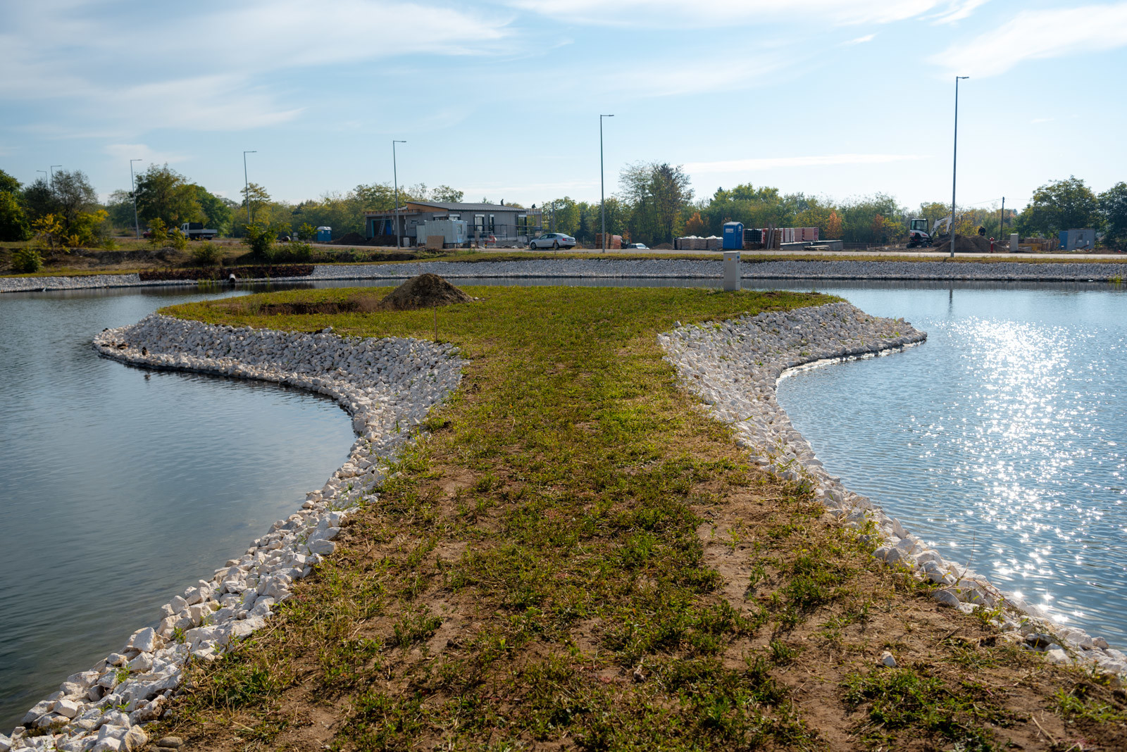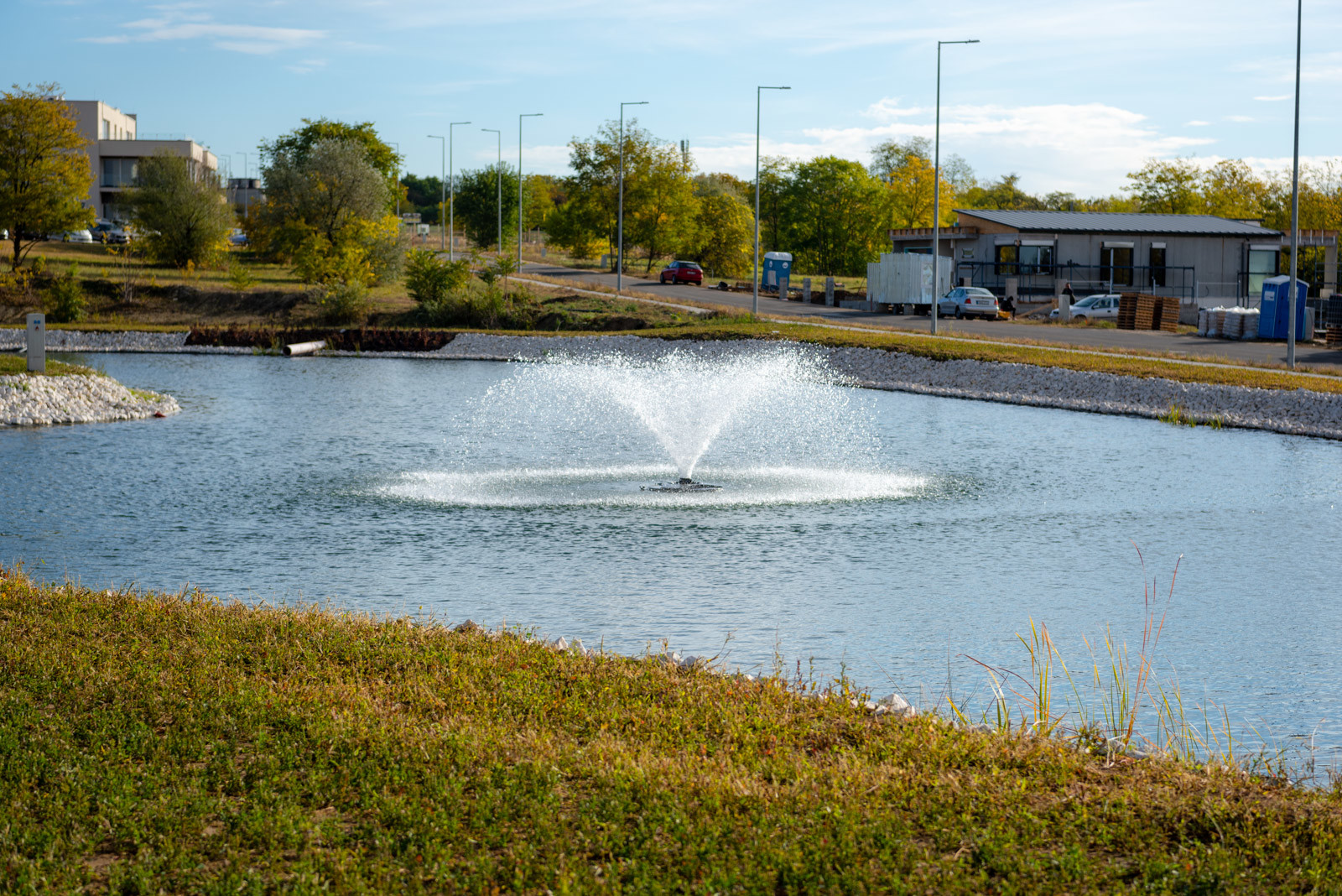 Hozzátette: „Munkatársaink a nyár közepén fogtak hozzá a tó szépítéséhez, annak biológiai egyensúlyát gondosan megválasztott növényekkel biztosítottuk. A peremrész természetességét 120 tonna gabion kő rögzítésével emeltük ki, végül, de nem utolsósorban szeptemberben szakembereket bíztunk meg, hogy a tó közepére egy szökőkutat szereljenek be, mely esti kivilágításával már most megelőlegezi a leendő közpark által nyújtandó békés és nyugodt hangulatot. A park területén a díszfák és cserjék ültetését október végéig elvégezzük.”