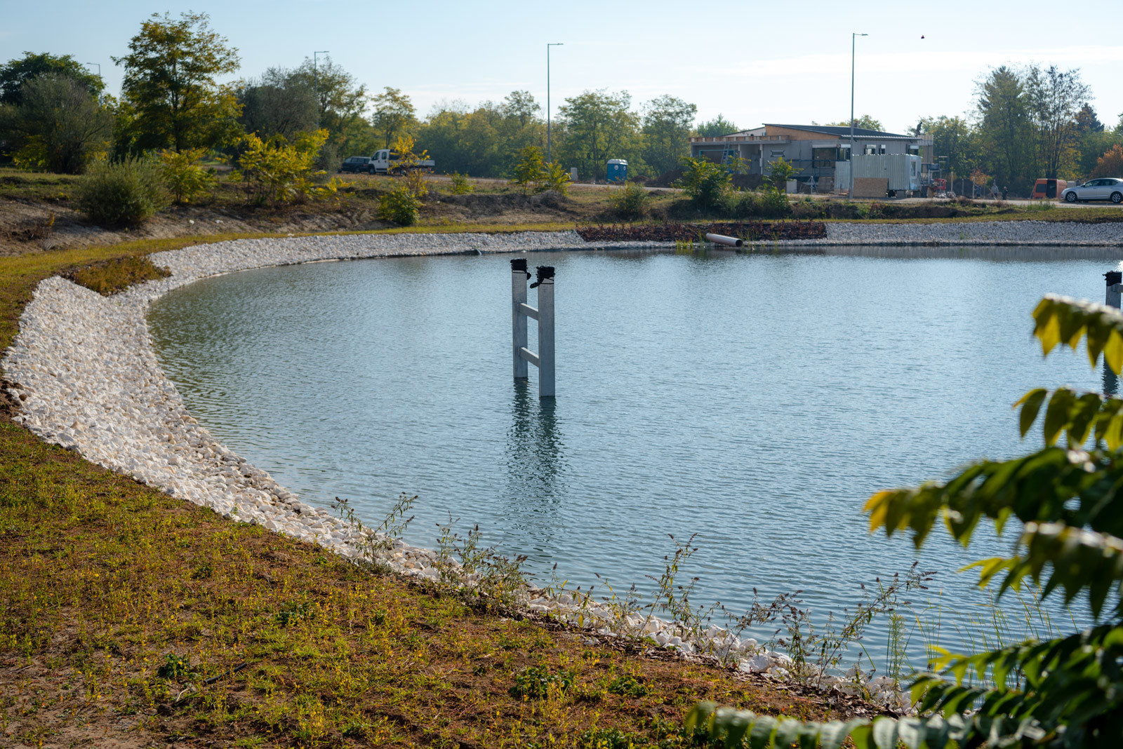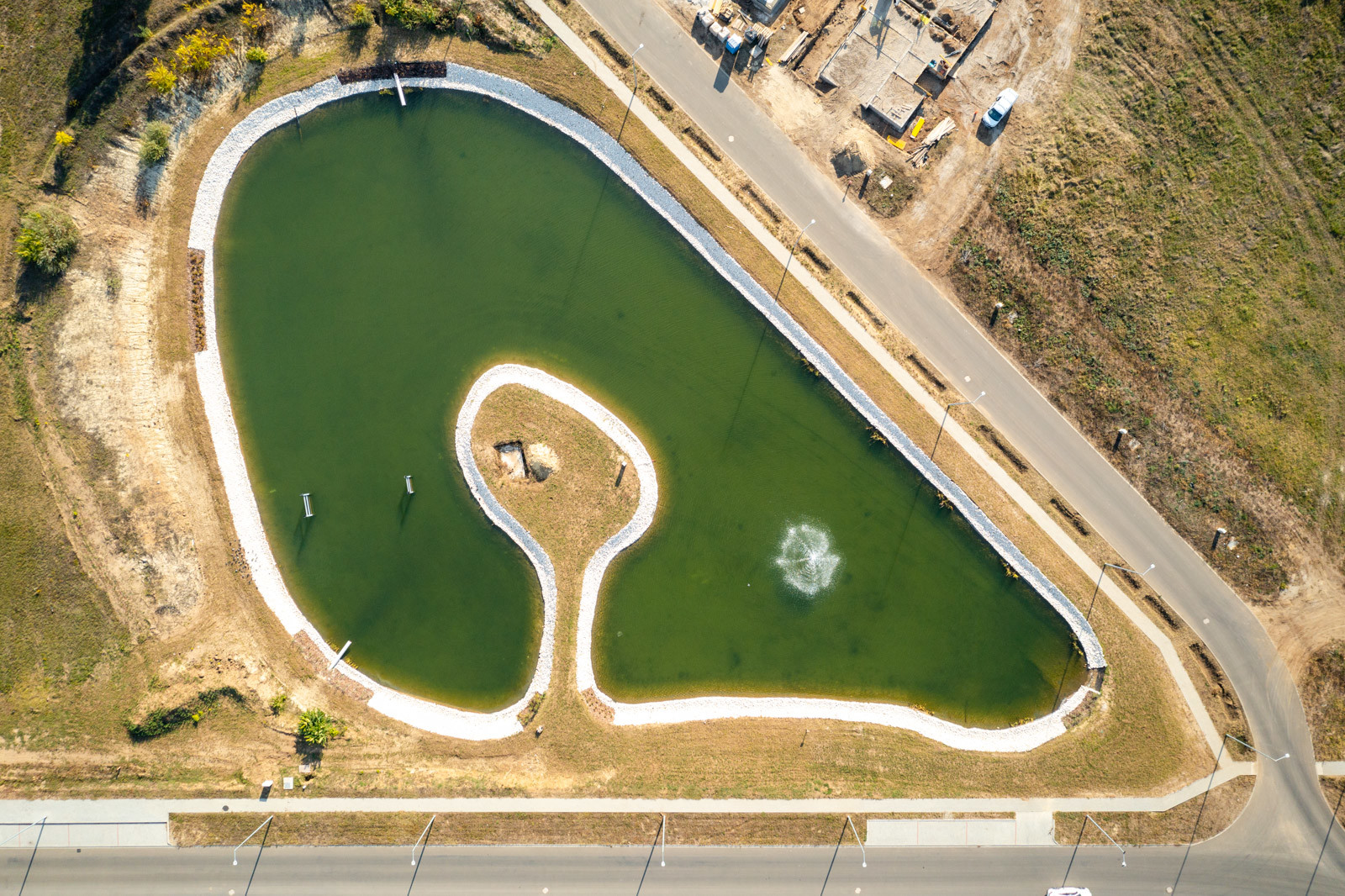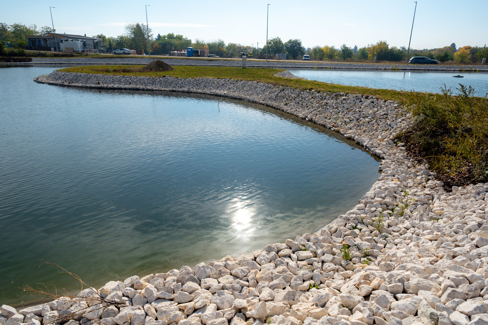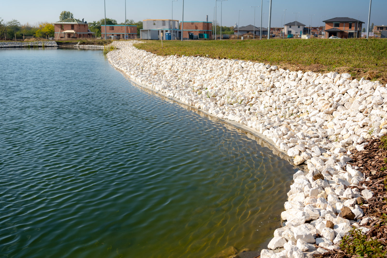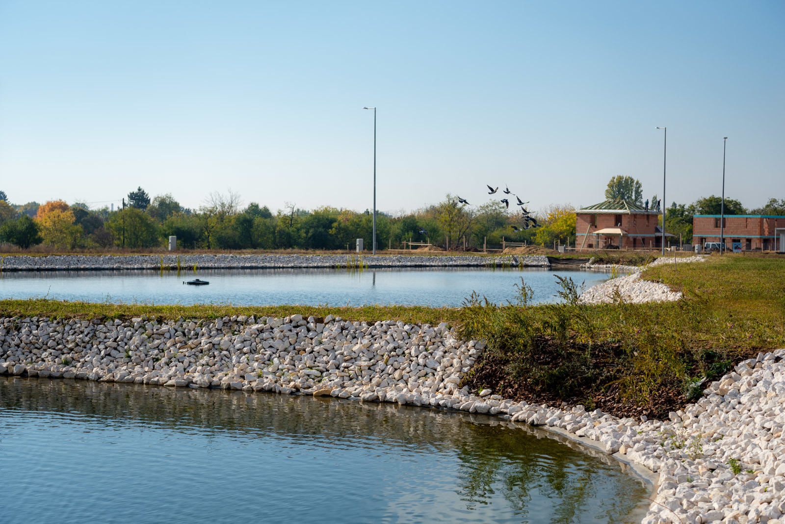 Hozzátette: „Munkatársaink a nyár közepén fogtak hozzá a tó szépítéséhez, annak biológiai egyensúlyát gondosan megválasztott növényekkel biztosítottuk. A peremrész természetességét 120 tonna gabion kő rögzítésével emeltük ki, végül, de nem utolsósorban szeptemberben szakembereket bíztunk meg, hogy a tó közepére egy szökőkutat szereljenek be, mely esti kivilágításával már most megelőlegezi a leendő közpark által nyújtandó békés és nyugodt hangulatot. A park területén a díszfák és cserjék ültetését október végéig elvégezzük.”