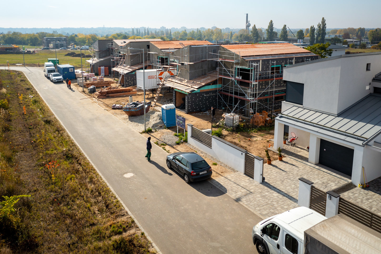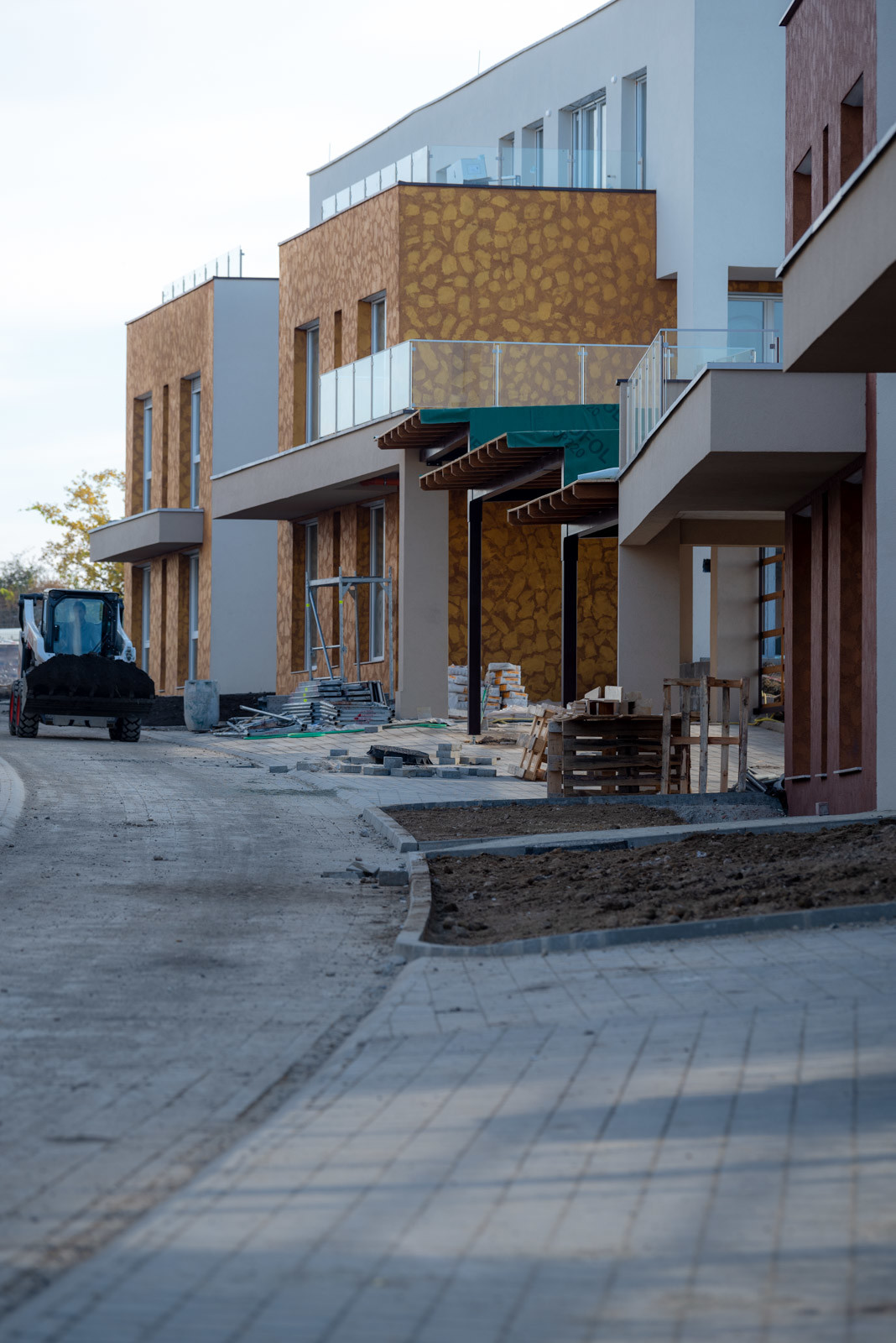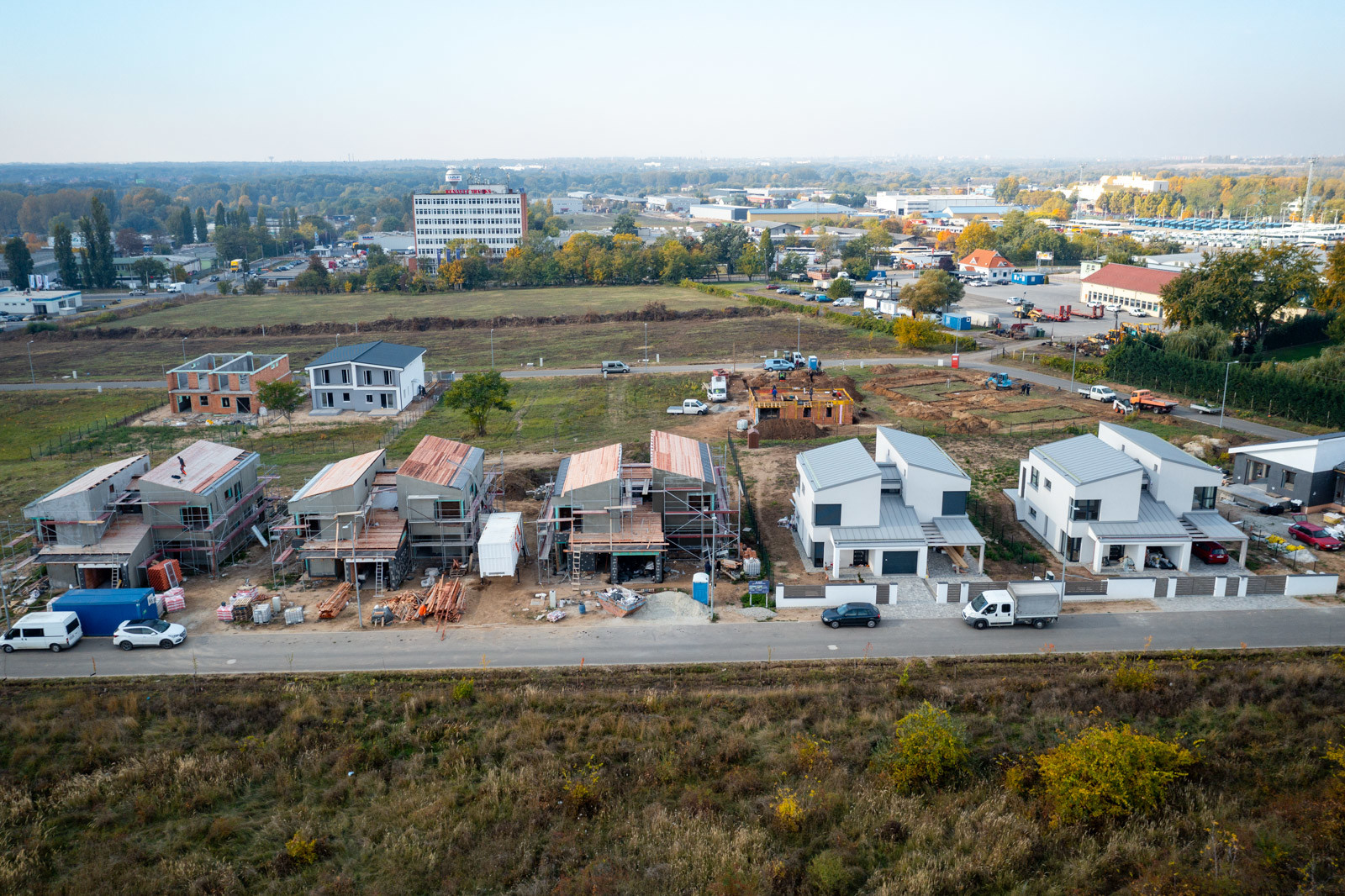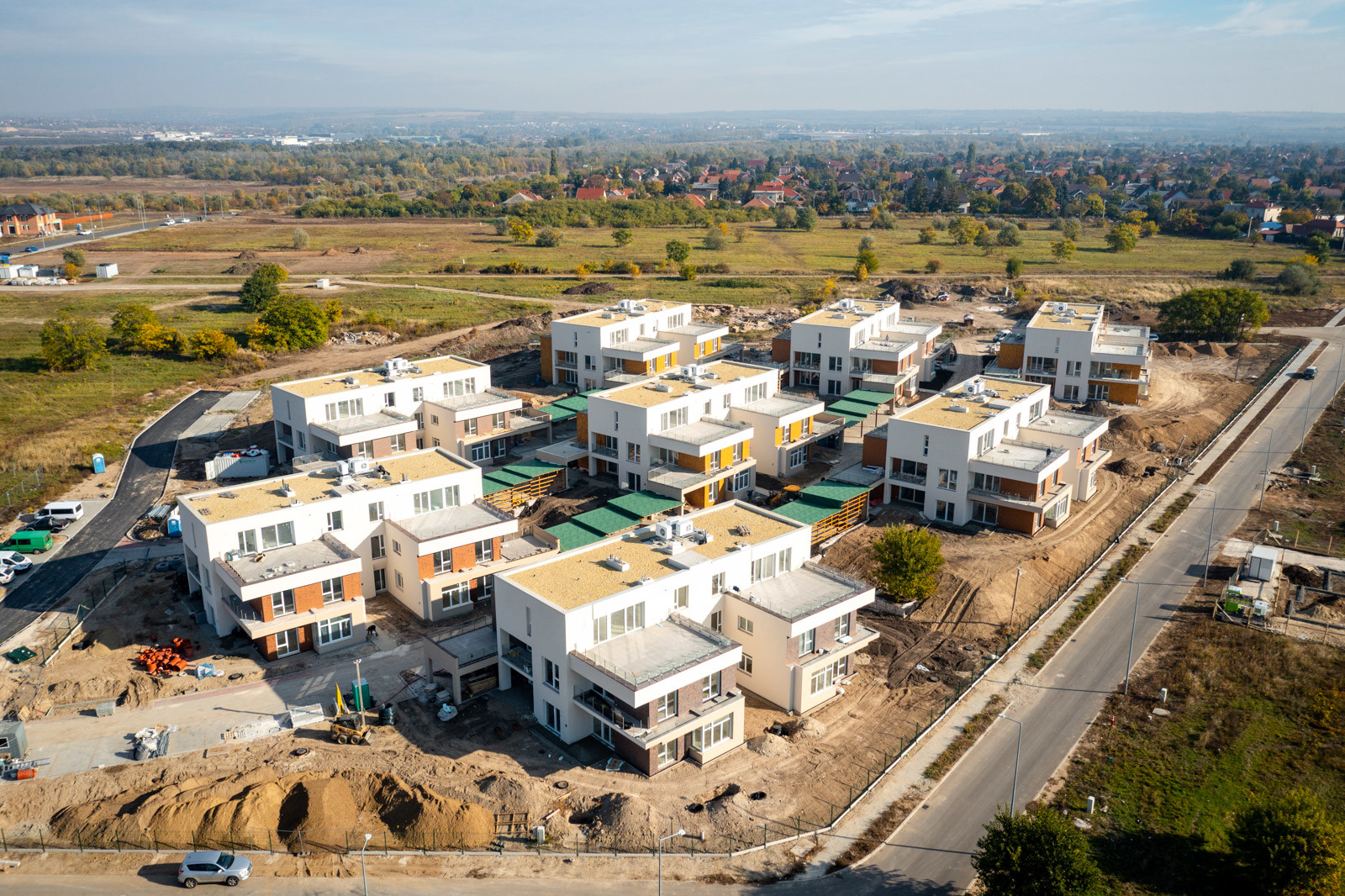 Néhány - a tavalyi év végén, illetve az év elején megkezdett - munka befejeződött, és szeptemberben beköltöztek az első lakók a családi házakba és az ikerházakba. A folyamatban lévő építkezések is megfelelő ütemben zajlanak, előrehaladásukat az időjárás is kedvezően befolyásolja.