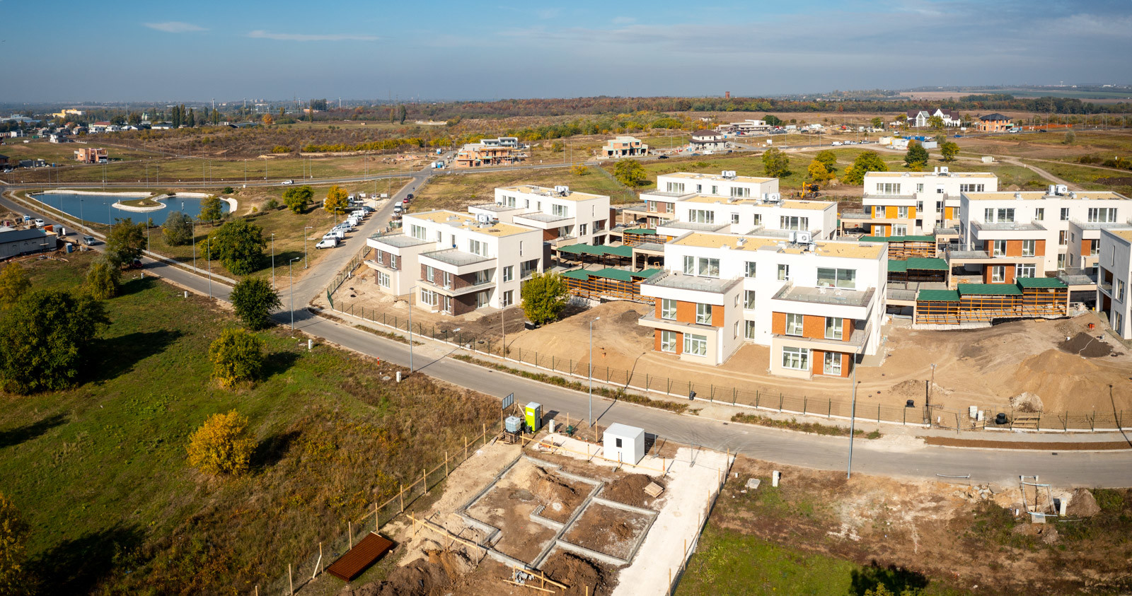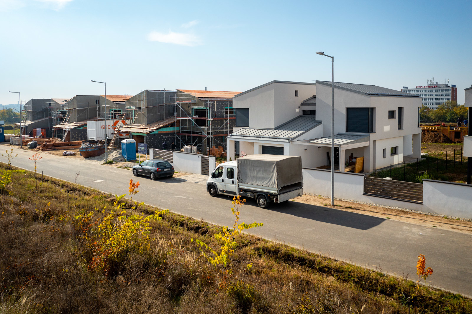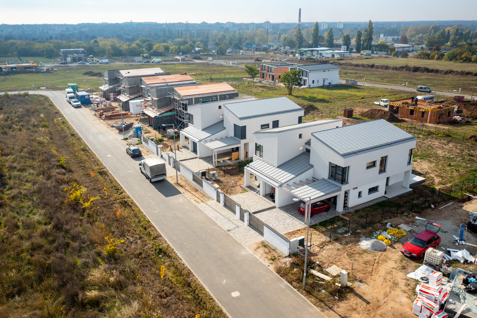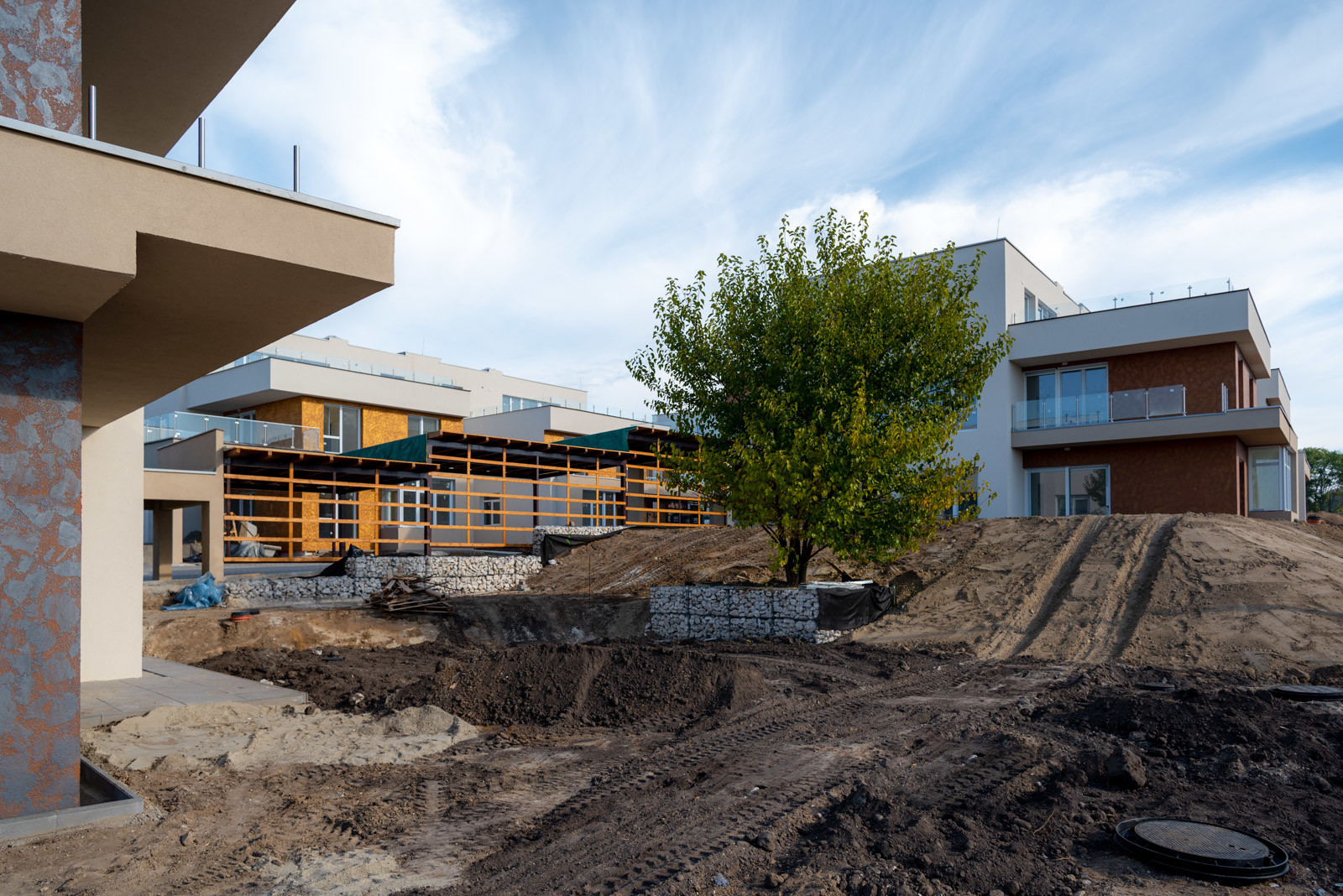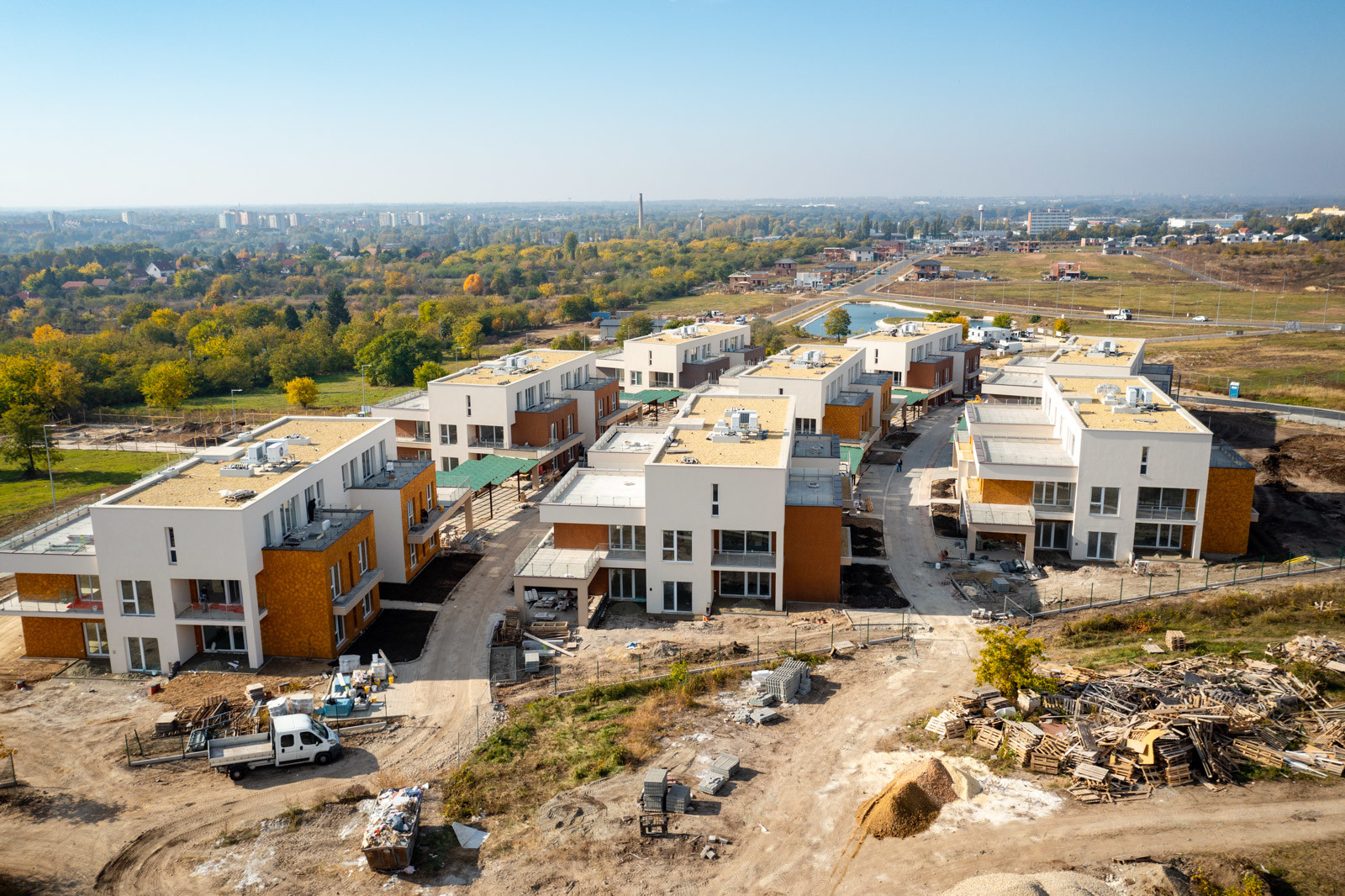 Néhány - a tavalyi év végén, illetve az év elején megkezdett - munka befejeződött, és szeptemberben beköltöztek az első lakók a családi házakba és az ikerházakba. A folyamatban lévő építkezések is megfelelő ütemben zajlanak, előrehaladásukat az időjárás is kedvezően befolyásolja.