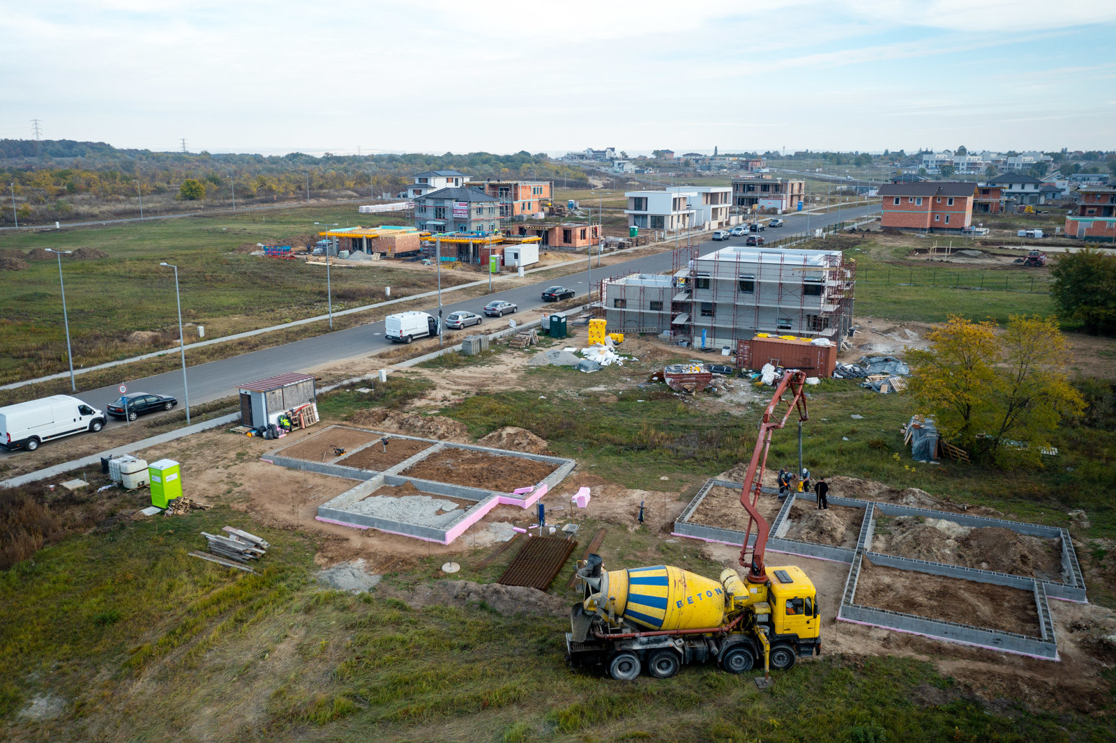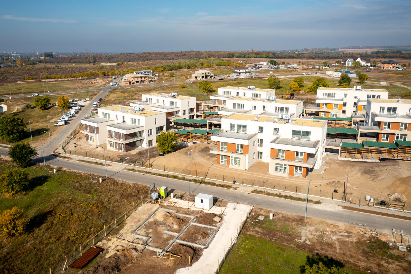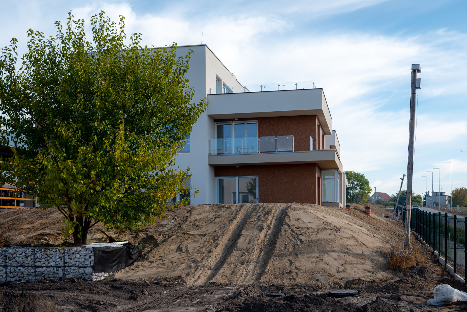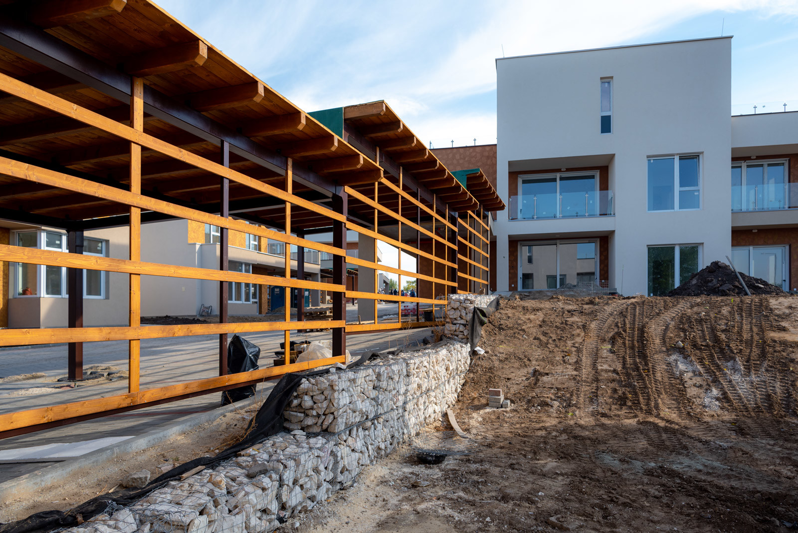 Néhány - a tavalyi év végén, illetve az év elején megkezdett - munka befejeződött, és szeptemberben beköltöztek az első lakók a családi házakba és az ikerházakba. A folyamatban lévő építkezések is megfelelő ütemben zajlanak, előrehaladásukat az időjárás is kedvezően befolyásolja.